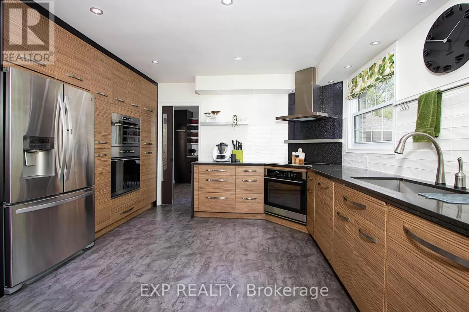PARKWOOD DR AND DEMEYER AVE Welcome to this stunning 2-storey brick home nestled on a picturesque ravine lot within the desired Annandale Subdivision of Tillsonburg. Boasting 3 bedrooms, plus den and 4 full baths, this home is filled with timeless charm and modern luxury. Featuring countless updates, including vinyl windows, a 50-year metal shingle roof, renovated kitchen, bathrooms and many other thoughtful updates and details throughout! With a spacious main floor layout, perfect for entertaining, and a lower level featuring a large rec room, laundry area, craft room, den, full bath, workshop, exercise room and 2 large storage rooms, there's ample space for the whole family. Relax in the cozy family room complete with a natural wood-burning fireplace, and patio doors leading to the serene, landscaped backyard. Embrace the tranquility and convenience of this prime location, just moments from amenities yet surrounded by nature's beauty. Don't miss out on this rare opportunity. Schedule your private viewing and make this dream home yours. (id:27476)