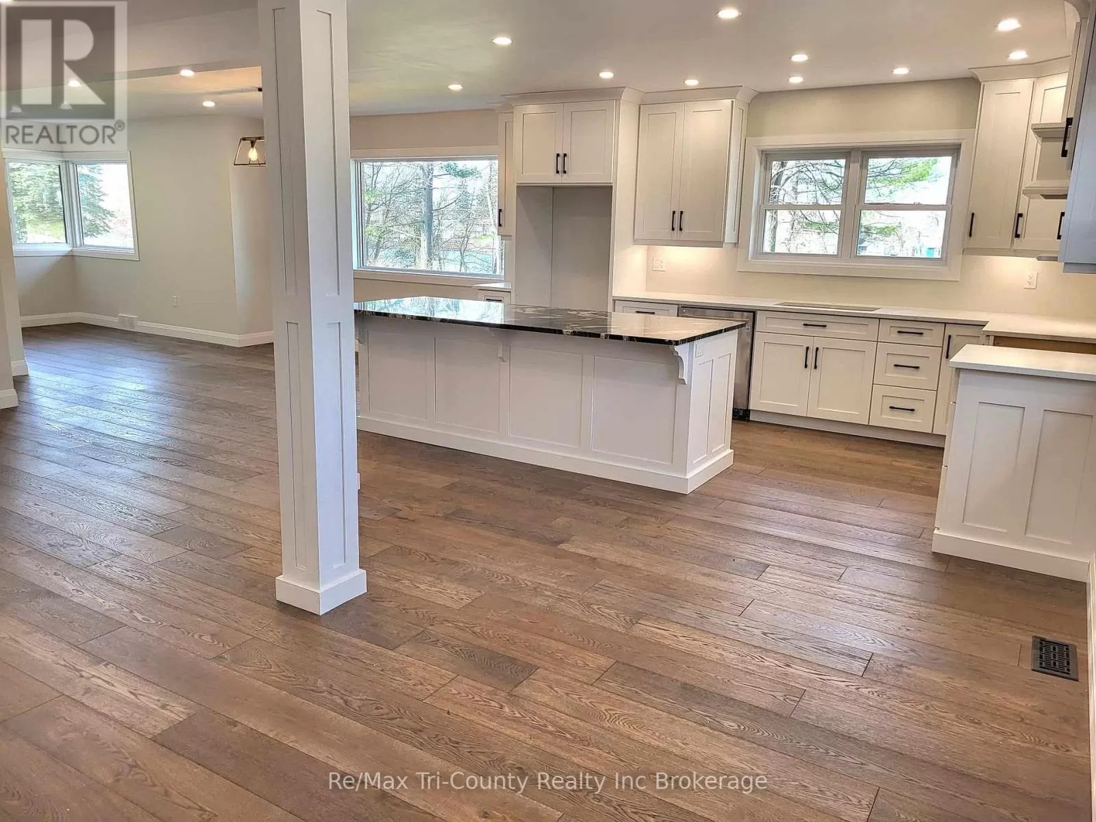 Take Broadway to Concession St E. Head East down Concession St E, North on Lisgar Ave, West on Delevan Crescent. You will absolutely love this one-of-a-kind, lakeview property! Exceptionally well built custom brick home overlooking Lake Lisgar. Main level completely renovated including: custom kitchen & island with granite and quartz tops, engineered floors throughout, fully renovated bathrooms, custom painted staircase and professionally painted throughout, quality trim package, insulation, new lighting. Sunporch lends itself to potential future hot tub. 2 walk-outs to private, fenced backyard. Paved drive provides ample parking. Oversized double garage provides additional parking or workshop use. Features kitchen and dining on all levels. In-law suite below and rental income potential from 2nd level suite. 3 main floor bedrooms with a beautifully renovated master 4pc ensuite. Light and bright family sized living room enjoys a warm natural fireplace. Dining room with picturesque view of mature trees and open water. R-1 special zoning allows for in-house care clients. A must see to appreciate property! Note: This home is perfectly suited for multi-generational family living with 3 complete and separate living spaces each with its own kitchen, living room, bathroom, and laundry. (id:27476)