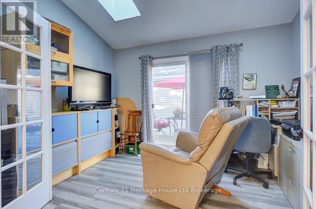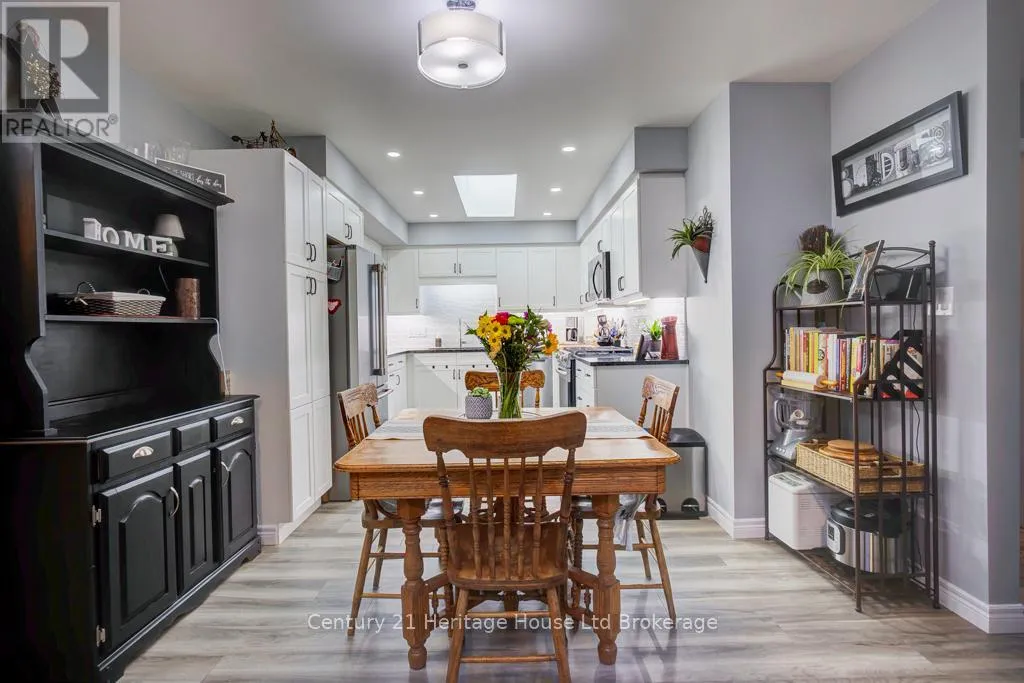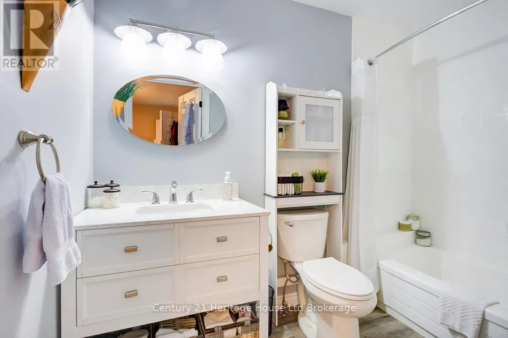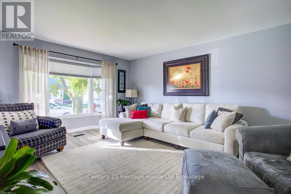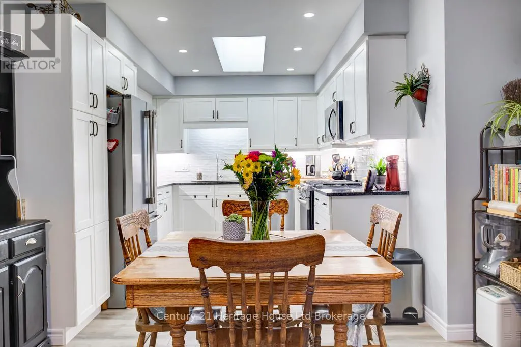 Cross Streets: Wilson Avenue. ** Directions: Wilson Ave to Edwin Cres, property on right. Welcome to this beautiful move-in ready 2 bedroom, 2 bathroom bungalow located in the desirable Adult Community of Hickory Hills. Extensive upgrades completed in 2022 include lifetime roof shingles, flooring, doors, trim, paint, new living room window (2024) plus both bathrooms fully renovated. The stunning kitchen boosts white shaker cupboards, granite countertops, double undermount sink, under cabinet lighting, a stylish backsplash and modern kitchen appliances. Step outside to enjoy a newly poured concrete patio perfect for entertaining or relaxing. In addition, the side patio offers convenience of a natural gas hook-up for all your grilling needs. Keep your lawn lush with an irrigation system (2021). Residents of Hickory Hills enjoy access to a fantastic recreation centre with amenities including a hot tub and swimming pool. This is the perfect home to enjoy a low maintenance lifestyle in a friendly and vibrant community. Buyers to pay on close a one time transfer fee of $2000.00 (two thousand) payable to Hickory Hills Residents Association and an annual fee of $655.00. All measurements taken by iGuide technology. (id:27476)