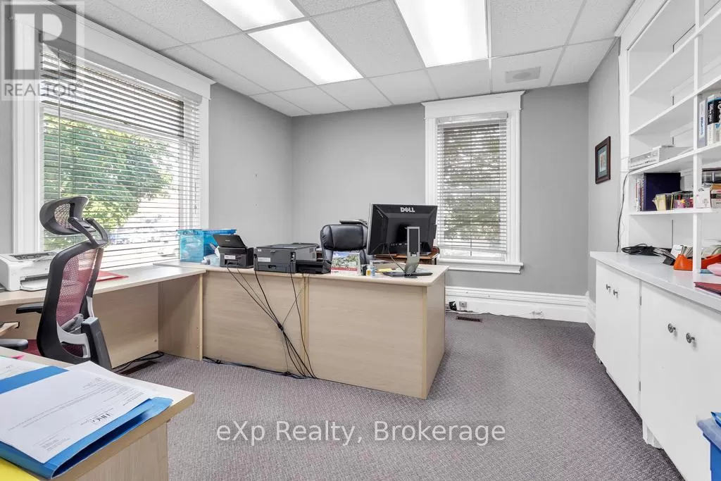 Cross Streets: Oxford Street. ** Directions: Harvey Street, north of Oxford. This professional office building in the heart of Downtown Tillsonburg presents exceptional potential for both investors and owner-users. Located directly across from Starbucks on the east side of Harvey Street, the property enjoys excellent foot and vehicle traffic, ensuring peak visibility in a growing and vibrant commercial district. Zoned Central Commercial, this versatile property supports a wide range of permitted uses including retail, professional office, personal service shops, clinics, restaurants, and mixed residential-commercial, making it ideal for a variety of business models. Full list of permitted uses available upon request. The solid three-level brick building features over 3,000 square feet of space, including: Main floor: Professional office layout with central air (2024) offering character and charm in many of the details. Upper two levels: A spacious apartment with 3 bedrooms and 2 bathrooms, offering flexible live/work or dual-rental income potential. Additional property highlights include: Steel Tile Roof for long-term durability, Lawn sprinkler system for easy maintenance, 16ft x 12ft fire vault, Classic brick exterior with timeless curb appeal. With strong zoning, an unbeatable central location, and income-generating potential, 22 Harvey Street is a standout opportunity in one of Oxford County's fastest-growing communities! (id:27476)