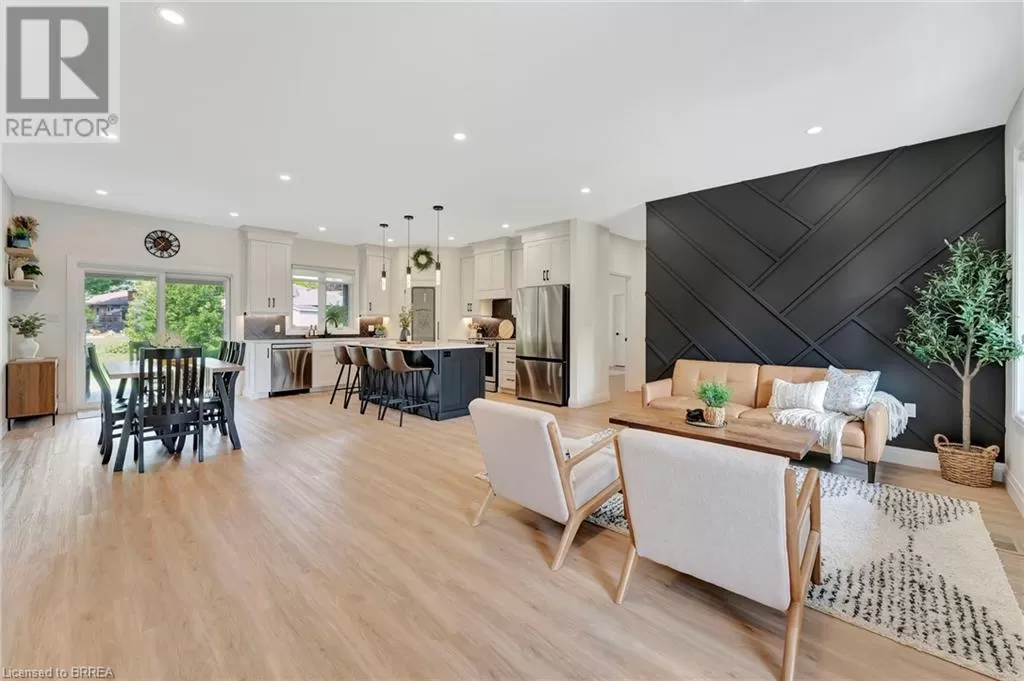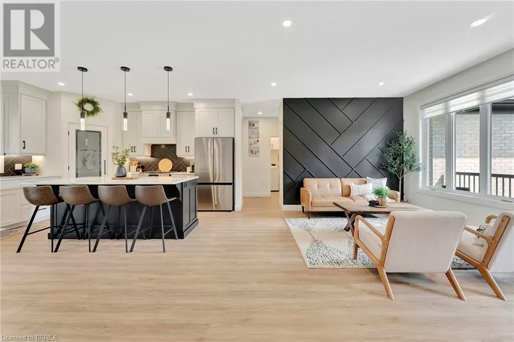North St E to Falcon Rd. Right on Tanager Dr., House is on your Left Wrapped in a striking blend of brick and hardy board, the exterior of this luxury bungalow is beautifully illuminated by soft exterior pot lighting, while a spacious triple car garage offers both curb appeal and everyday functionality. A charming covered front entry sets the tone with timeless character, leading into a bright, welcoming foyer where natural light streams through elegant double sidelights. Inside, the home opens to a stunning, open-concept layout with rich flooring that flows seamlessly throughout the main level. The living room stands as a warm and inviting focal point, anchored by a sophisticated accent wall that adds texture and depth to the space. At the heart of the home is a chef-inspired white kitchen, highlighted by a bold black-accented island and ceiling-height cabinetry that blends style with exceptional storage. A generously sized walk-in pantry enhances both function and flow. Adjacent to the kitchen, the dining area offers an oversized sliding walk-out to a spacious covered patioâperfect for effortless entertaining and year-round indoor-outdoor living. The main level features three thoughtfully placed bedrooms, offering comfort and privacy for the whole family. The primary suite serves as a true sanctuary, complete with a luxurious 5-piece ensuite featuring dual vanities, a deep soaker tub, and a glass-enclosed shower. Two additional bedrooms are complemented by a beautifully appointed 4-piece bathroom, while a stylish main floor laundry room provides added convenience. Downstairs, the fully finished lower level expands your living space with two additional large bedrooms and a full bathroomâideal for teens, in-laws, or guests. A spacious rec room offers endless versatility, whether you're envisioning a home theatre, gym, or playroom. (id:27476)