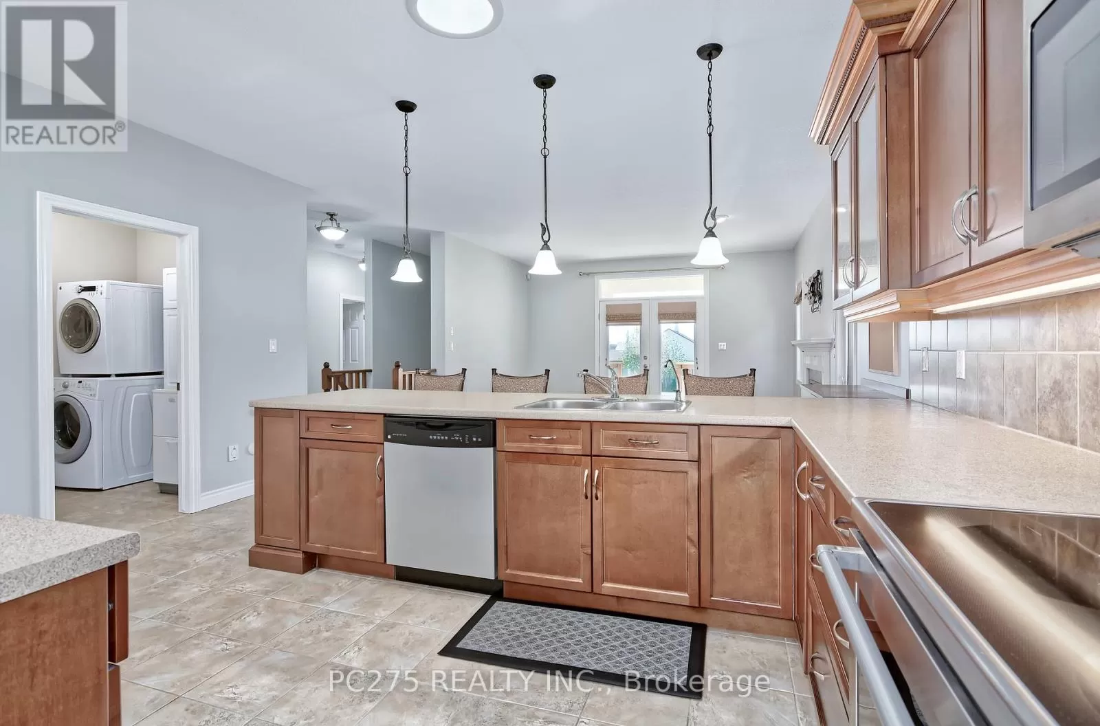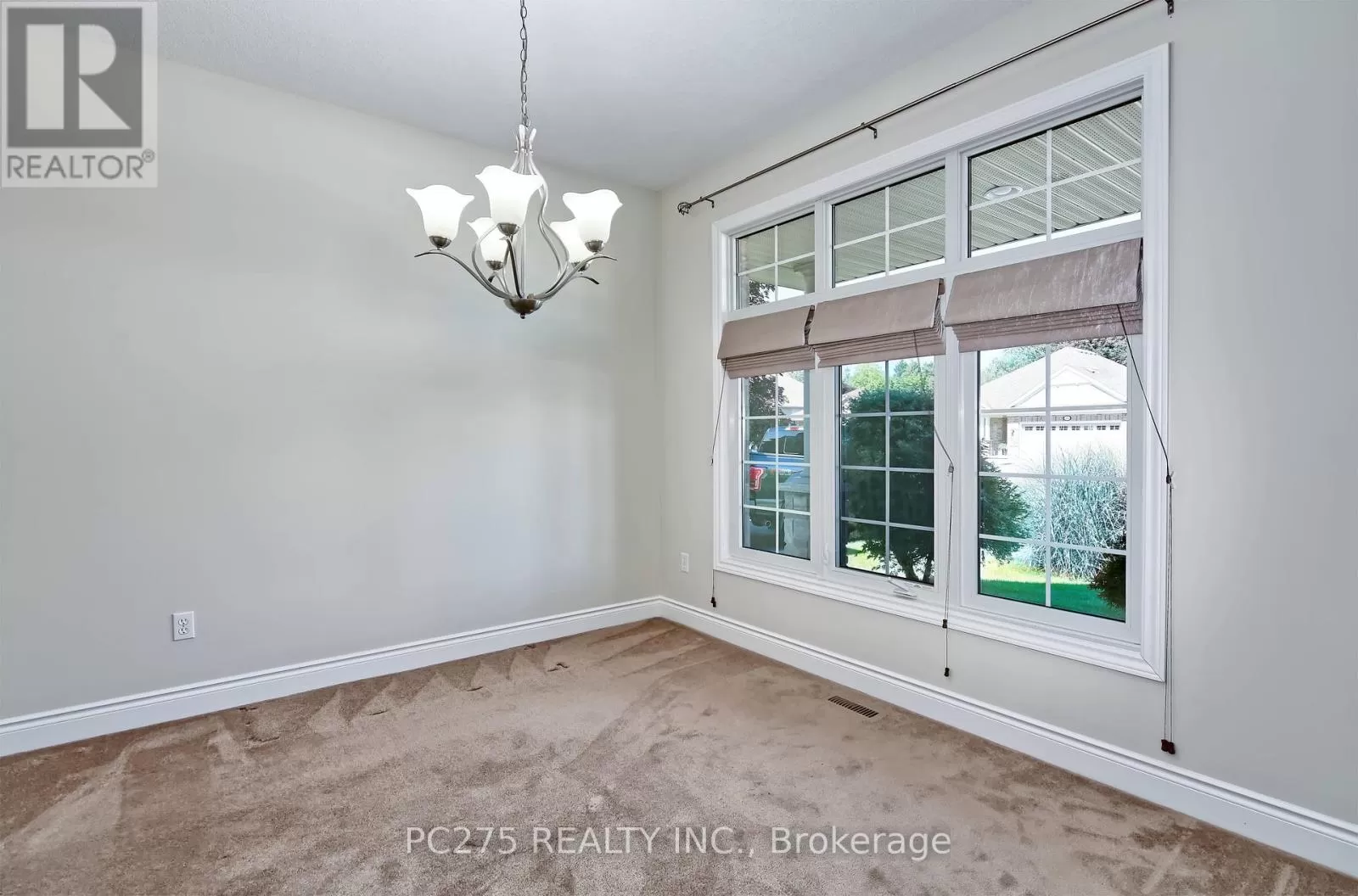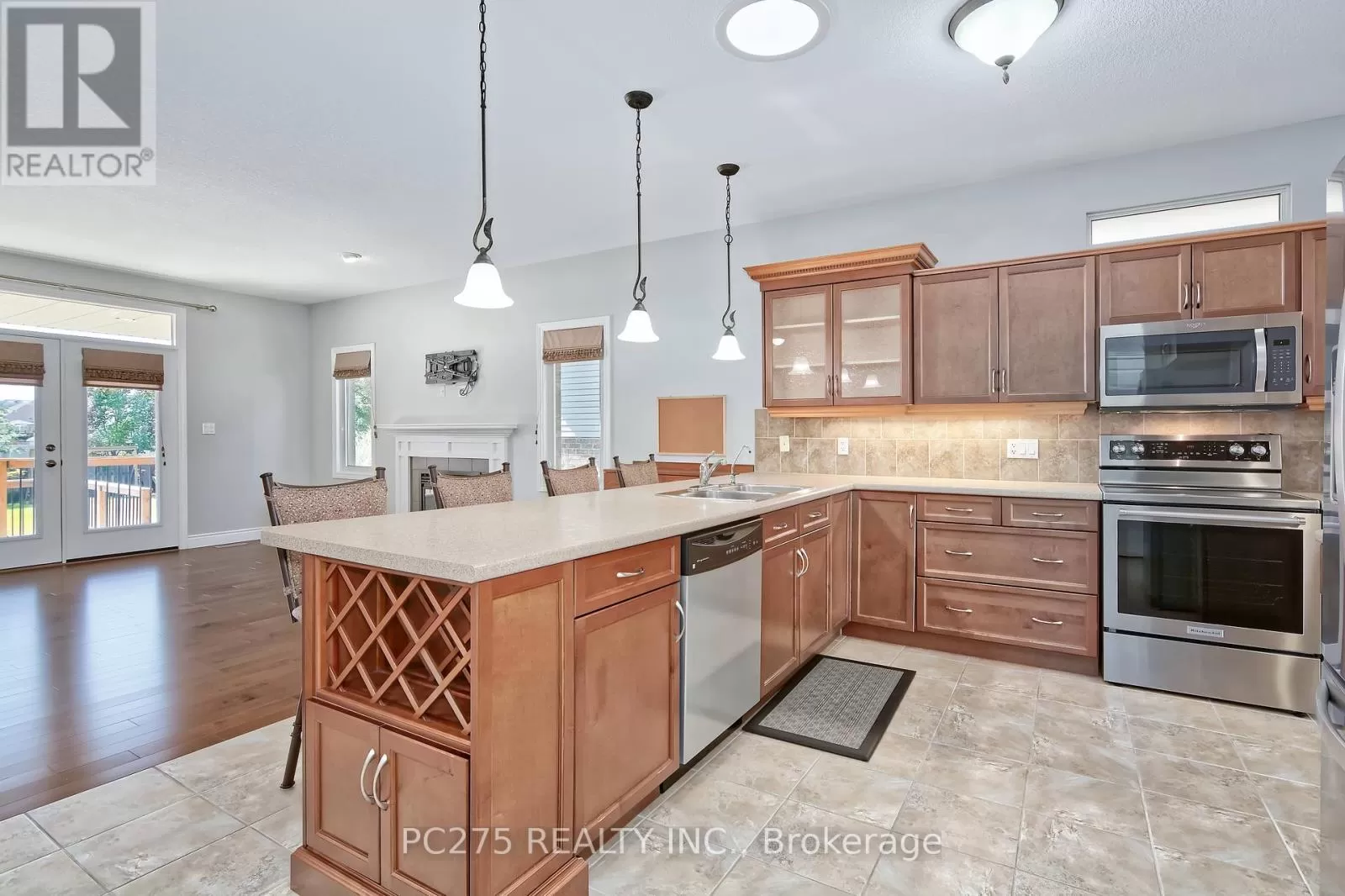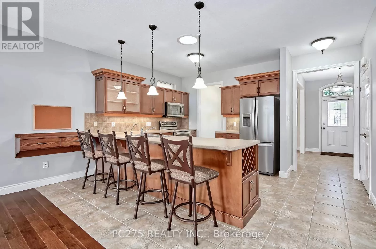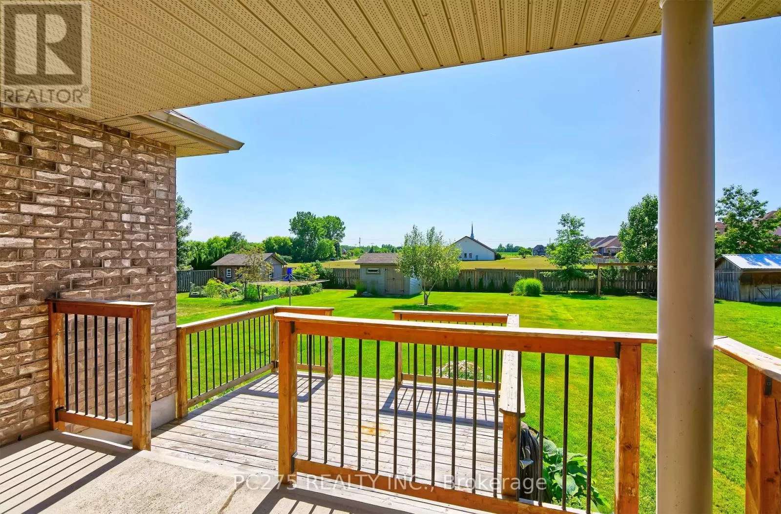 Cross Streets: North St W and Quarter Town Line. ** Directions: Quarter Town Line heading south turn left onto Park Ln and home is on the right. Well-Maintained Hayhoe-Built Bungalow on Quiet Cul-de-Sac This beautifully maintained, one-owner bungalow is nestled in a peaceful neighbourhood on a quiet cul-de-sac, offering the perfect blend of privacy and convenience. Built by Hayhoe Homes, this property features 9-foot ceilings and large windows throughout and a circle skylight in the kitchen, creating a bright and open living space. Enjoy morning coffee or evening relaxation on the covered front and over sized covered back porches, with a stunning view of a deep lot backing onto green space and a charming church no rear neighbours for added tranquility. The inground sprinkler system help to keep the grass looking green and lush. The primary bedroom features a generous walk-in closet, while the kitchen boasts ample storage and counter space, a dedicated bar area with seating for four, and an adjacent dining area perfect for hosting. The living room boast large windows, patio doors leading out to the two decks in the backyard and has a Napoleon Gas Fireplace to keep you warm on those cool nights. The basement includes a large family room, additional bedroom with walk-in closet, and a 3-piece bathroom with an oversized shower. There's also an unfinished area awaiting your personal touch. Located near excellent schools, a large community center with dual ice surfaces, Lake Lisgar Water Park and offering easy highway access, this home combines comfort, space, and practicality perfect for families or downsizers alike. (id:27476)