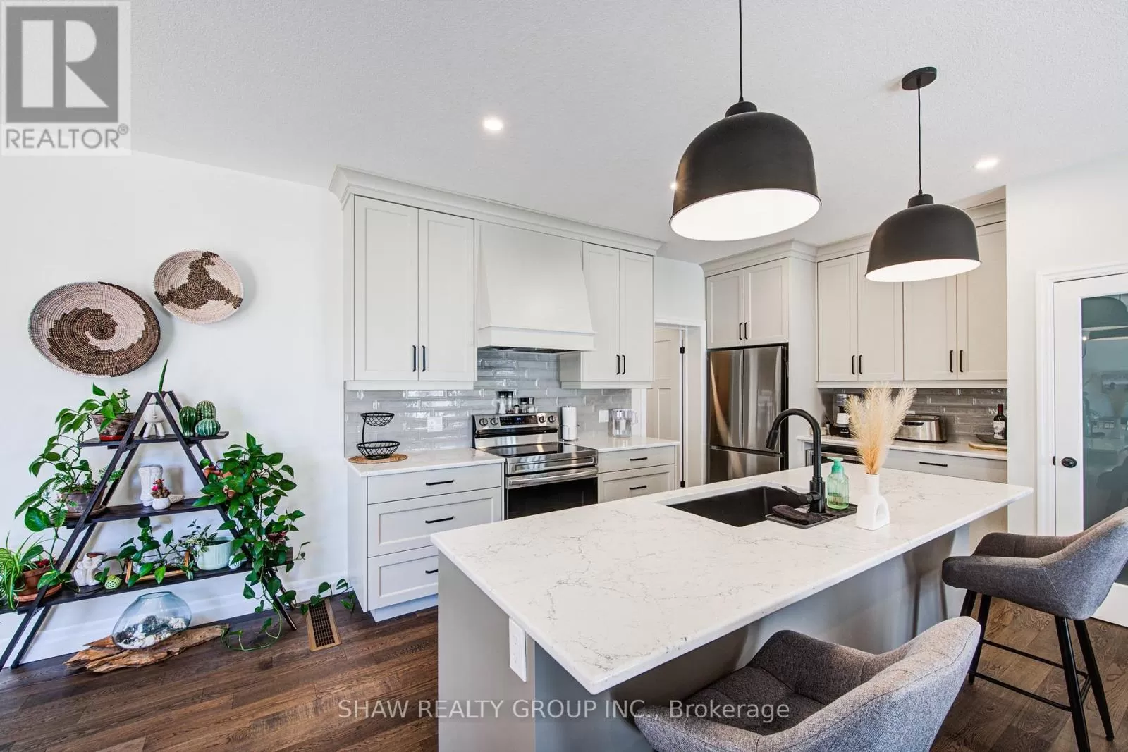 North St E and Coulthard St Welcome to this stunning Hayhoe-built 4+1 bedroom home, perfectly located in a quiet and family-friendly Tillsonburg neighbourhood. Step inside to an inviting open-concept main floor featuring hardwood flooring, pot lights, and upgraded light fixtures throughout. The gorgeous open concept kitchen showcases soft-close shaker-style cabinetry, quartz countertops, stainless steel appliances, and a spacious island ideal for entertaining. Main floor mudroom and laundry adds an extra touch of convenience. Upstairs, youll find four generous bedrooms, including a bright primary retreat with a private 4-piece ensuite. The professionally finished basement offers even more living space with a spacious rec room, large windows, a full bathroom, and an additional bedroom perfect for guests or a growing family. Enjoy life in Tillsonburg, just minutes from Lake Lisgar for swimming and outdoor activities, scenic trails, beautiful parks, and a charming downtown filled with local shops, dining, and farm-fresh produce. Experience the warmth of small-town living with the convenience of city amenities right at your doorstep (id:27476)