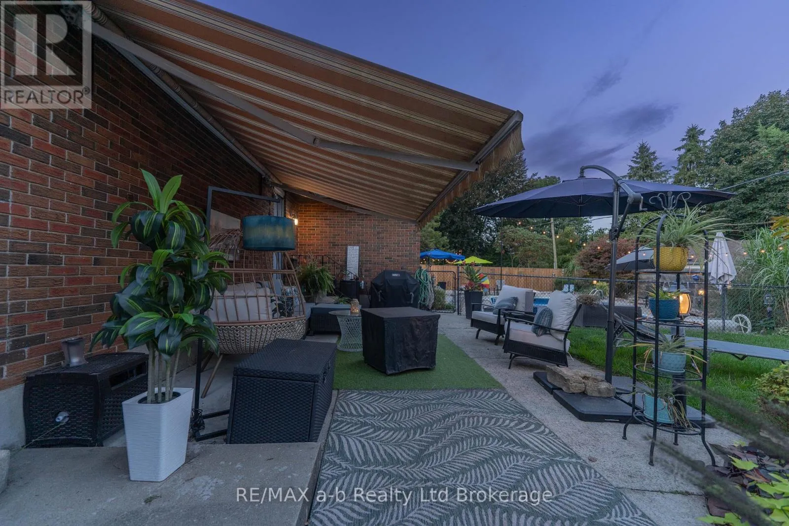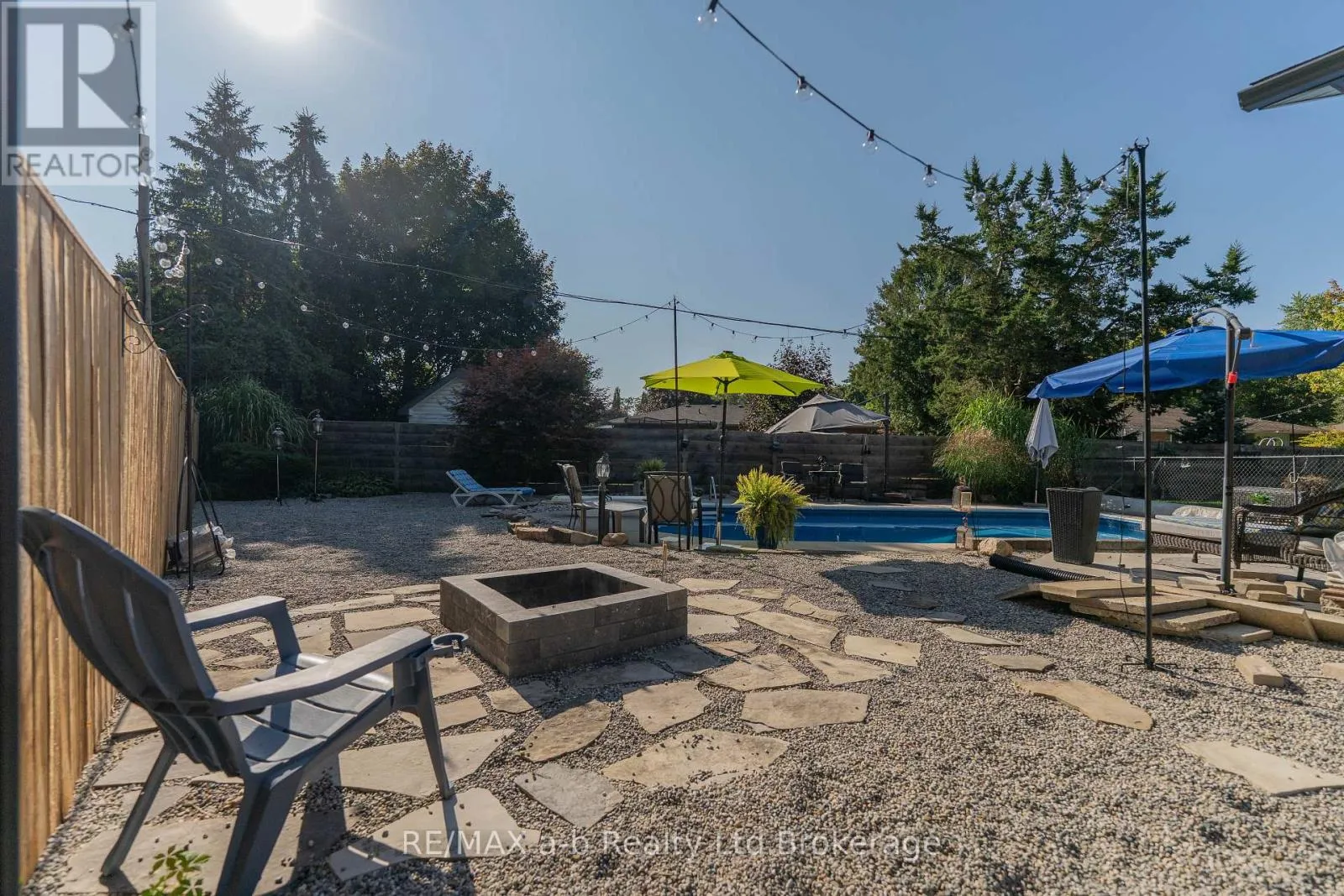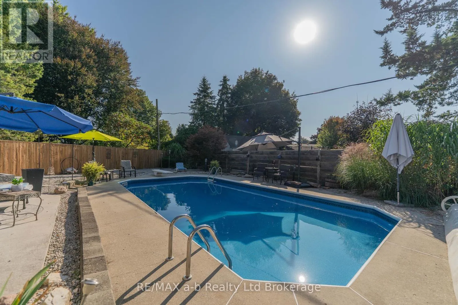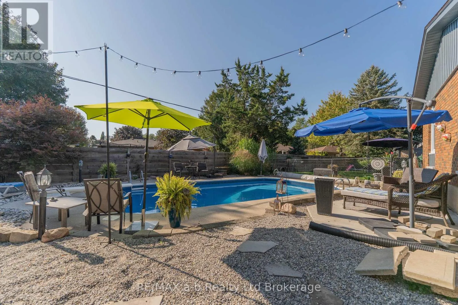 Cross Streets: Glendale Drive. ** Directions: Glendale Drive to Camdon Court, follow to #6. Fresh & Updated 3 Bedroom Bungalow with In-Ground Pool! Welcome to this charming brick bungalow, ideally located just steps from Glendale High School in a well-established neighbourhood. Set on a spacious pie-shaped lot, this home offers both comfort and convenience with plenty of updates already done for you. The freshly updated living room is warm and inviting, featuring new pot lights, flooring, and paint, plus large windows that fill the space with natural light. The eat-in kitchen is perfect for everyday meals or gathering with family and friends. The primary bedroom offers access to a convenient 2-piece cheater ensuite, while the main bath has been refreshed with a newer vanity. The lower level extends your living space with a finished rec room and office area - ideal for family activities or working from home.Outside is where this property truly shines! Enjoy multiple outdoor living spaces, including a private front patio with fencing and recently poured concrete patios in the backyard. Summer days will be a dream with your own in-ground pool, set within a spacious yard designed for both relaxation and entertaining. The oversized driveway provides plenty of parking for family and guests alike.A terrific home in a fantastic location - don't miss this opportunity! (id:27476)