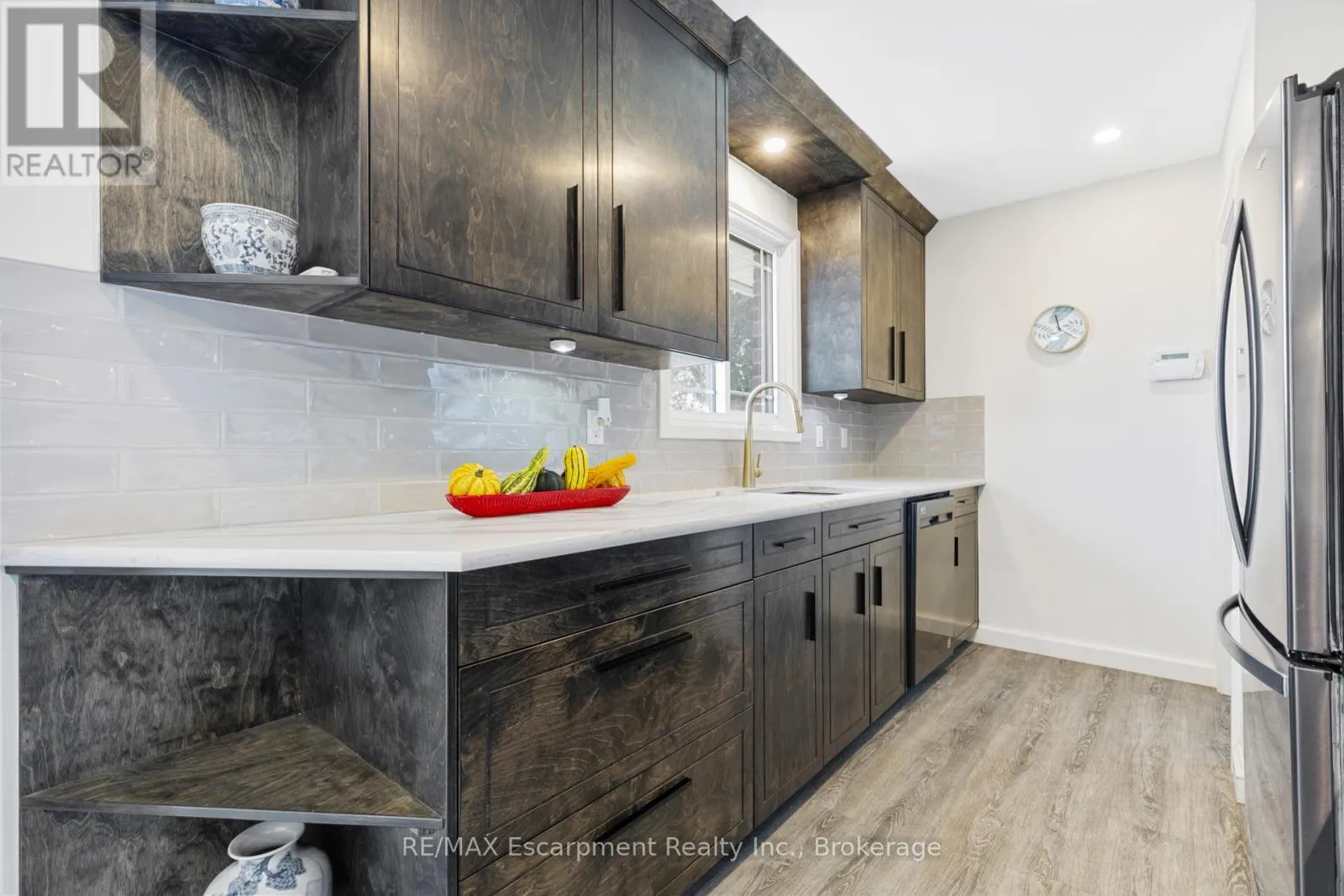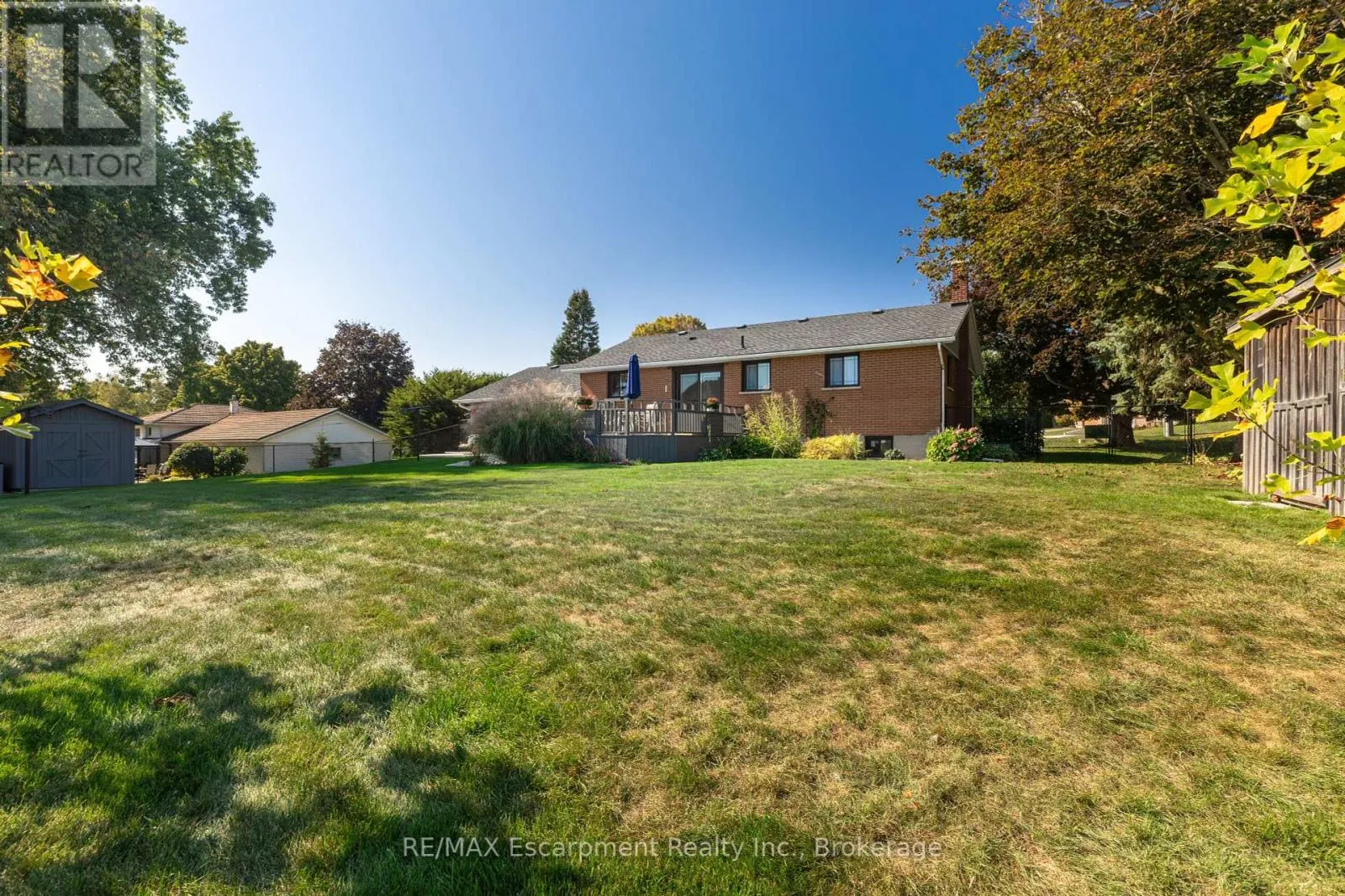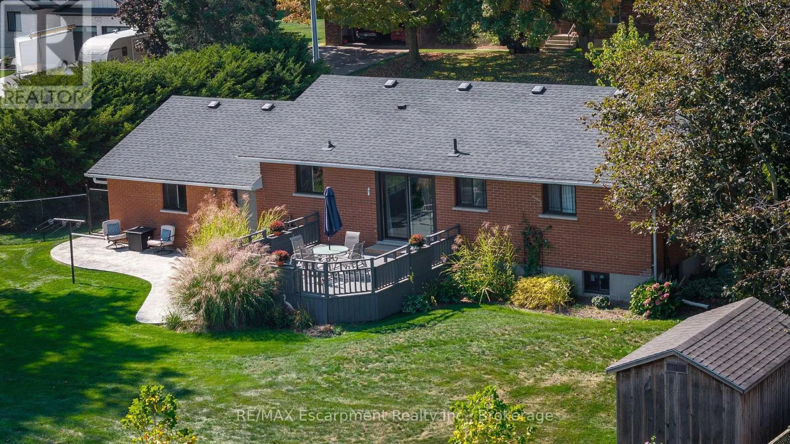 Cross Streets: OWL STREET. ** Directions: NORTH FALCON AND TANAGER. Fantastic Fully Landscaped Family Friendly bungalow in the beautiful town of Tillsonburg! This is your opportunity to own an updated brick bungalow on an oversized lot in a great neighborhood! This turn key immaculate home features 3 bedrooms on the main level and a fourth in the basement. Updated kitchen with quartz countertops (2021). Tiled bathrooms and stamped concrete walkways (2020) are some of the great finishes this property offers. Six driveway parking spaces with two car parking in the garage. The open concept finished basement space provides an opportunity for the use of your choice. The large rear deck allows you to relax outdoors while still having plenty of yard space with mature trees, parennials, and ornamental grasses, and two sheds. Walking/biking trails and green space run along the back of the property. Property measures 131.03 ft x 113.37 ft x 131.74 ft x 114.31 ft. Close to Weston Family Park. (id:27476)