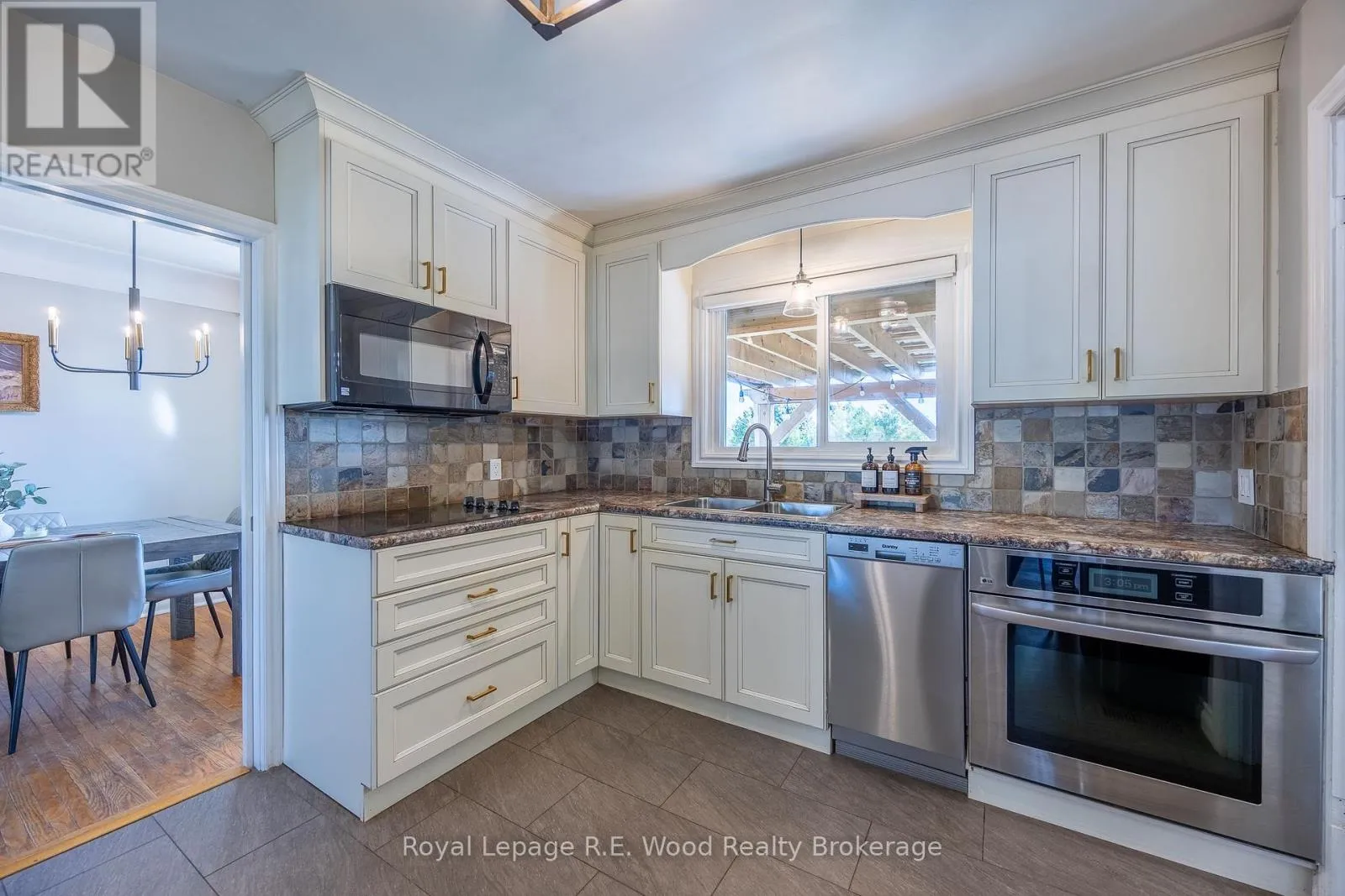 Cross Streets: Broadway St. ** Directions: From Broadway/Hwy 19 turn west onto North St. W. - Property on the South side of the road. 27 North St. W. in Tillsonburg, where pride of ownership is evident inside and out! Situated on over 1/3 of an acre, this brick bungalow with detached oversized double car garage is sure to impress. Attractive inside and out, this 3 bedroom, 2 full bathroom home is located in convenient proximity to shopping, HWY 401, restaurants, parks, trails, schools, golf, sports complex, and more! Perfect for retirees with spacious main floor living, or growing families with plenty of storage & additional living space downstairs. Enter through the Foyer with coat closet; large enough for all your friends and family to be greeted at once! Functional kitchen with quality custom cabinetry and updated appliances. Bright living room room with hardwood floors and gas fireplace opens to the dining room with custom built-ins and direct access to the kitchen. The oversized, fully fenced, and landscaped backyard with covered deck feels like a tranquil oasis! Loads of recent updates including main bathroom, paint, downstairs flooring, appliances, and more. Do not miss your opportunity on this value packed home. (id:27476)