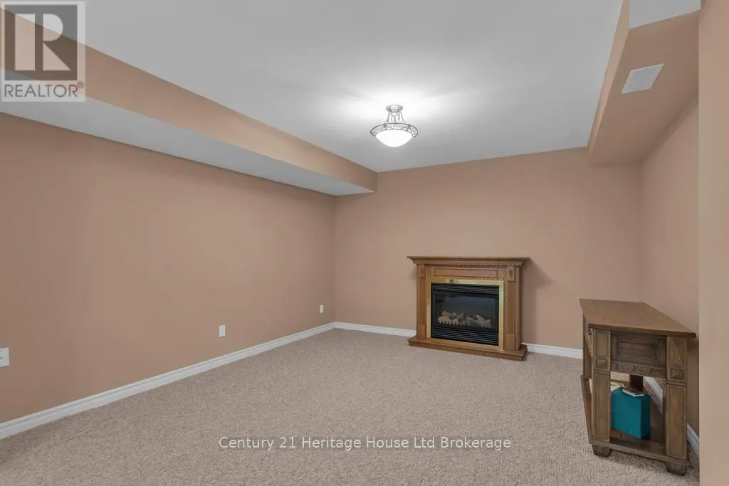 Cross Streets: Wilson. ** Directions: From Baldwin St head North on Wilson and then right on Jackson. Discover the perfect blend of comfort and convenience in this bright and inviting 2 bedroom 3 bath townhouse nestled on a ravine lot in the desirable adult active lifestyle community of Hickory Hills. The peaceful back yard backs onto the ravine so you can sip your morning coffee or tea out on the low-maintenance composite deck and enjoy nature! The main floor consist of laundry area, a bedroom at the front that can be used as a den or office, kitchen with hardwood floors and french pocket doors leading to the open concept dining and living room as well as the large primary bedroom complete with ensuite bathroom with walk in shower. The large living room/dining room area features a cozy gas fireplace, vaulted ceilings and two large skylights allowing lots of natural light to fill the space. Downstairs has lots of room to entertain in the finished rec room complete with electric fireplace to keep it cozy, bathroom as well as a bonus room with walk in closet currently set up as a spare bedroom. While the decor on the main floor is ready for your personal touch, new flooring (with the exception of current hardwood in some rooms) and a fresh coat of paint will bring this gem back to life. It's easy to envision the potential here and with the maintenance fees ($244.08 per quarter) covering the lawn maintenance and snow removal, this home is convenient and worry free. Current annual Hickory Hills Residents Association fee is $655/yr and buyers must acknowledge one-time transfer fee of $2,000. Membership provides you with access to the Hickory Hills Recreation Centre including outdoor pool, hot tub and other amenities. Please note that this community is low density permitting only two occupants per home. (id:27476)