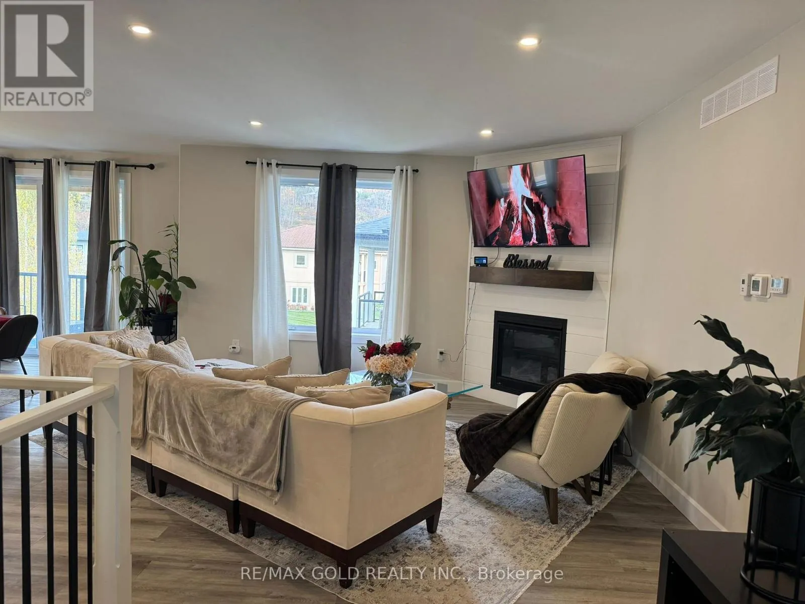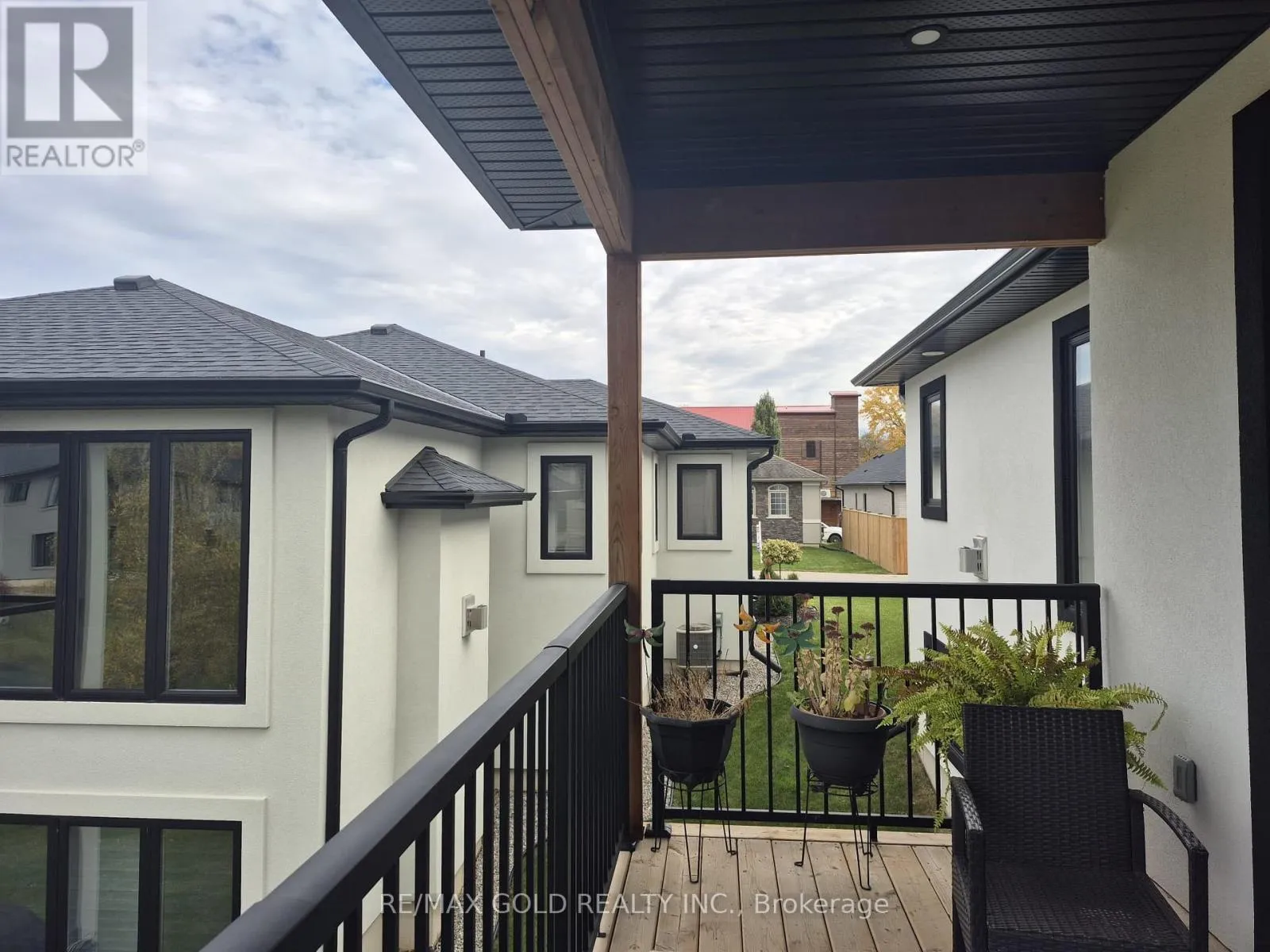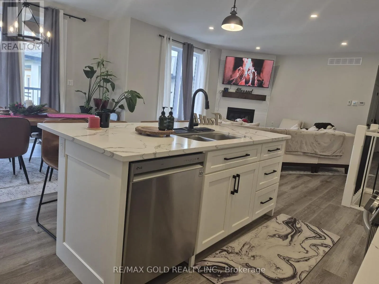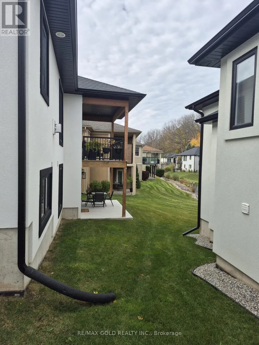 West on HWY 3, North-East onto John Pound Road Welcome to Mill Pond Estates in Tillsonburg, where modern elegance meets tranquil living. This striking 2,808 sqft residence offers a perfect blend of style and comfort, backing onto a serene pond that enhances its peaceful ambiance. The exterior showcases a refined aesthetic with white stucco, black accents, wooden beam details, and a double-car garage with a separate entrance. Inside, the grand foyer with tray ceilings opens to a bright, open-concept layout adorned with contemporary finishes and thoughtful design elements throughout. The living room features a stylish corner gas fireplace, seamlessly connecting to a spacious dining area ideal for entertaining, and a covered porch that overlooks the tranquil pond. The custom-built wood kitchen is a true showpiece, offering ample cabinetry, a striking backsplash, and granite countertops. The main floor includes a primary suite with a walk-in closet and a 3-pieceensuite finished in cultured marble, along with an additional bedroom, a 4-piece bathroom, a laundry closet, and a mudroom with generous storage. The fully finished lower level extends the living space with a large recreation room featuring patio doors that open to a covered concrete terrace, also overlooking the pond. Two additional bedrooms, a 4-piece bathroom, and a spacious utility/storage area complete the lower level. This move-in ready home embodies modern sophistication and is awaiting your personal touch. (id:27476)