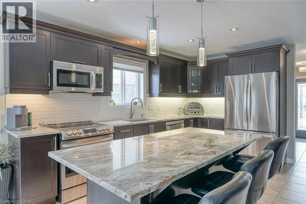 HWY 19 Tillsonburg - Quartertown Line - Landgrell Avenue Welcome to 32 Langrell Avenue Tucked away on a private pie-shaped lot with an extended driveway, this beautiful move-in ready home is designed for modern family living. Offering five bedrooms, two and a half bathrooms, and just over 2,000 square feet of above-grade space plus a fully finished basement, itâs the kind of home that truly has room for everyone. The main floor welcomes you with an inviting open-concept layout, complete with sleek laminate and tile flooring, updated lighting, and an abundance of natural light that fills every corner. The living room is the perfect spot to unwind, while a convenient powder room adds practicality to the space. In the kitchen, style meets function â with stainless steel appliances, quartz countertops, a subway tile backsplash, and a spacious island with seating for four. Whether youâre cooking a family meal or hosting friends, this space is made to impress. Upstairs, youâll find a bright family room that opens onto a private covered balcony â the ideal spot to enjoy your morning coffee or watch the sunset. The primary bedroom features a walk-in closet and a 4-piece ensuite, while two additional bedrooms and another full bathroom complete this level. The finished basement expands your living area with two more bedrooms, a recreation space, and a generous laundry room â perfect for guests, teens, or a home office setup. Step outside to a fully fenced backyard with no rear neighbours, a large concrete patio, and beautifully maintained landscaping â a private retreat for kids, pets, and gatherings alike. Located in a quiet, family-oriented neighbourhood, 32 Langrell Avenue is just minutes from schools, parks, shopping, and offers quick access to Highway 401. This home delivers the space, comfort, and lifestyle your family has been searching for. (id:27476)