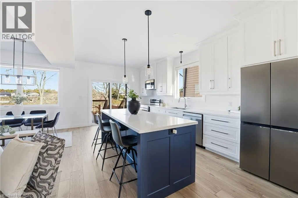 QUARTER TOWN LINE/CONCESSION ST W Welcome to this beautifully updated two-storey semi-detached home in the heart of Tillsonburg, where small-town charm meets modern comfort. Step inside to a bright, open-concept main floor designed for both everyday living and entertaining. The stylish kitchen impresses with floor-to-ceiling white cabinetry, a striking navy island, and sleek, contemporary finishes. The adjoining dining area flows seamlessly through patio doors to a private deckâperfect for summer barbecues or quiet morning coffees. Upstairs, the primary suite features a walk-in closet and a private ensuite, while two additional bedrooms and the convenience of second-floor laundry complete this level. The unfinished basement offers exciting potential for a future family room, playroom, or home officeâcustomize it to suit your lifestyle. Situated close to parks, schools, and local amenities, this home combines modern living with the warmth of a welcoming community. (id:27476)