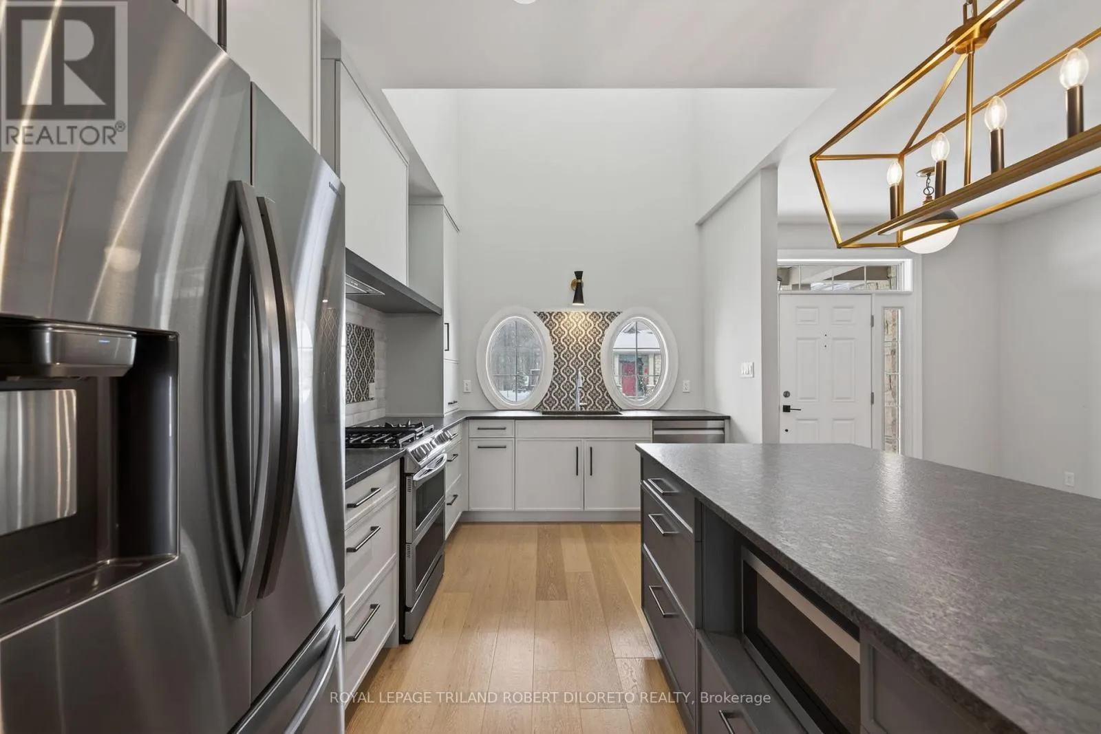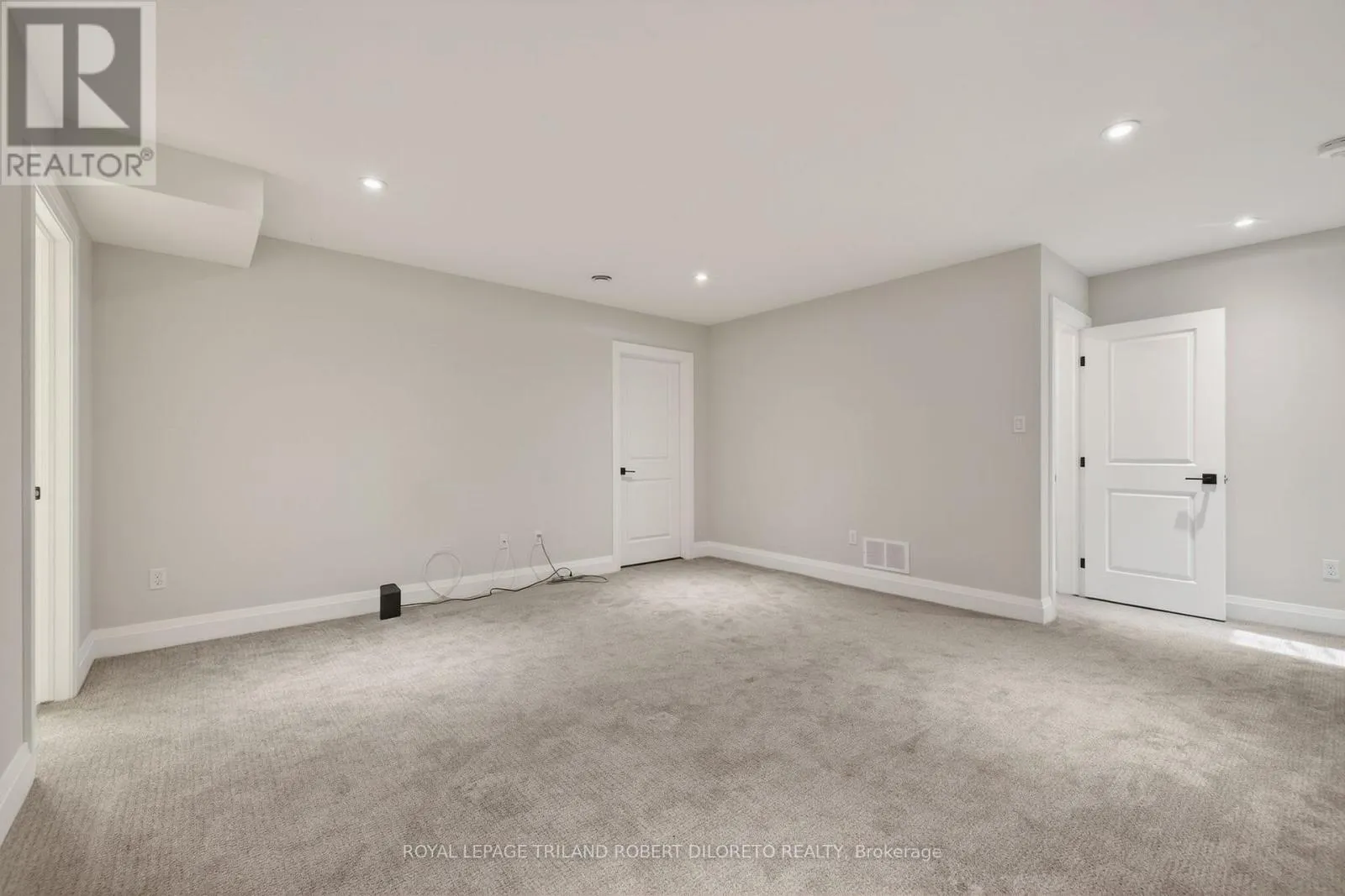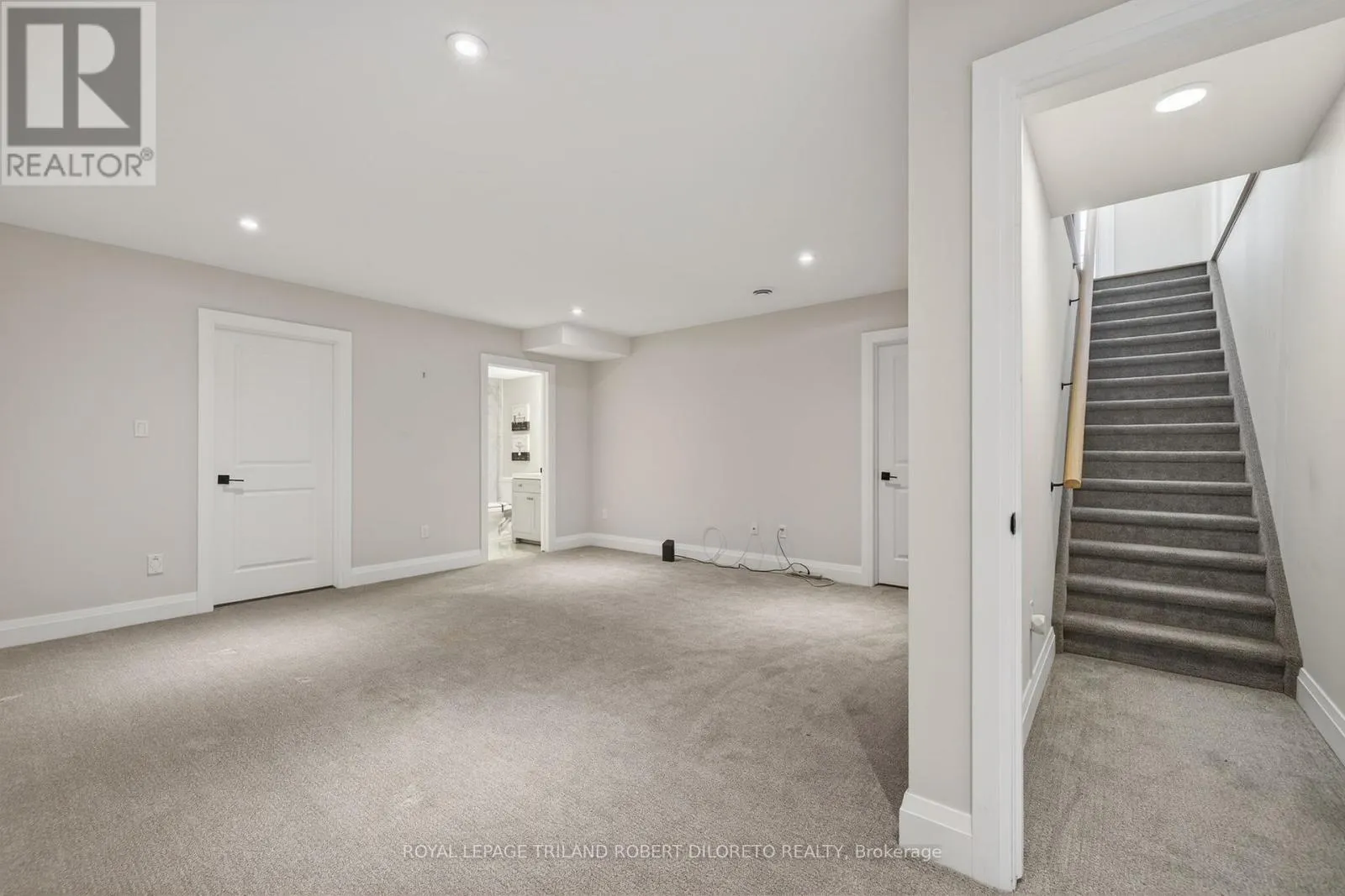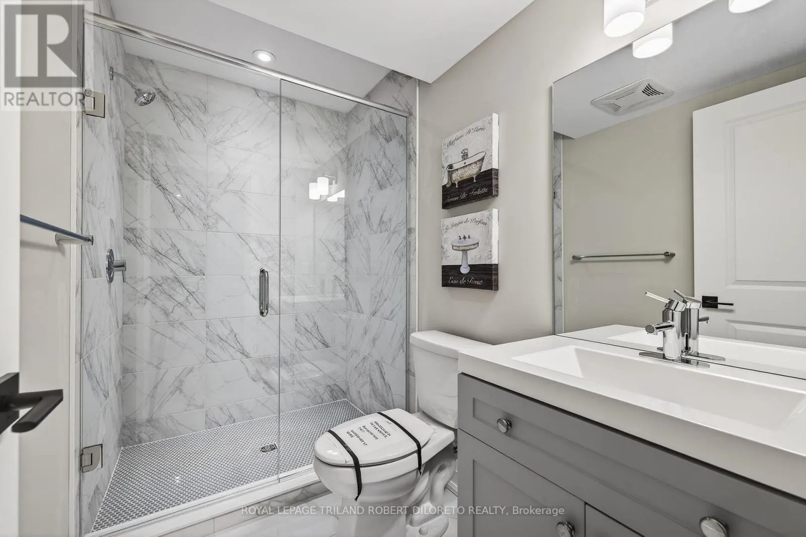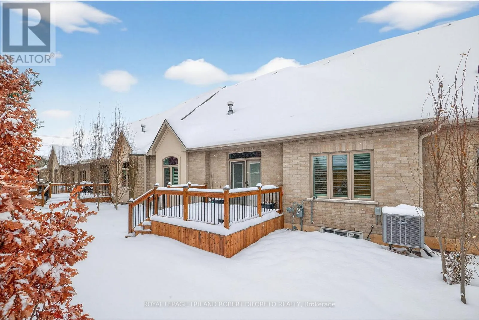 Cross Streets: Baldwin Street. ** Directions: Baldwin Street West to Wood Haven Drive. South on Wood Haven to complex on west side. Elegant Executive condo living in quiet southwest Tillsonburg neighbourhood! Enjoy the convenience of one floor living in this Spotless, Spacious & Stylish 2+1 bedroom, 3 bath one floor condo with double attached garage and partly finished lower level. Plenty of curb curb appeal with attractive stone exterior, large covered front porch, paver stone driveway and walkways; total wow factor interior with neutral decor, large windows and carpet free on main level; open concept main living areas with entertainment style chef's kitchen highlighted by huge island with seating & unique sink area with 2 oval windows & soaring ceiling; living and dining areas with vaulted ceiling include fireplace and walkout to large sundeck; luxurious primary bedroom suite with private 4pc bath and large walk-in closet; additional main floor bedroom & 3pc bath; main floor laundry; finished recreation room, bedroom and 3pc bath on lower + loads of storage & extra unspoiled space to customize as needed. This absolutely move in ready home is not to be missed! Must see in person. More details area available. Fast possession. Easy Access to all amenities including HWY 3 for commuters. (id:27476)