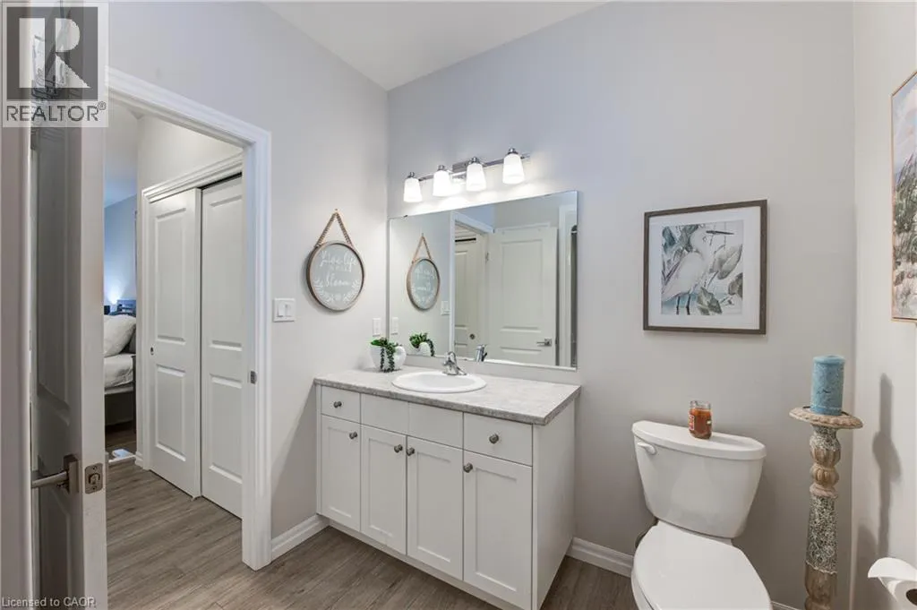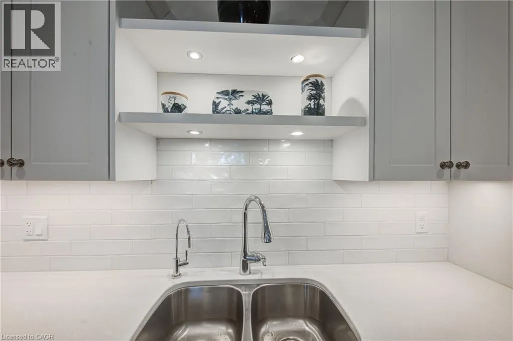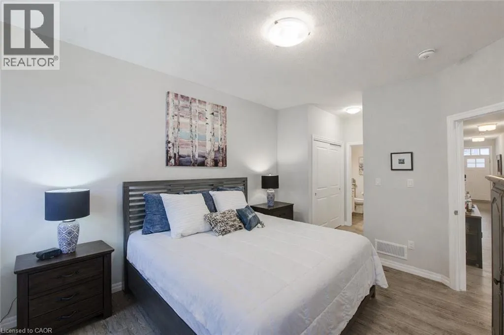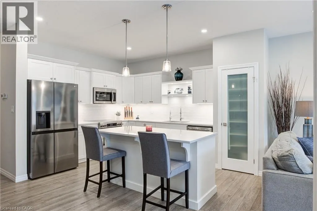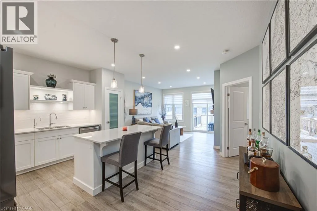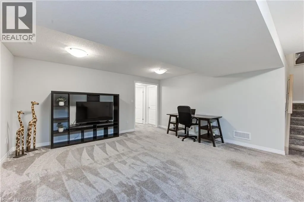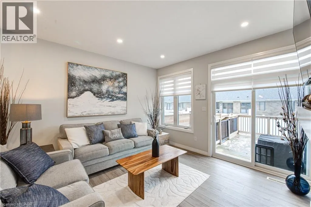Broadway Street North, take North Street East, turn right (south) onto Coulthard Street, left onto Livingston Drive. Built by award-winning Hayhoe Homes, this meticulously maintained freehold bungalow townhome offers stylish, low-maintenance living with no condo fees. The open-concept main floor features laminate flooring, quartz countertops, a large kitchen island with seating, tile backsplash, pantry, main-floor laundry, and a bright living area with an electric fireplace featuring adjustable LED flame colours. Patio doors lead to a fully fenced back deck, ideal for outdoor entertaining. The main level includes two bedrooms and two bathrooms, including a spacious primary suite with a four-piece ensuite, large double closets, and blackout blinds. The front room offers flexibility as a bedroom, home office, or den. Window blinds are installed throughout the upper level. The fully finished lower level offers a generous recreation room, third bedroom, four-piece bathroom, and ample storageâperfect for guests or extended family. Enjoy a fully fenced, dog-proof backyard with landscaped perennial gardens, stone accents, a custom gate off the deck, gas BBQ hookup, and a professionally installed storage shed. The attached garage measures 19'1 x 10'10. Parking for three vehicles is provided with one garage space and two driveway spaces, freshly coated and sealed. Additional features include quality appliances, water softener, kitchen water filtration, Lifebreath air exchanger, and optional chest freezer. Located in a desirable neighbourhood close to schools, parks, shopping, restaurants, and Highway 401 access, with an easy drive to London, Woodstock, and Lake Erie beaches. A beautifully maintained, move-in-ready home offering exceptional value and convenienceâwith no condo fees. (id:27476)