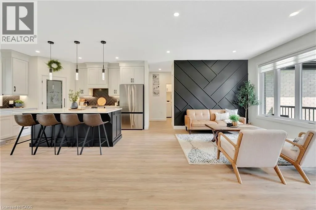 North St E to Falcon Rd. Right on Tanager Dr., House is on your Left Wrapped in a striking blend of brick and hardy board, the exterior of this luxury bungalow is beautifully illuminated by soft exterior pot lighting, while a spacious triple car garage offers both curb appeal and everyday functionality. A charming covered front entry sets the tone with timeless character, leading into a bright, welcoming foyer where natural light streams through elegant double sidelights. Inside, the home opens to a stunning, open-concept layout with rich flooring that flows seamlessly throughout the main level. The living room stands as a warm and inviting focal point, anchored by a sophisticated accent wall that adds texture and depth to the space. At the heart of the home is a chef-inspired white kitchen, highlighted by a bold black-accented island and ceiling-height cabinetry that blends style with exceptional storage. A generously sized walk-in pantry enhances both function and flow. Adjacent to the kitchen, the dining area offers an oversized sliding walk-out to a spacious covered patioâperfect for effortless entertaining and year-round indoor-outdoor living. The main level features three thoughtfully placed bedrooms, offering comfort and privacy for the whole family. The primary suite serves as a true sanctuary, complete with a luxurious 5-piece ensuite featuring dual vanities, a deep soaker tub, and a glass-enclosed shower. Two additional bedrooms are complemented by a beautifully appointed 4-piece bathroom, while a stylish main floor laundry room provides added convenience. Downstairs, the fully finished lower level expands your living space with two additional large bedrooms and a full bathroomâideal for teens, in-laws, or guests. A spacious rec room offers endless versatility, whether you're envisioning a home theatre, gym, or playroom. (id:27476)