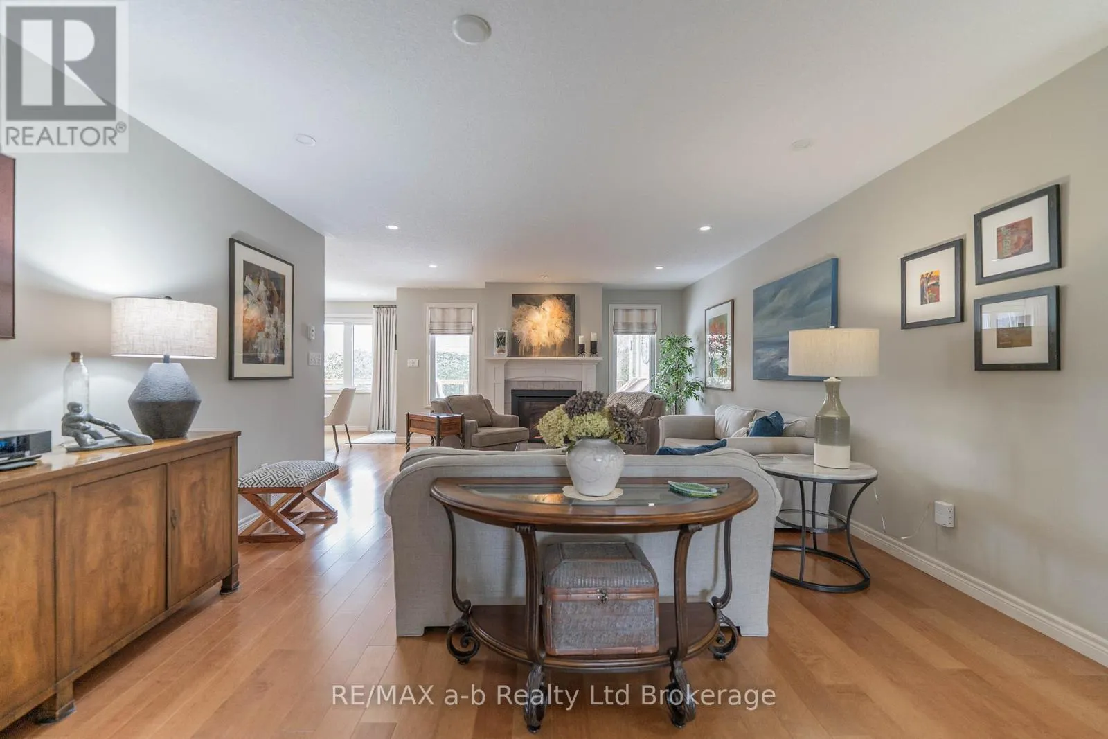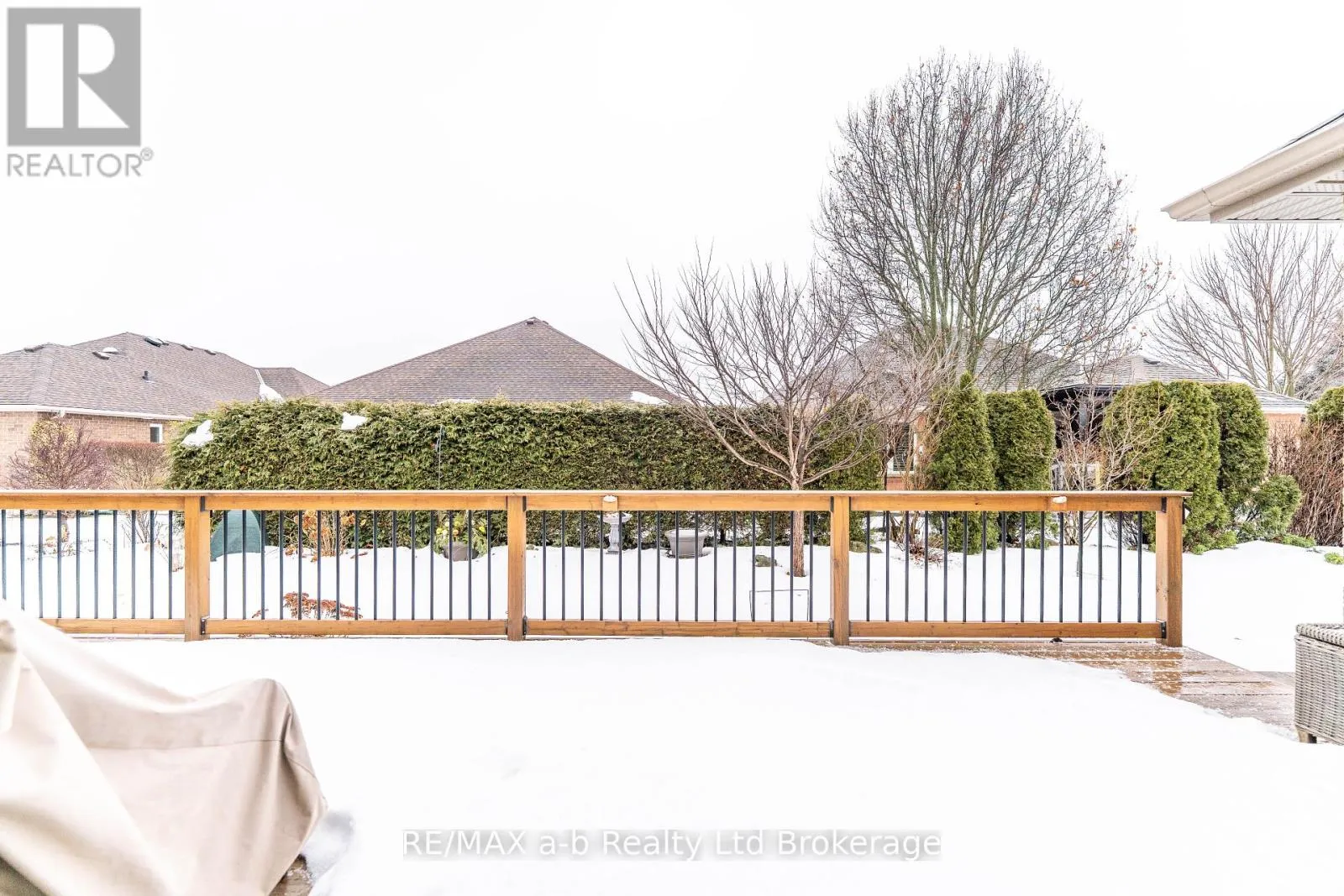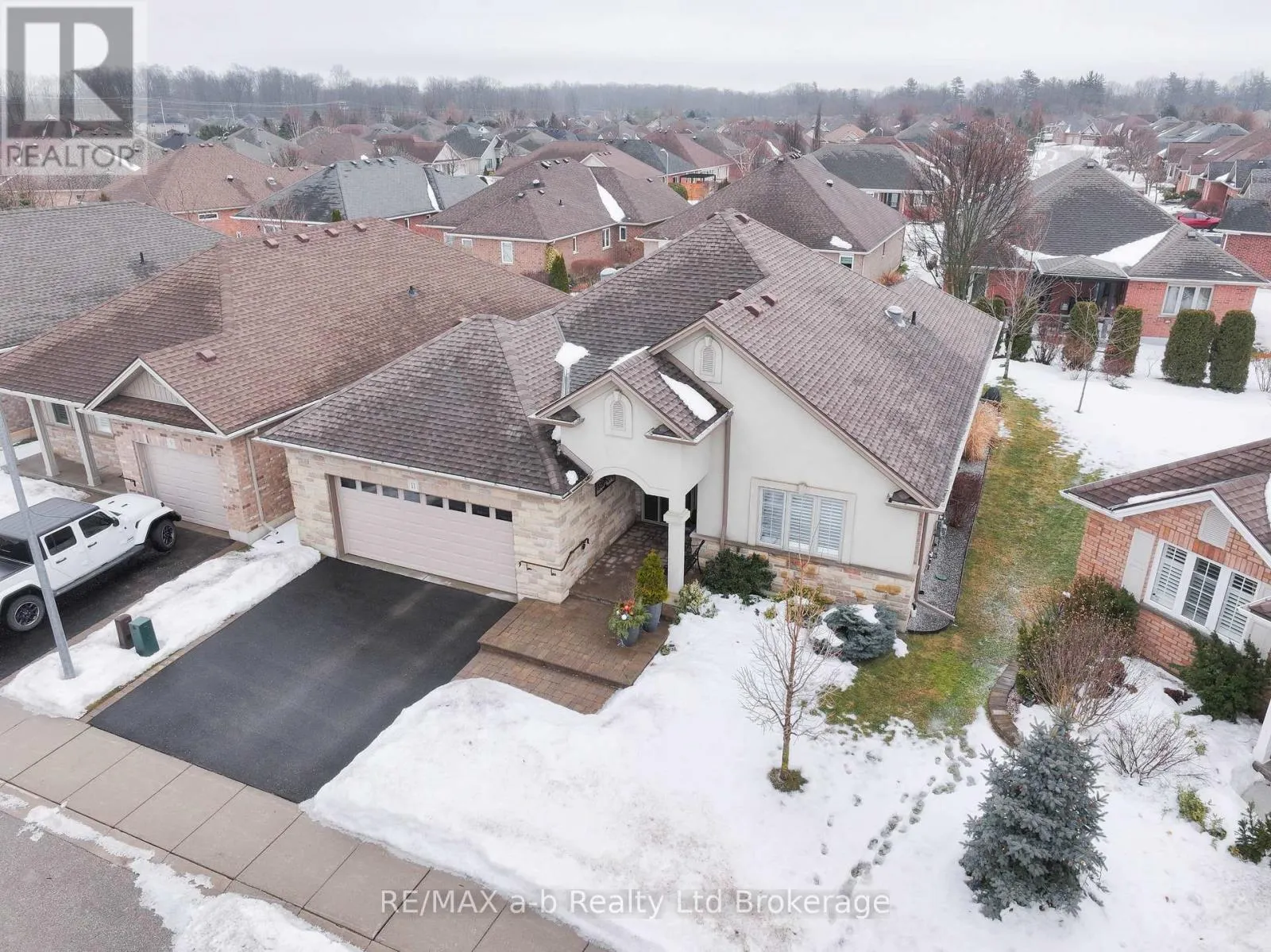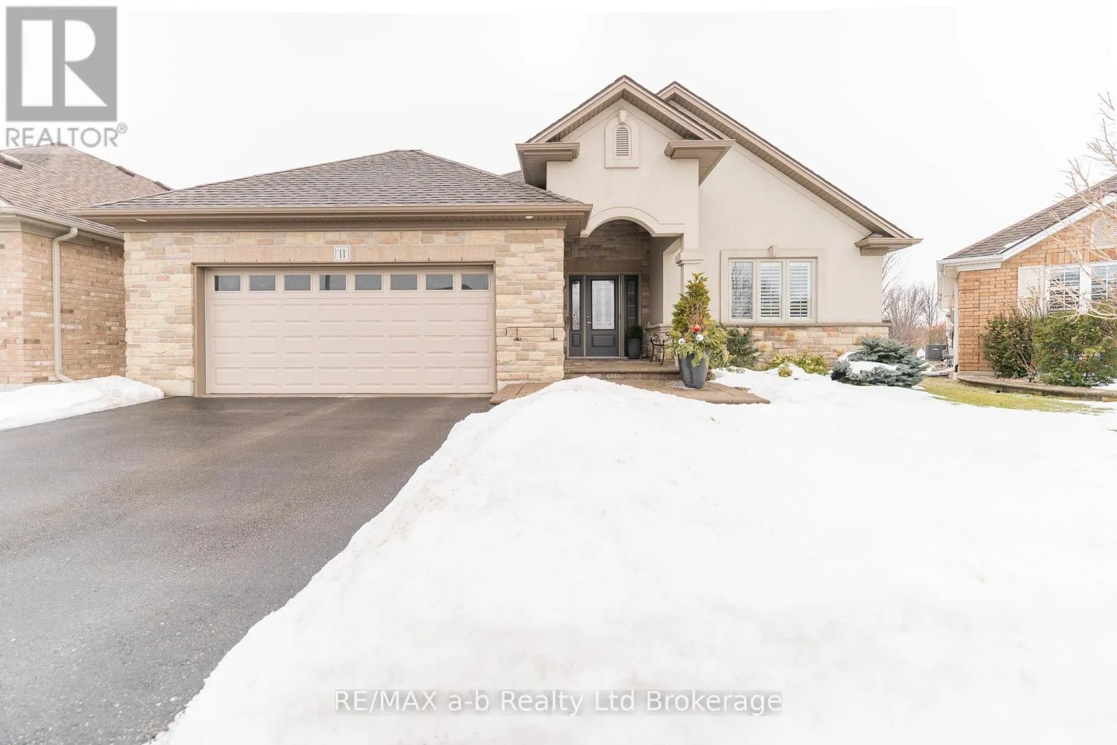 Cross Streets: Weston Drive. ** Directions: Weston Drive to Hollier -- follow to #11. Absolutely pristine Gainsborough model in the sought-after Baldwin Place Adult Community (55+)! This 10-year-young home is loaded with upgrades - including an oversized double car garage with convenient man door.From the moment you arrive, the attractive brick and stucco exterior and welcoming interlocking patio set the tone. Step inside through sidelights that open to let in a fresh breeze, and you'll feel like you've walked into the pages of a magazine. The spacious living area features rich hardwood floors, pot lights, and a beautiful gas fireplace framed by windows on each side. The extended dining area offers the perfect setting for gathering with family and friends, seamlessly connected to the stunning gourmet kitchen - a true showpiece for anyone who loves to cook or entertain. A main floor laundry/mudroom just off the kitchen makes everyday living, including bringing in groceries, effortless. The main level also includes a versatile den or home office, two bedrooms, and two bathrooms. The primary suite is a relaxing retreat, complete with a walk-in closet and a 3-piece ensuite featuring additional cabinetry. The finished lower level is equally impressive, offering a large recreation room, an additional finished bedroom (or office), a 2-piece bathroom with rough-in for a future shower, and a dedicated paint studio that could easily be transformed to suit your needs.Step outside to enjoy your own private retreat - a spacious deck with two awnings and thoughtfully designed landscaping creates the perfect space to relax and enjoy peaceful summer days. Residents can enjoy a leisurely stroll to the community centre, providing a heated outdoor pool and hot tub, library, craft and card rooms, a fully equipped kitchen, and a vibrant calendar of indoor and outdoor activities. Explore scenic walking trails that weave through the area, immersing you in the beauty of the surroundings. This is more than a home; it's a lifestyle! (id:27476)