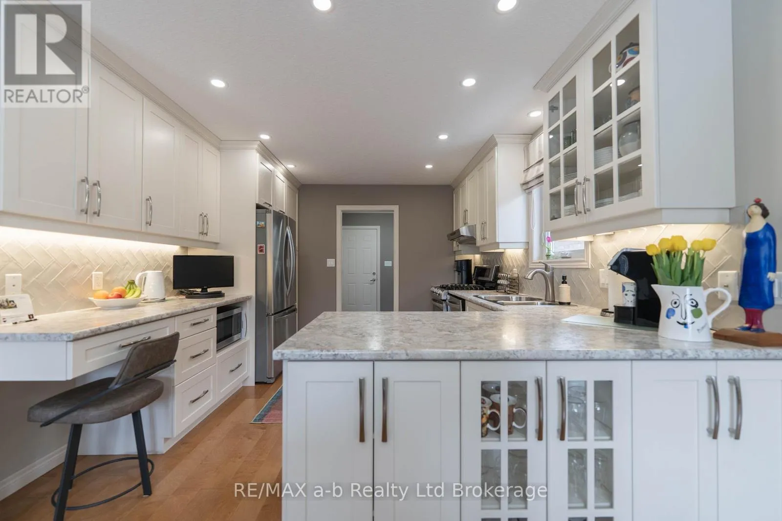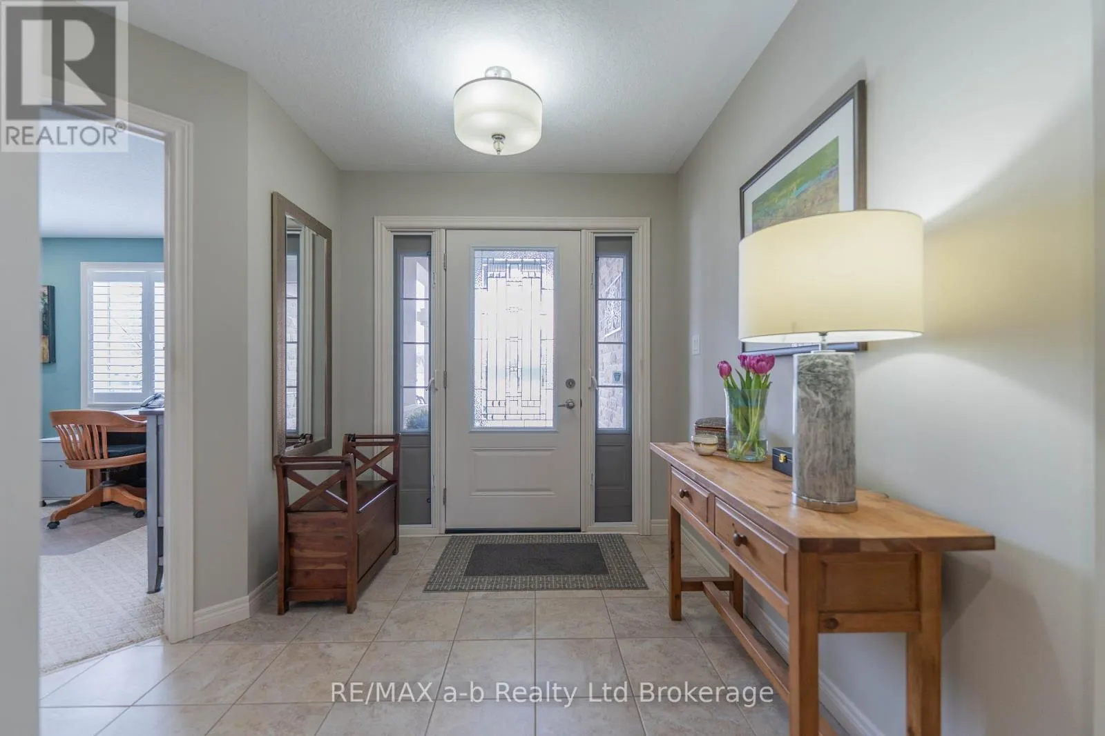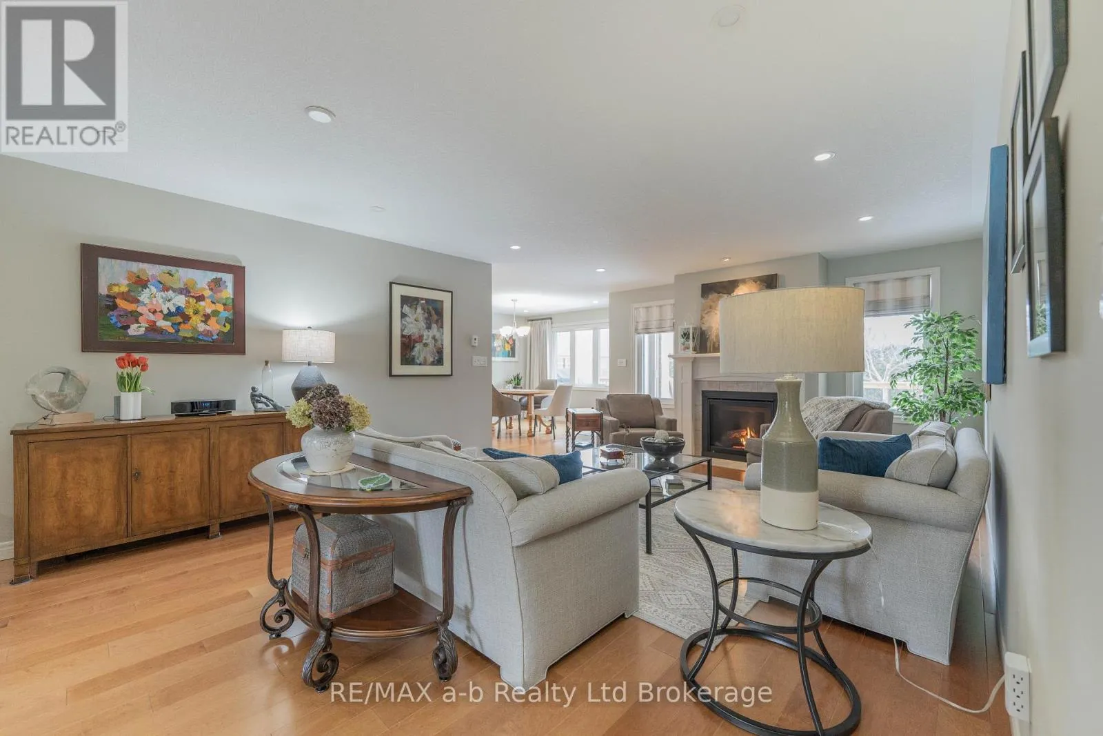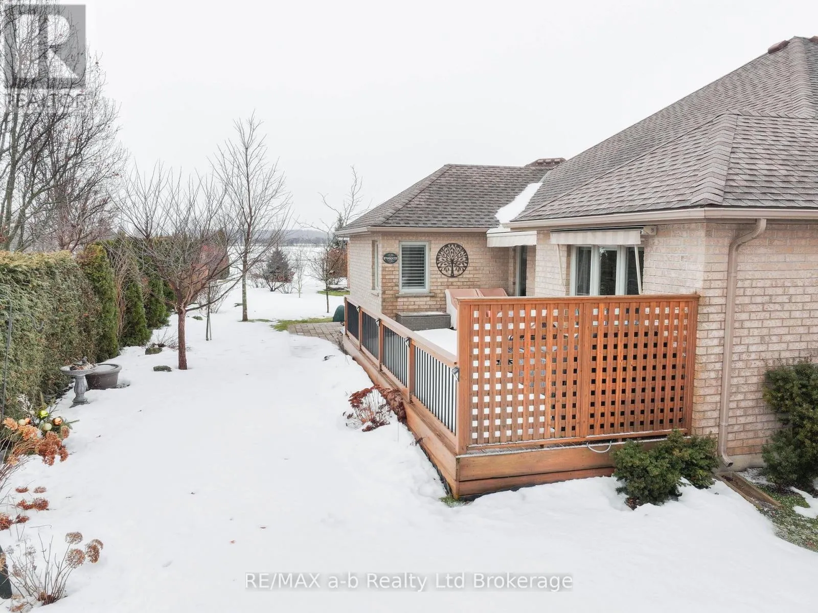 Cross Streets: Weston Drive. ** Directions: Weston Drive to Hollier -- follow to #11. Absolutely pristine Gainsborough model in the sought-after Baldwin Place Adult Community (55+)! This 10-year-young home is loaded with upgrades - including an oversized double car garage with convenient man door.From the moment you arrive, the attractive brick and stucco exterior and welcoming interlocking patio set the tone. Step inside through sidelights that open to let in a fresh breeze, and you'll feel like you've walked into the pages of a magazine. The spacious living area features rich hardwood floors, pot lights, and a beautiful gas fireplace framed by windows on each side. The extended dining area offers the perfect setting for gathering with family and friends, seamlessly connected to the stunning gourmet kitchen - a true showpiece for anyone who loves to cook or entertain. A main floor laundry/mudroom just off the kitchen makes everyday living, including bringing in groceries, effortless. The main level also includes a versatile den or home office, two bedrooms, and two bathrooms. The primary suite is a relaxing retreat, complete with a walk-in closet and a 3-piece ensuite featuring additional cabinetry. The finished lower level is equally impressive, offering a large recreation room, an additional finished bedroom (or office), a 2-piece bathroom with rough-in for a future shower, and a dedicated paint studio that could easily be transformed to suit your needs.Step outside to enjoy your own private retreat - a spacious deck with two awnings and thoughtfully designed landscaping creates the perfect space to relax and enjoy peaceful summer days. Residents can enjoy a leisurely stroll to the community centre, providing a heated outdoor pool and hot tub, library, craft and card rooms, a fully equipped kitchen, and a vibrant calendar of indoor and outdoor activities. Explore scenic walking trails that weave through the area, immersing you in the beauty of the surroundings. This is more than a home; it's a lifestyle! (id:27476)