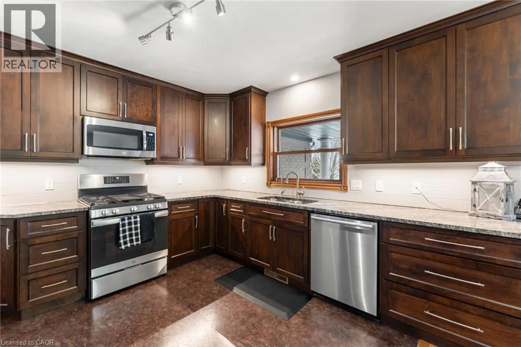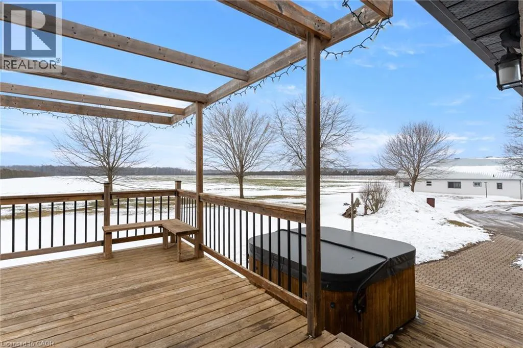 This ranch bungalow is a true escape, nestled against beautiful open farmland for ultimate peace and quiet. The updated kitchen features granite counters, a gas range, and custom cabinetry, flowing into a bright living area that walks out to a private deck. Relax in the serene backyard oasis, complete with a hot tub and scenic views. A massive finished lower level offers endless extra space. Move-in ready and perfectly peaceful. This is the one! (id:27476)
