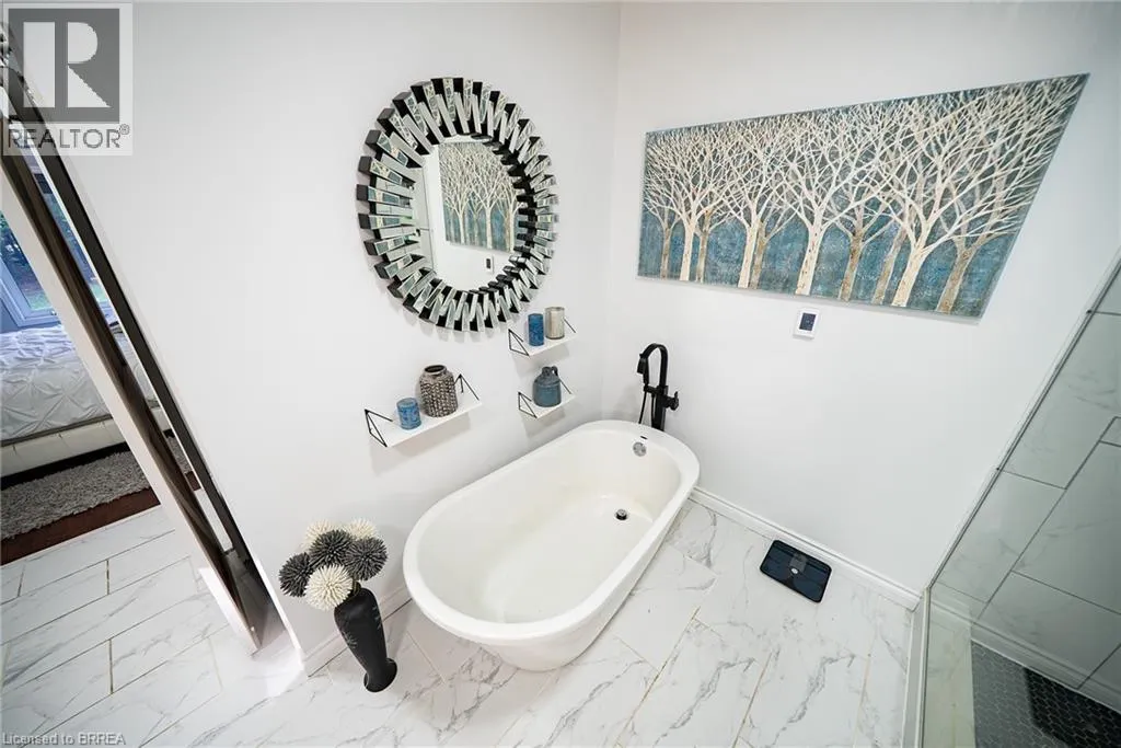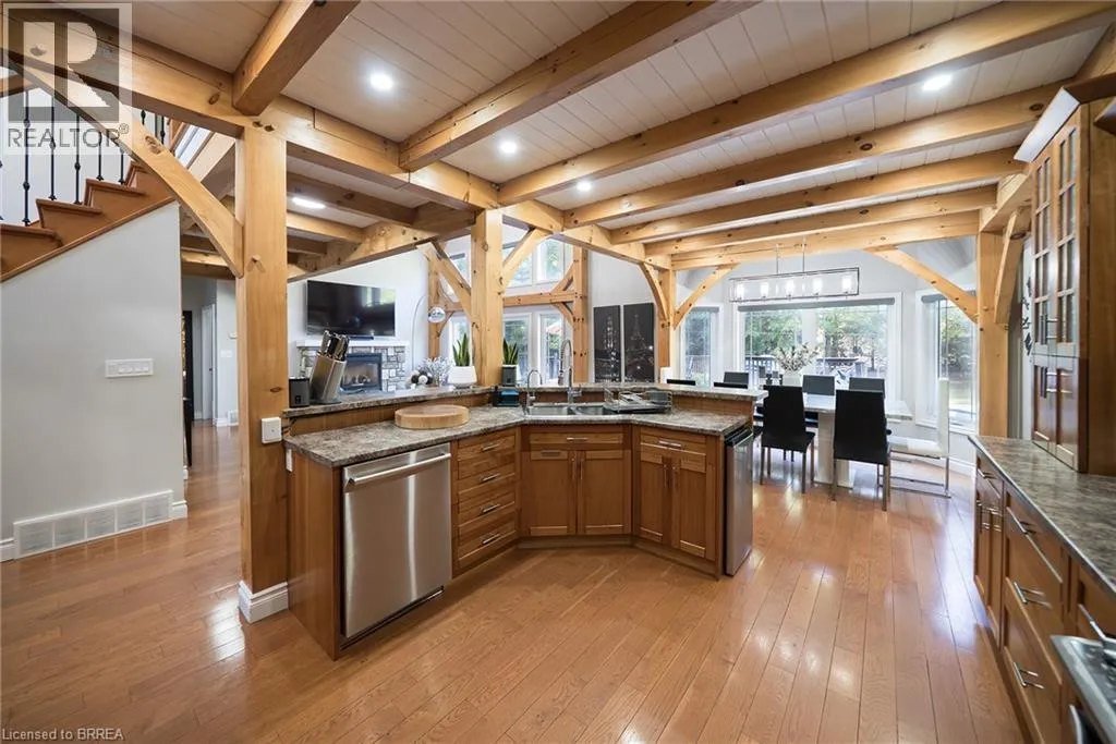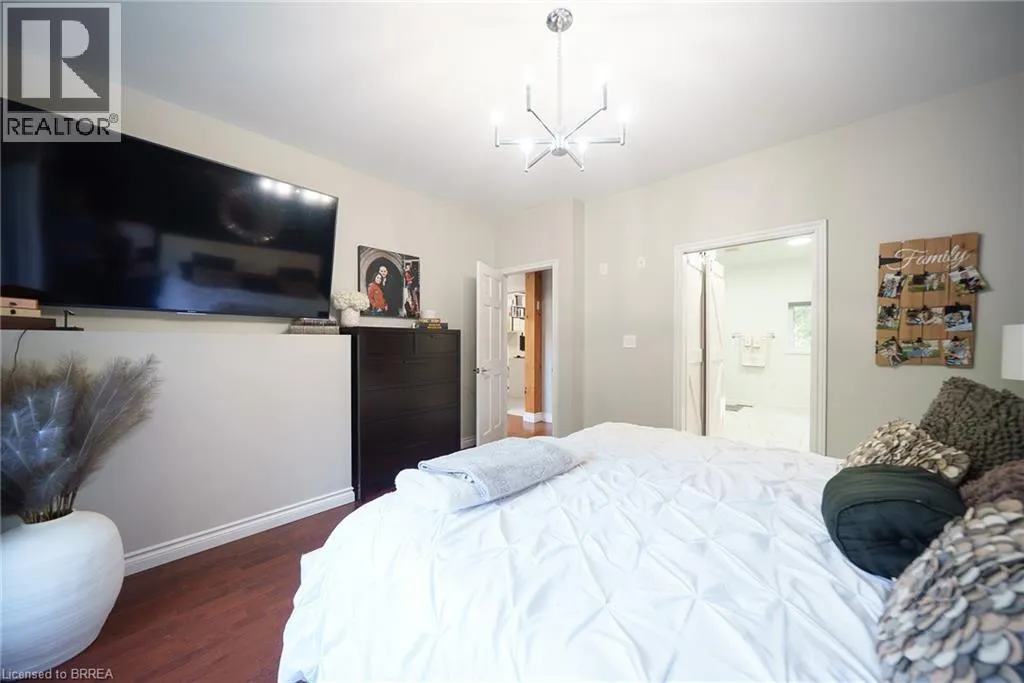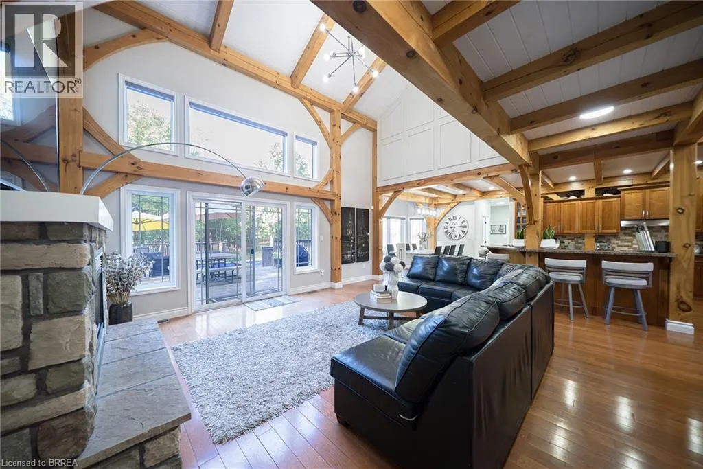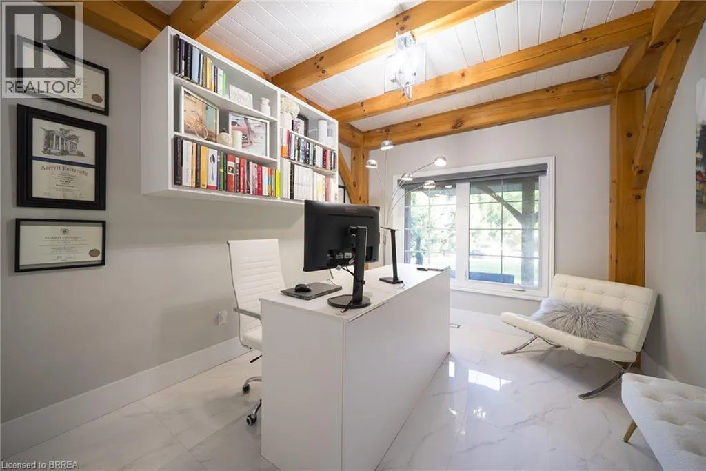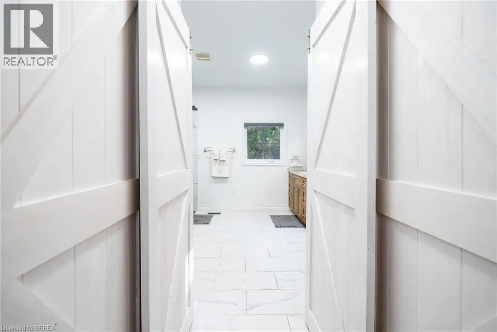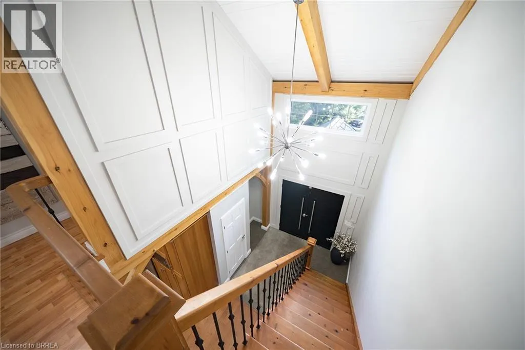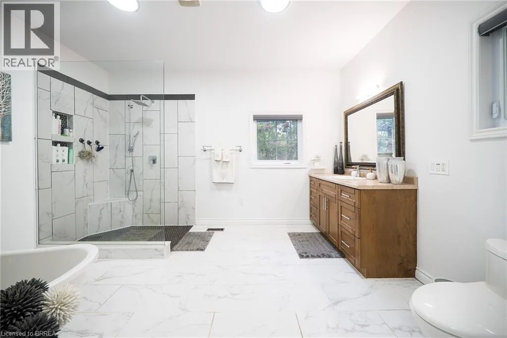 Vienna Road to Michael's Lane Welcome to your private country retreat at 9 Michaelâs Lane. Set on a beautifully landscaped 1.39-acre lot, this exceptional home offers over 3,300 sq. ft. of finished living space, blending modern updates with the serenity of a true outdoor oasis. Thoughtfully renovated from 2022â2025, the home features a bright and functional main floor with a spacious kitchen, dining area, and stunning great room highlighted by soaring ceilings and wood beams. The main level includes a spacious primary bedroom with a 5-piece ensuite, plus a second bedroom and a convenient 2-piece bathroomâideal for guests or a home office. A large mudroom and main-floor laundry add everyday practicality. Upstairs, youâll find three additional bedrooms and a full 4-piece bathroom, offering plenty of space for a growing family or visiting guests. The finished lower level adds even more versatility with a gym, sitting room, and denâperfect for work-from-home space, hobbies, or cozy movie nights. Step outside and experience your own private backyard oasis, complete with a heated on-ground pool, new liner and salt cell, extensive landscaping, mature trees, and plenty of space to relax or entertain in total privacy. Recent exterior upgrades include a metal roof, new pool heater, exterior lighting, and enhanced curb appeal with newly planted trees and gardens. With extensive updates throughout â including bathrooms, flooring, lighting, windows and doors, custom closets, and high-end finishes â this move-in-ready property offers the perfect blend of comfort, style, and outdoor living. A rare opportunity to enjoy country privacy without sacrificing space, quality, or modern convenience. (id:27476)