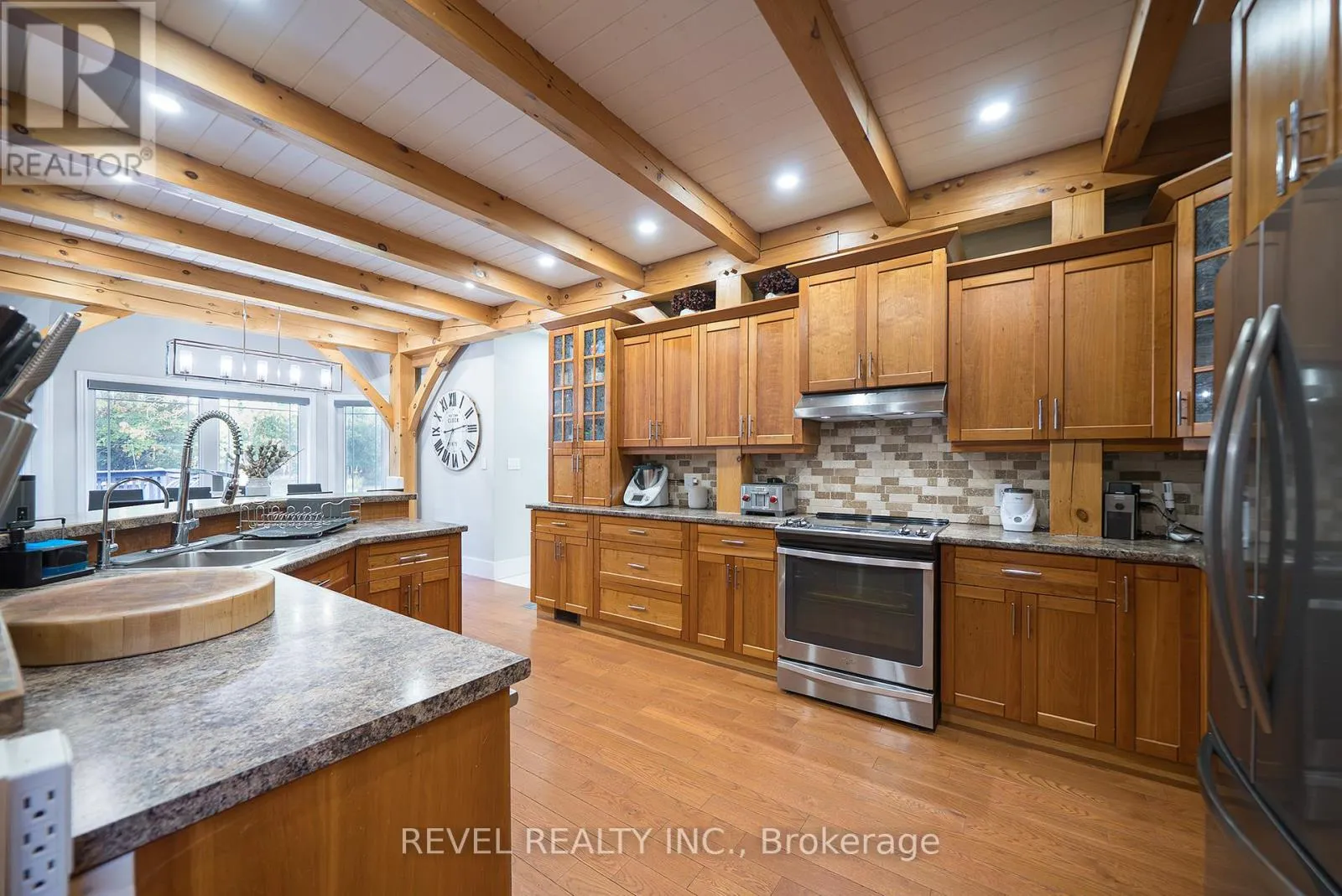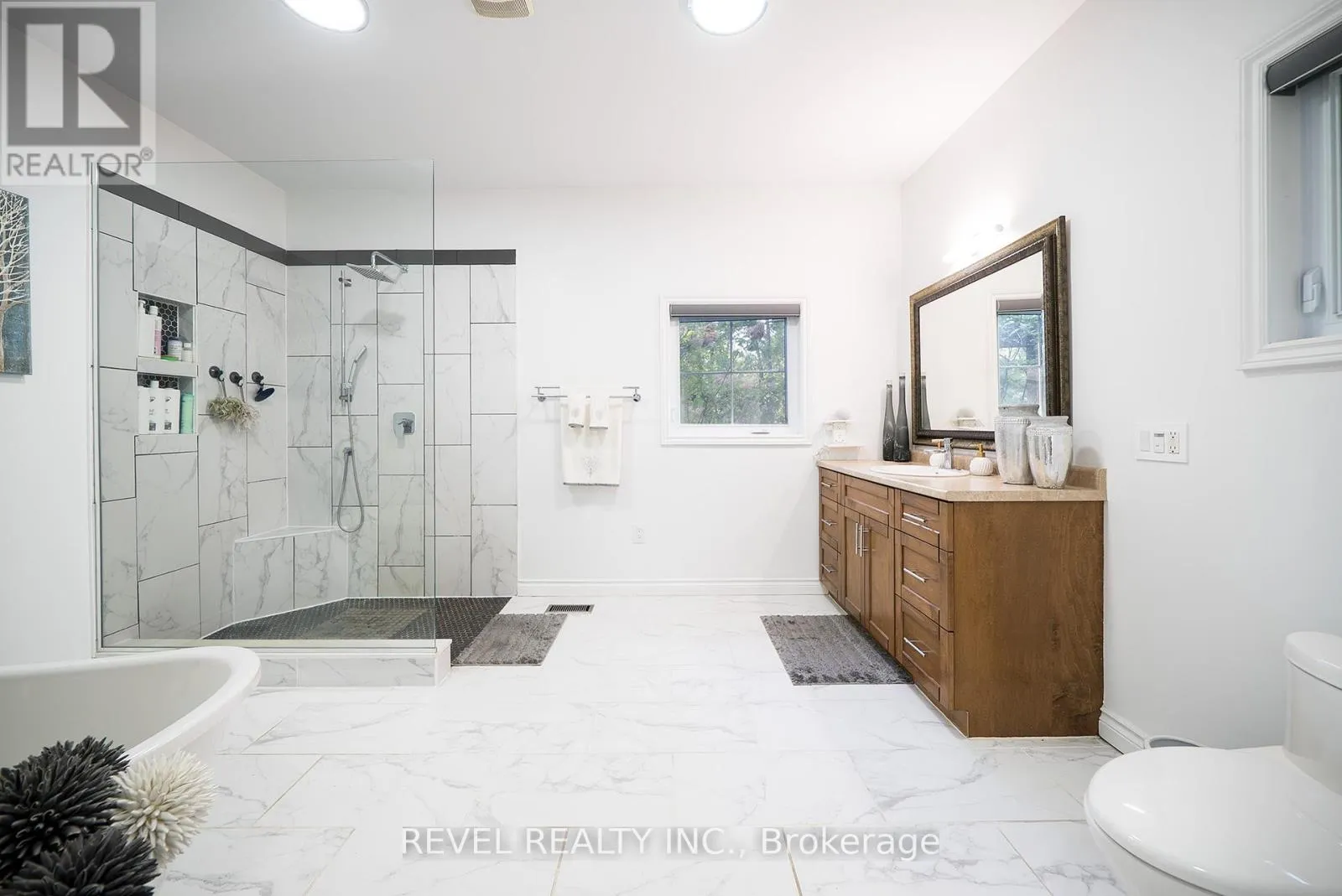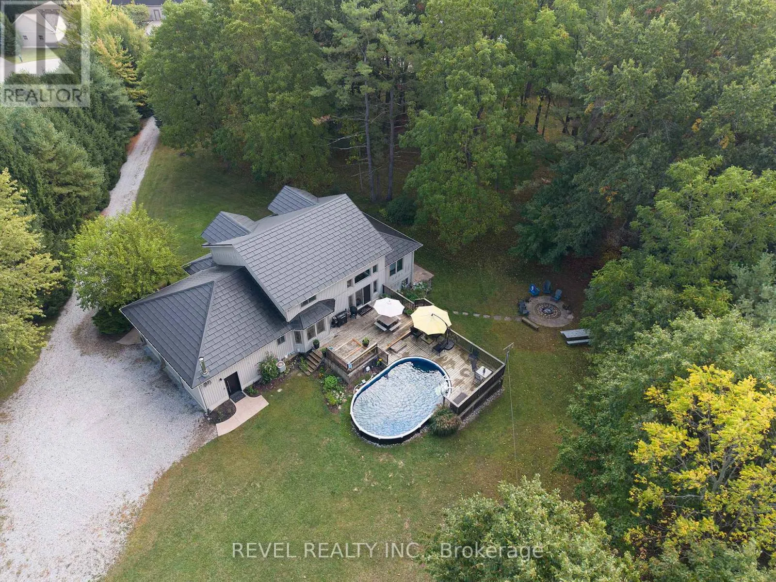 Cross Streets: Vienna Rd & Michael's Lane. ** Directions: Vienna Road to Michael's Lane. Welcome to your private country retreat at 9 Michael's Lane. Set on a beautifully landscaped 1.39-acre lot, this exceptional home offers over 3,300 sq. ft. of finished living space, blending modern updates with the serenity of a true outdoor oasis. Thoughtfully renovated from 2022-2025, the home features a bright and functional main floor with a spacious kitchen, dining area, and stunning great room highlighted by soaring ceilings and wood beams. The main level includes a spacious primary bedroom with a 5-piece ensuite, plus a second bedroom and a convenient 2-piece bathroom-ideal for guests or a home office. A large mudroom and main-floor laundry add everyday practicality.Upstairs, you'll find three additional bedrooms and a full 4-piece bathroom, offering plenty of space for a growing family or visiting guests. The finished lower level add seven more versatility with a gym, sitting room, and den-perfect for work-from-home space, hobbies, or cozy movie nights.Step outside and experience your own private backyard oasis, complete with a heated on-ground pool, new liner and salt cell, extensive landscaping, mature trees, and plenty of space to relax or entertain in total privacy. Recent exterior upgrades include a metal roof, new pool heater, exterior lighting, and enhanced curb appeal with newly planted trees and gardens.With extensive updates throughout - including bathrooms, flooring, lighting, windows and doors, custom closets, and high-end finishes - this move-in-ready property offers the perfect blend of comfort, style, and outdoor living. A rare opportunity to enjoy country privacy without sacrificing space, quality, or modern convenience. (id:27476)