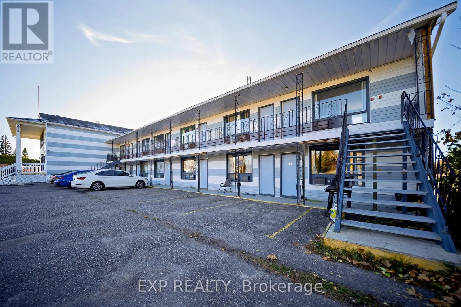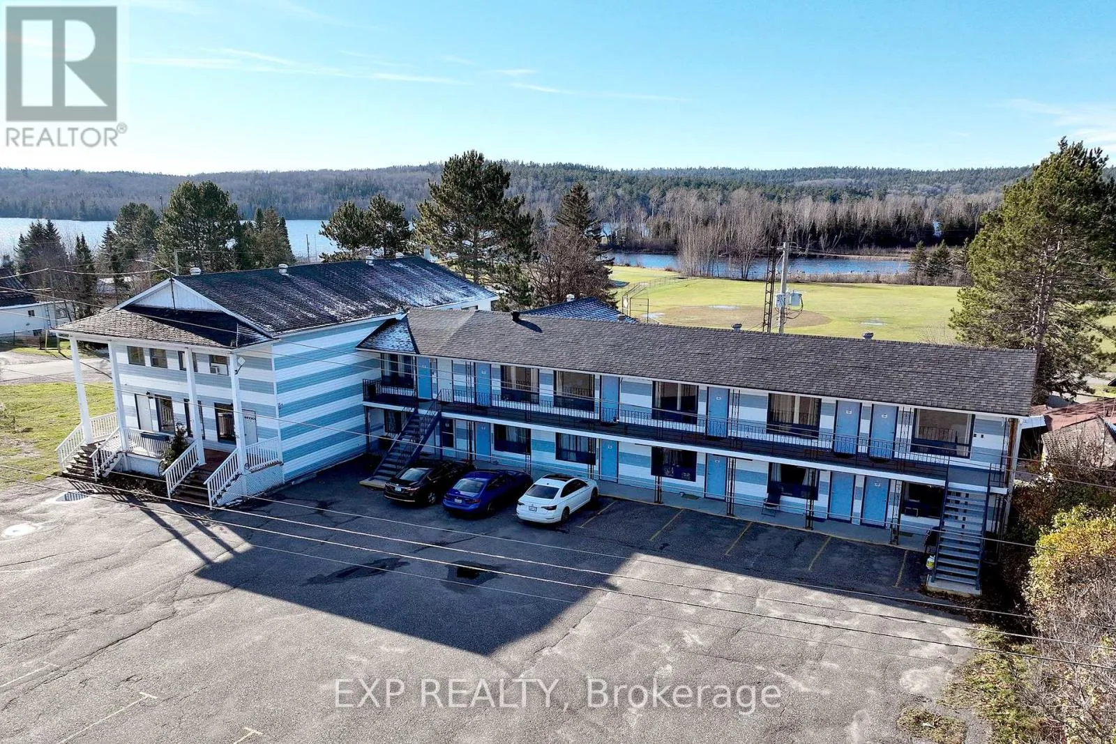 Highway 11/Bradley Ave Featuring a motel situated in a location like no other. Located in the heart of fishing, hunting and year round tourism. This prime location fronting on highway 11 comes with multiple business expansion opportunities. Excellent opportunity for a buyer looking to improve or expand an existing business. The motel features 18 rooms with 2 separate apartments(2 bedrooms & 3 Bedrooms) one of which can be an owners suite. Daily room rents range from $100 to $145/night. 2 min walk to Bay Lake which offers a great fishing experience, children's play area & BBQ pits close by. Area offers year round activities like fishing, hunting and snowmobile trail in the area which generates year round business. The Motel is about 1.5 km from Burns Hiking Trail and 10 min drive from Town of Cobalt known for its silver mines featuring various summer attractions. Timiskaming Nordic Ski Club is 10 km away. **EXTRAS** Existing cafe can be converted to a restaurant. Extra Lot behind the motel included in the purchase price and can be used to expand the motel or create additional amenities for the motel. (id:27476)