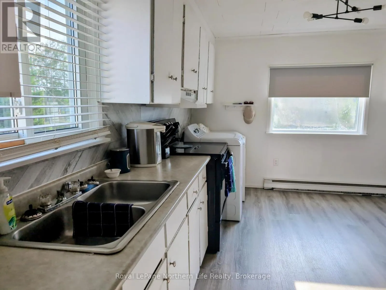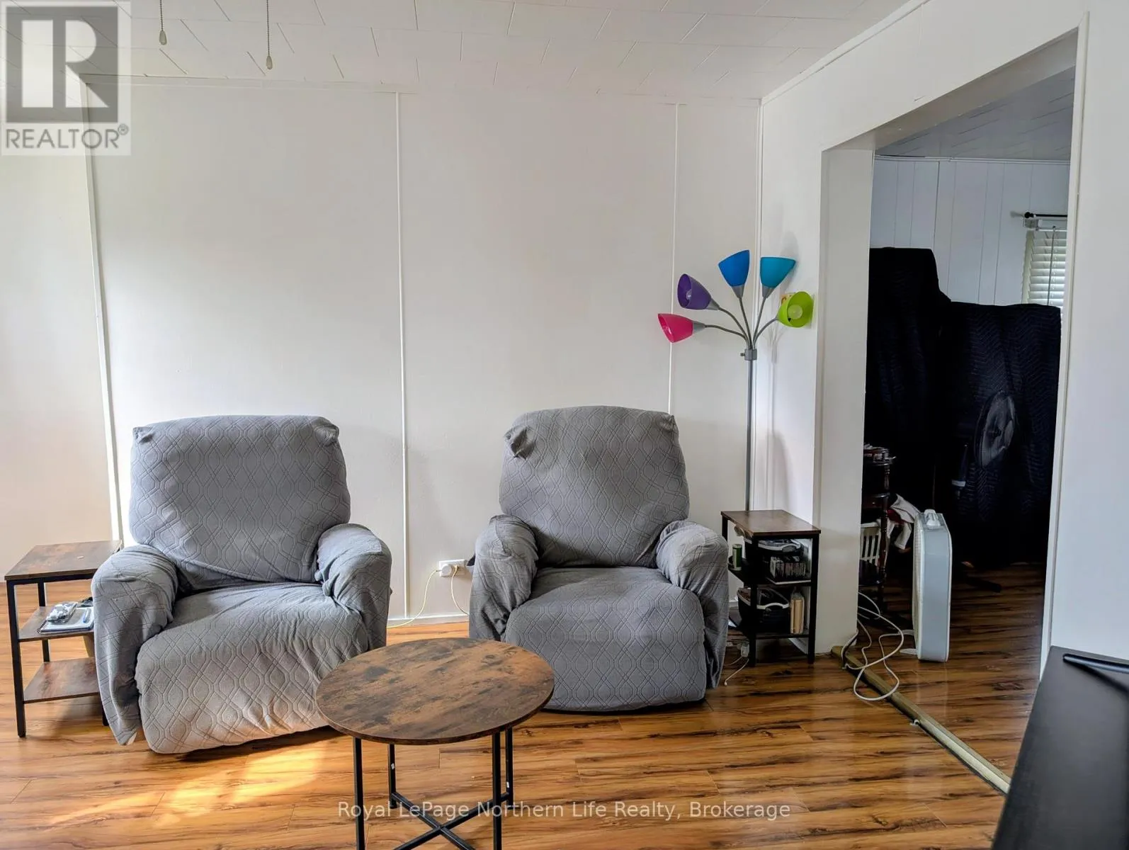 Cross Streets: HWY 11 & Sullivan. ** Directions: On Hwy 11 between Mowat and Sullivan. Driveway access via rear laneway. Looking for an affordable starter home or an opportunity to downsize with close access to Bay Lake? Don't miss a great opportunity to join the charming community of Latchford, with close access to fishing, endless hiking, ATV and snowmobile trails, and a variety of surrounding nearby lakes to explore. This 3 bedroom home has recent updates and offers a flexible main floor living space, with a large kitchen, main floor laundry, and large living area that can be easily partially converted into a permanent primary bedroom on the main floor, or remain as a very spacious living area. Upstairs, three bedrooms provide enough room for a growing family or a great space to work on your hobbies. Outside, a large driveway offers room for your RV, boat or ATV, or all three! The 12x14 workshop has plenty of room for your tools and ATV, with an additional 10x10 wood shed and small utility shed, and a fenced dog run is also included. Recent updates include new LVP flooring in 2025 in kitchen and second floor, new asphalt shingles in 2023. (id:27476)