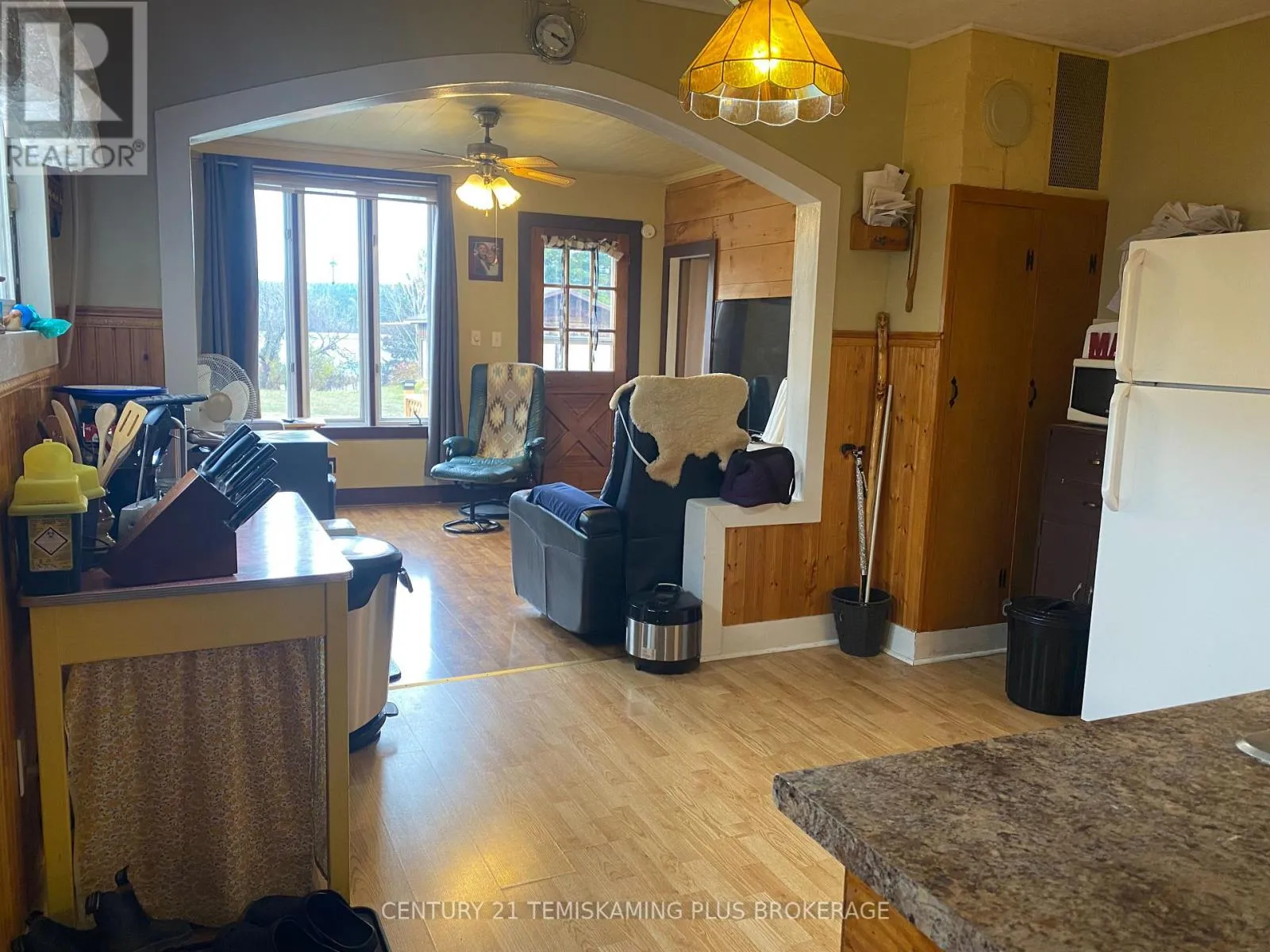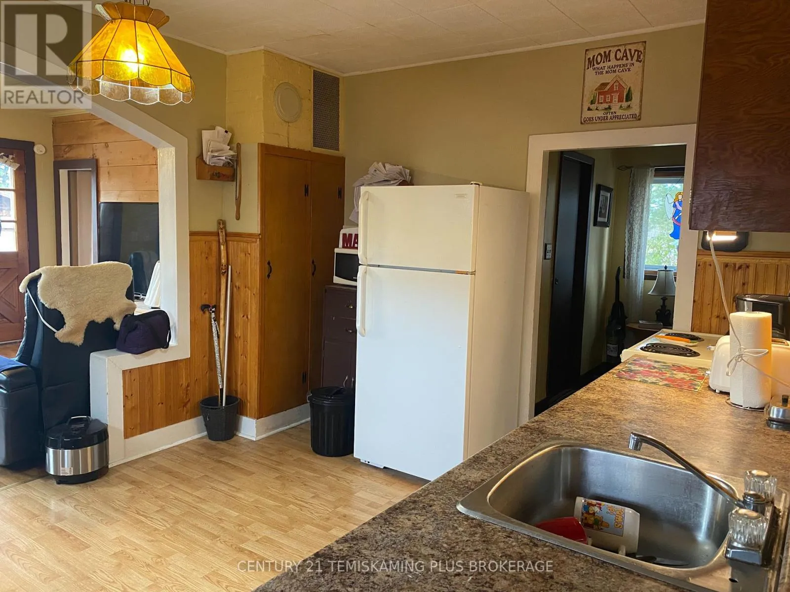 Cross Streets: Hwy 11. ** Directions: Hwy 11 to Latchford West side to King St. Charming Bungalow on Corner Lot - Steps to the Beach & Bay Lake. Welcome to this comfortable and well-maintained bungalow located on a spacious corner lot in Latchford, just a short walk to the beach and beautiful Bay Lake/Montreal River. The home features an open-concept kitchen and living room, a versatile formal dining room that could serve as an additional bedroom, and two cozy bedrooms with one full bath. The partial basement includes laundry facilities, furnace, 4 stage heat pump and utilities, while the remainder of the home sits on a crawl space for easy access. Enjoy the insulated side porch and the 8' x 16' front deck-perfect for relaxing outdoors. Additional highlights include a 16' x 20' detached garage (insulated and wired), propane furnace (2014), roof shingles (2014), and propane hot water on demand. A great opportunity for year-round living or a weekend retreat near the water!hydro monthly average $150. Propane yearly average $350. Pellet stove $500 per year (id:27476)