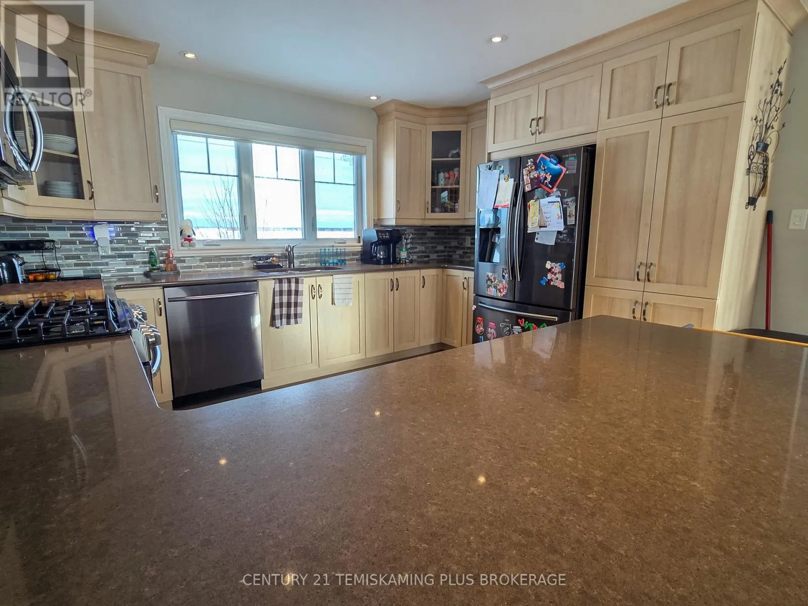 Cross Streets: Belle Vallee Rd & St. Joseph Blvd. ** Directions: Heading Northbound on Hwy 11 turn right onto Belle Vallee Rd continue into Belle Vallee turn right onto St. Joseph Blvd. Beautiful 2+2 Bedroom Home on the Blanche River in Belle Vallée! Welcome to this stunning waterfront home offering a perfect blend of comfort, style, and functionality. The spacious open-concept main floor features a bright living room, modern kitchen, and dining area with patio doors leading to an expansive back deck-ideal for entertaining family and friends or simply enjoying peaceful river views. Down the hall, you'll find a well-appointed 4-piece bathroom with convenient main-floor laundry, along with two generous bedrooms. The primary bedroom includes a walk-in closet and a private 3-piece ensuite. The fully finished basement offers even more living space with two additional large bedrooms, a half bathroom, a spacious recreation room, and plenty of storage. Step outside to enjoy a beautifully landscaped, fully fenced backyard, a double attached garage, storage shed, and ample parking space. Whether you're relaxing on the deck or casting a line into the Blanche River, this property offers the perfect Northern Ontario lifestyle. (id:27476)