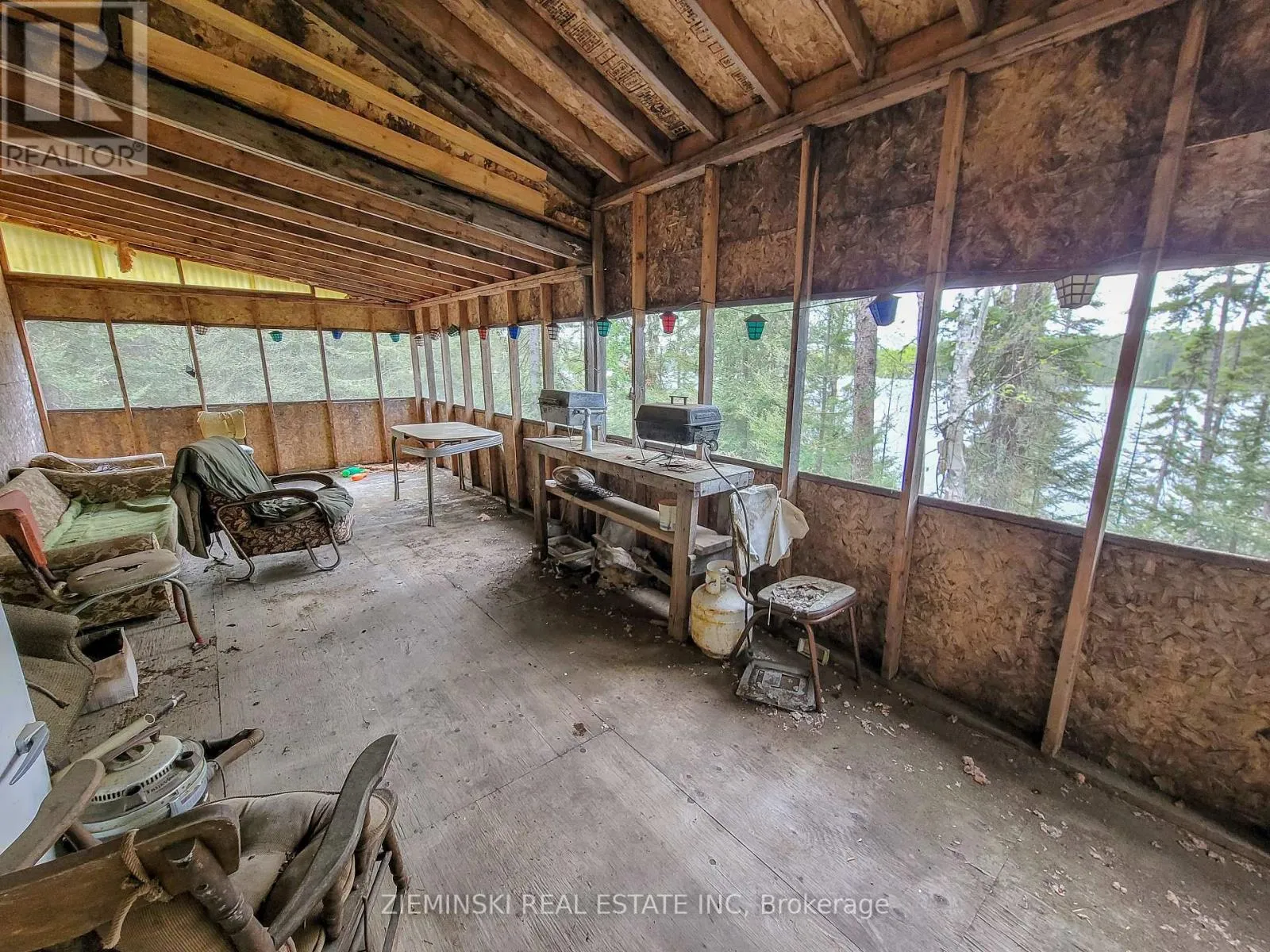 Cross Streets: Hwy 566. ** Directions: Water Access Only. See Listing Salesperson. An Unorganized Cottage Escape! This charming lake access cottage offers the perfect retreat for nature lovers and families alike. Accessible by Mistinikon Lake, this cottage sits on a 1-acre lot and features three bedrooms and a roughed-in 2-piece bathroom (sink and tub). It has a tin roof, wood stove for heating, and is insulated throughout the main living areas. The screened-in porch offers a bug-free space ideal for summer evenings or potential expansion. A generator hookup ensures reliable power in this remote location. Combining practical amenities with rustic features, this cottage is suitable for seasonal use with potential to upgrade. Note that there is no septic system or well on site. (id:27476)