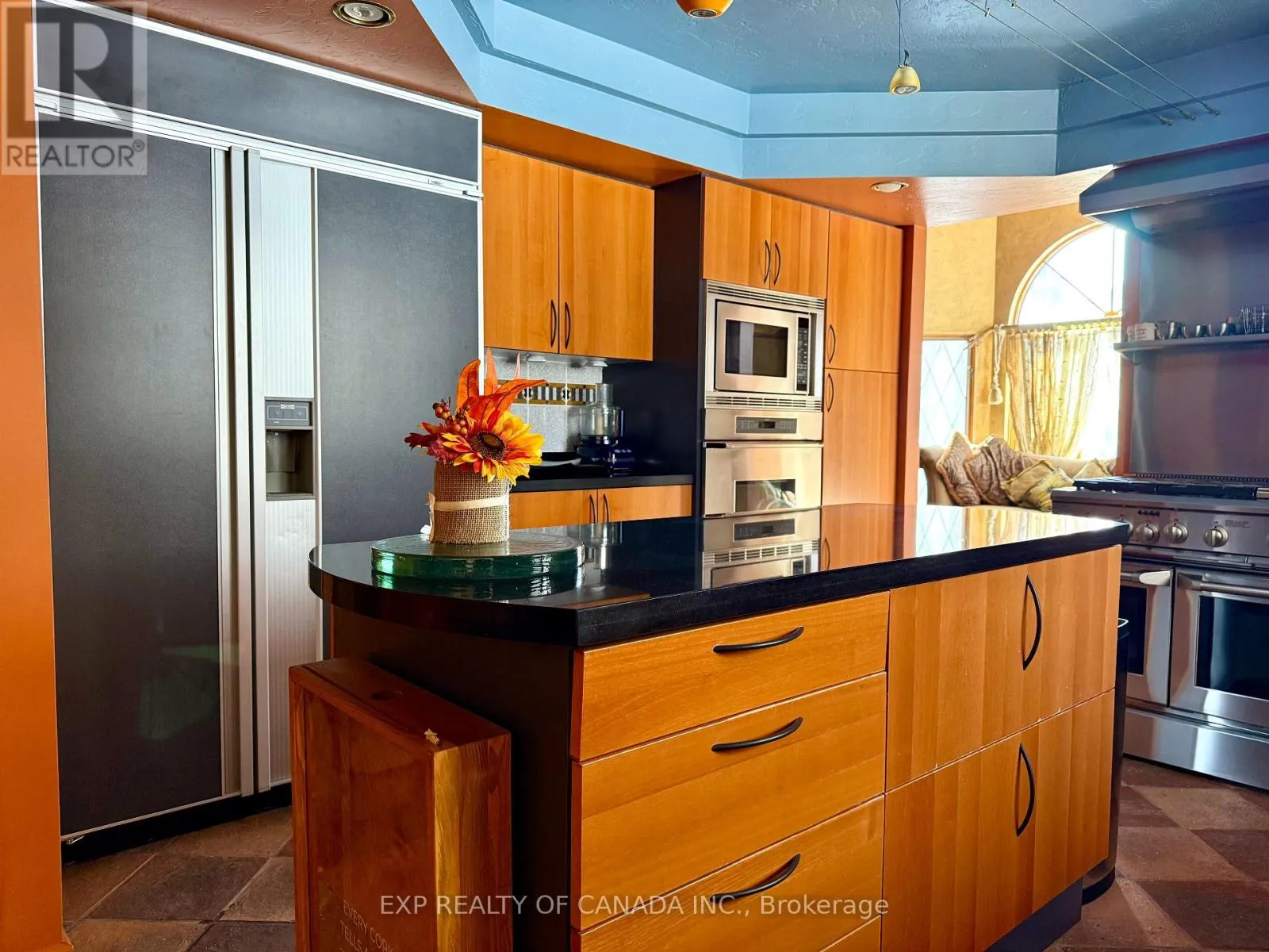 Cross Streets: Pearl. ** Directions: Off of Vimy to Cameron N. Nestled in a tranquil and esteemed neighborhood since 1989, this unique, tastefully decorated 6 bedroom estate boasts cathedral ceilings that create a high, open and grand feel. There is an expansive basement with a fully-equipped kitchen that can accommodate extended family. Indulge your dinner party guests with an exclusive wine selection from your private cellar, conveniently located in the basement. The property also features a spacious three car garage, perfect for car enthusiasts . Situated on a vast and private lot, this home offers ample outdoor space for entertainment or relaxation. Furthermore, it's prime location within walking distance to first-rate schools makes it an ideal choice for families seeking convenience and academic excellence. Built with exceptional quality and attention to detail, this residence showcases superior craftsmanship and premium materials throughout. With its unique blend of luxury, space and accessibility, this extraordinary property is truly a RARE find! (id:27476)