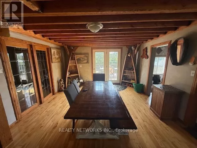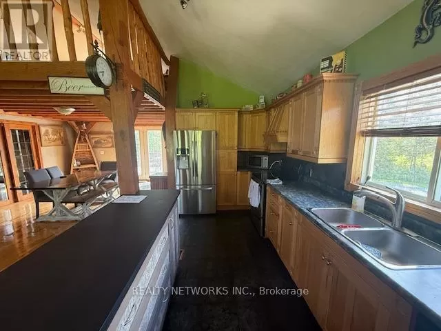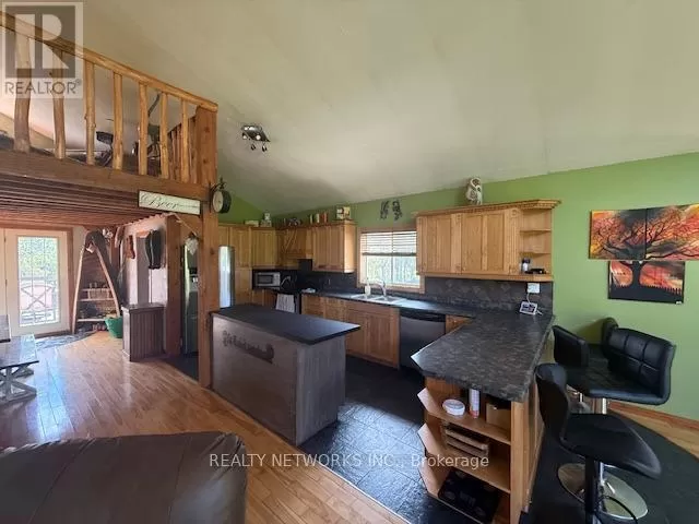 Cross Streets: Garden road. ** Directions: Off Garden. Come have a look at this rare opportunity to own a home on the Mattagami River. This three-bedroom residence showcases an open-concept design with soaring cathedral ceilings and a spacious loft-style master bedroom. A thoughtfully designed addition, completed in 2000, expands the living space while preserving the homes original charm. The property also features a detached heated garage measuring 22x27 feet, perfect for year-round use. At the waters edge, you can relax in your private sauna and enjoy the peaceful, natural setting of the riverfront.Mpac code 301, Hydro 120 per month, gas 1000 per year, water-sewer 0 (id:27476)