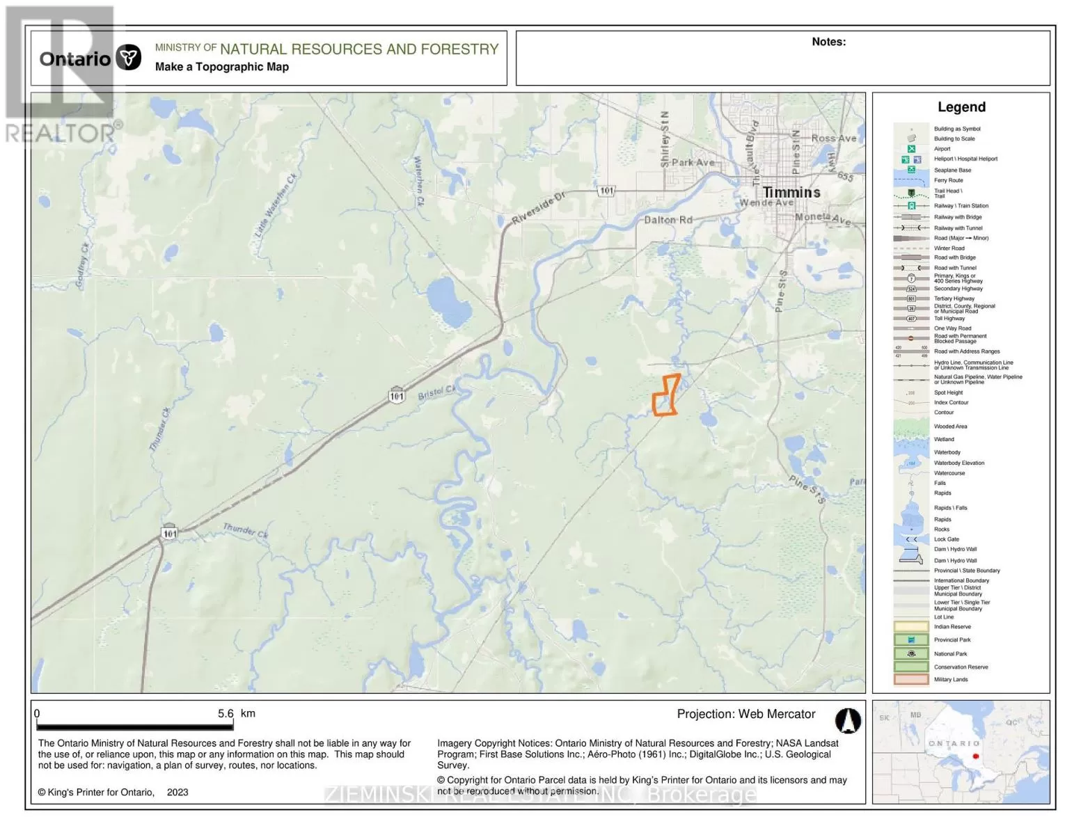 Heading south on pine St., turn right 2 km after the trailer park. Drive 2km turn right on power line, approx. 2 km on power line property begins This GORGEOUS hunk of northern freedom will make it feel like you're in the middle of nowhere while being close enough that civilization and all your shopping needs are just minutes away. YOUR PERFECT 103 ACRE GET-AWAY, with beautiful Mountjoy River running through, you can choose to HUNT or FISH without leaving your own land! ONLY 5 KM to the city with 3-season road access. Located in Ogden twp., an ORGANIZED TOWNSHIP within the City of Timmins boundary. The lay of the land is flat throughout, with a higher section in the southerly portion lots of Crown to the North, South and a small piece to the West. Property comes with SURFACE and TIMBER rights only. (id:27476)