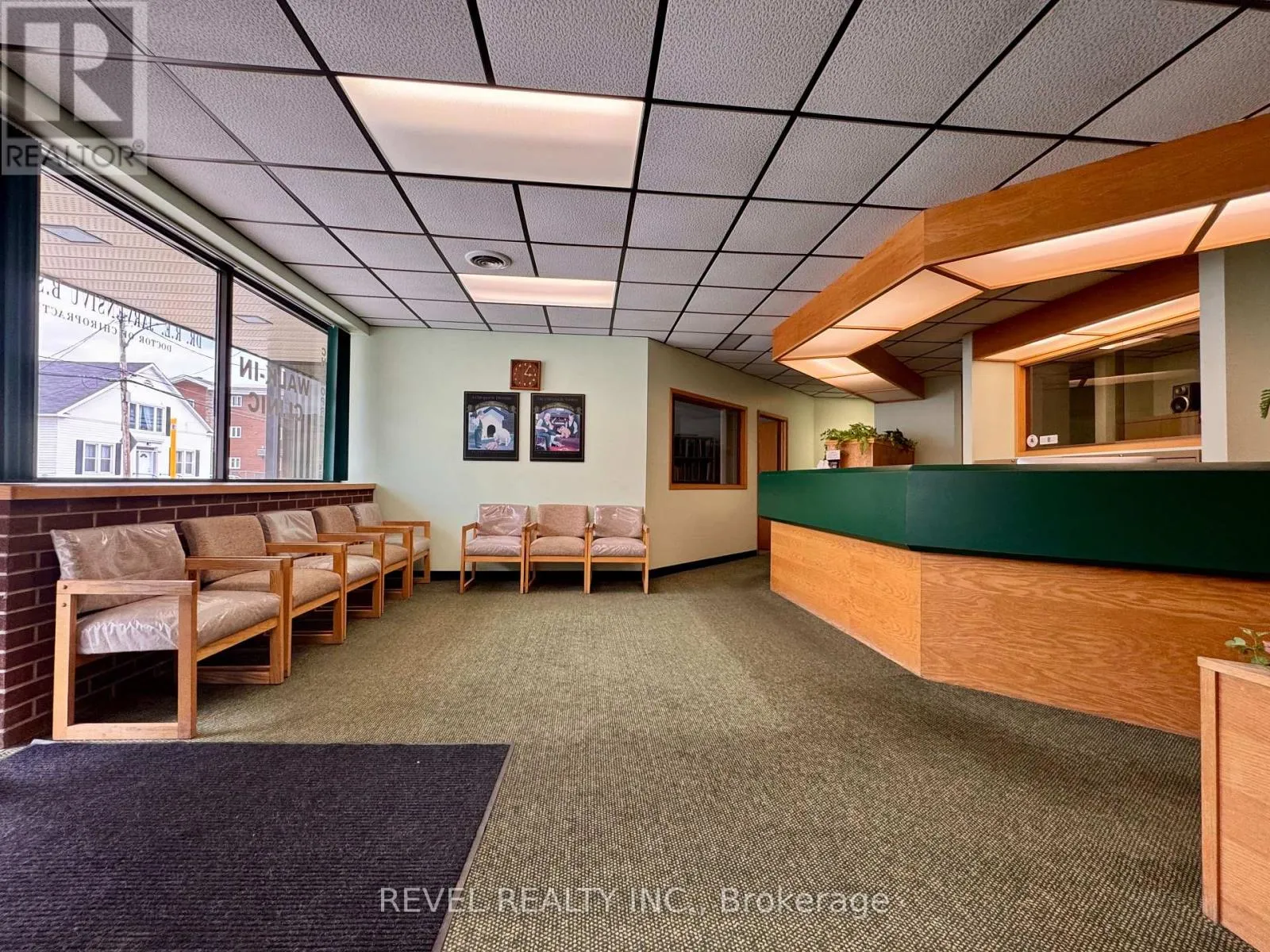 Cross Streets: Crawford St/Main St. ** Directions: Between Crawford St and Main St. This solid brick commercial building offers an excellent opportunity for professionals looking to establish or expand their practice in a high-demand area. Previously used as a chiropractic office, the space features a smart and functional layout designed for productivity and client comfort. Inside, you will find four treatment rooms, two offices, three storage rooms, and a convenient two-piece bathroom. At the heart of the space is a beautifully crafted solid oak reception area that adds warmth, character, and a professional touch. The welcoming entrance flows into a bright and comfortable waiting area, creating a strong first impression for clients and patients alike. The layout is both practical and efficient, making it ideal for a variety of professional uses such as healthcare, wellness, or administrative services. A new membrane roof was installed in 2015, and the furnace and air conditioning were updated in 2020, offering peace of mind and long-term value. Located in the sought-after community of South Porcupine, this property combines visibility, accessibility, and long-lasting construction - perfect for your next business venture. (id:27476)