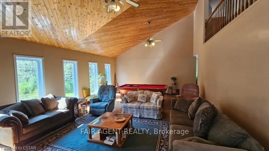 Mclean Drive / Laforest Rd Set on 9.36 acres just 10 minutes from Timmins, this private country property offers space, functionality, and flexibility in a peaceful, well-treed setting. The home is positioned back from the highway and screened by mature trees, creating a quiet environment where you can enjoy fresh air, wildlife, and open land without sacrificing proximity to town. Offering over 2,100 sq ft of living space, the home features a practical open concept layout. The main floor includes a large, functional kitchen, a dedicated office, and a bright living room with a cathedral ceiling and generous natural light. Upstairs, you'll find three spacious bedrooms, which can easily accommodate king size beds. The house has 2 large decks, a screened-in sunroom on the west side with patio doors which leads into a fenced in area, and an open deck on the south providing a comfortable place to relax outdoors. There is also a generous perennial garden space for those who enjoy growing their own flowers or produce. Constructed with R20 insulation and 6-inch exterior walls, the home was designed with passive solar principles to support energy efficiency. Triple glazed windows were replaced in 2019. Heating is provided by a Payne 96% high-efficiency gas furnace (2013) with programmable thermostat, along with a Venmar air exchanger. The property includes 200 amp electrical service, a spring- fed aquifer supplying drinking water, and a septic system pumped every 3-4 years. Possibilities are endless for the new owner as they can build a large garage and other homes or structures with city approval. (id:27476)