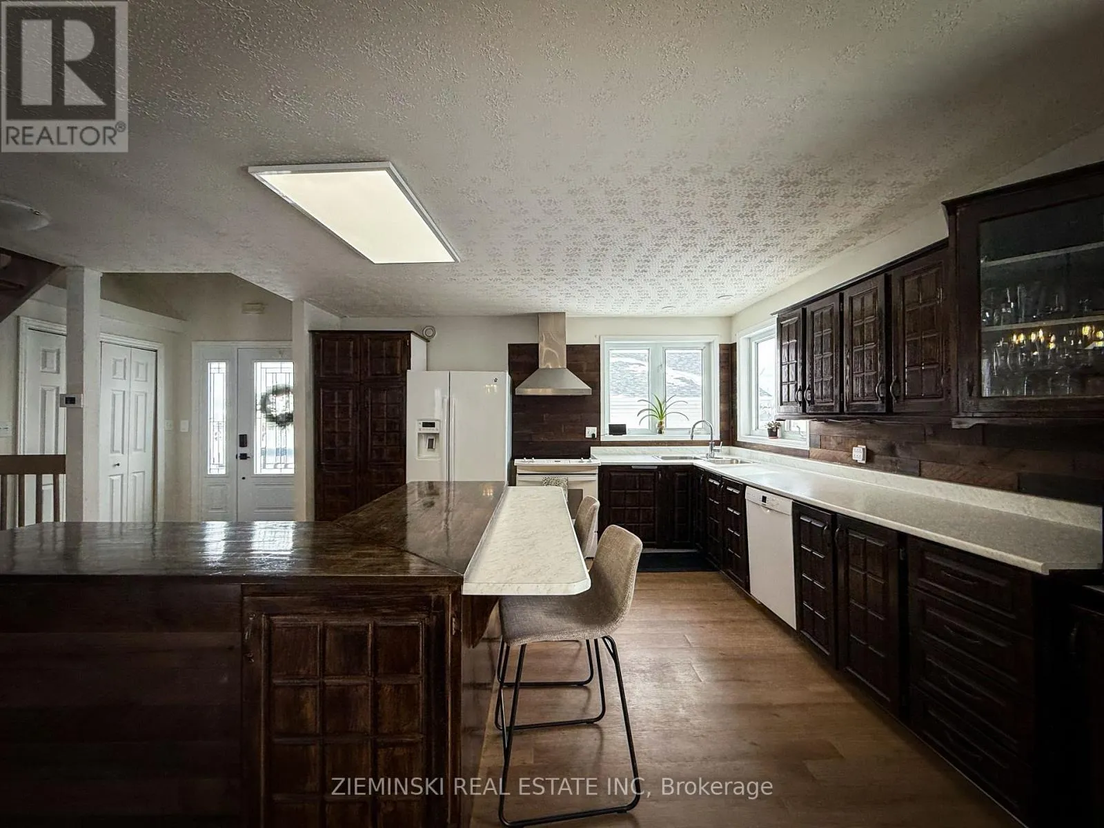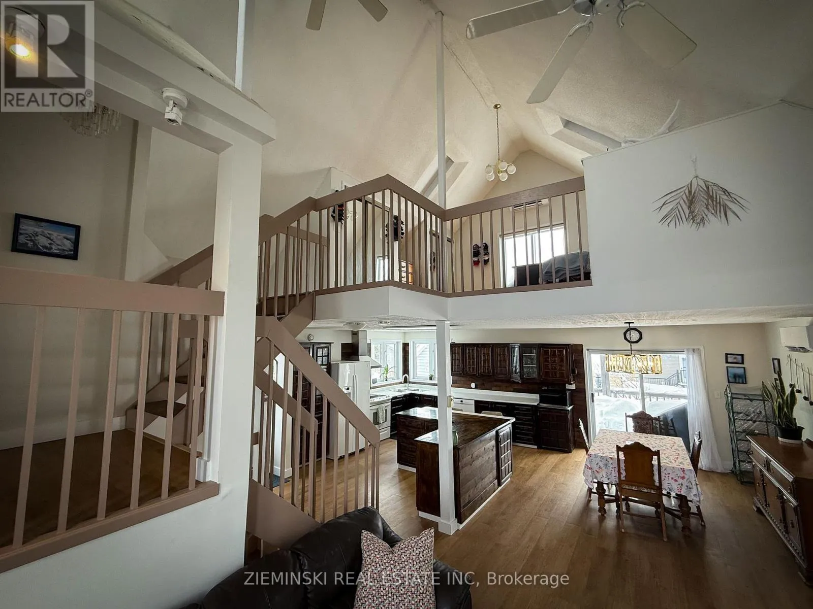 Cross Streets: Park Ave & Shirley Street. ** Directions: Take Park Ave From Shirley street. Beautiful 3-bedroom home in a great location! This property offers plenty of parking with a large interlocking brick driveway and a 26' x 15' detached garage with additional storage above. Enjoy the fully fenced backyard with a spacious deck, perfect for relaxing or entertaining. Inside, the bright main floor features a large kitchen with ample cupboard and counter space, open to the dining and living areas, with cathedral ceilings adding to the home's charm. The upper-level loft offers flexible space for a potential fourth bedroom, office, or family room. The basement includes three generously sized bedrooms and a 3-piece bathroom. Updates include roof (2022), three heat pump heads (2025), and front door, eavestroughs, kitchen sink, and countertops (2024). (id:27476)
