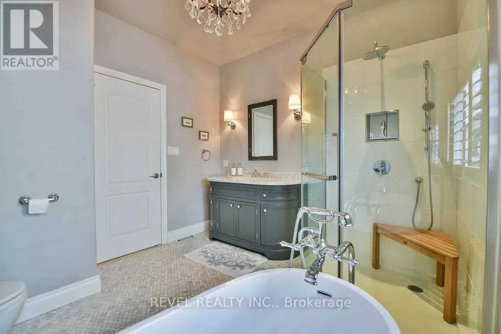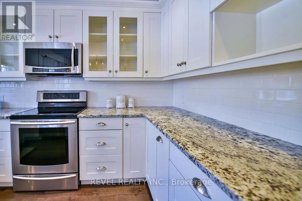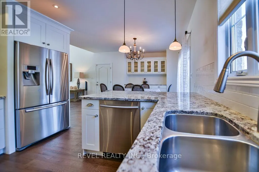Cross Streets: McBride ST and Riverside DR. ** Directions: Corner of Majestic BLVD and Bonaventure DR. Pristine all stone bungalow in an upscale location offering over 1,400 sq ft of beautifully finished living space. This 2 bedroom, 2 bath home features a bright living room with soaring 14' ceilings and impressive gas fireplace, hardwood and ceramic flooring throughout the main level, a spacious foyer, and a stunning kitchen with granite countertops. The primary bedroom boasts vaulted ceilings, while the convenience of main floor laundry adds to the home's functionality. Enjoy year-round comfort with zoned gas forced air heating and central air. The fully finished basement includes a massive rec room with rough-in for a wet bar, office, bonus room, and ample storage. Outside, the double interlock driveway offers parking for up to 6 vehicles and the brick walkway extends to the backyard patio and 16'X40' composite deck, perfect for entertaining. The attached garage provides access from the exterior, main floor, and basement. Includes all appliances and high end furniture, truly move in ready! (id:27476)