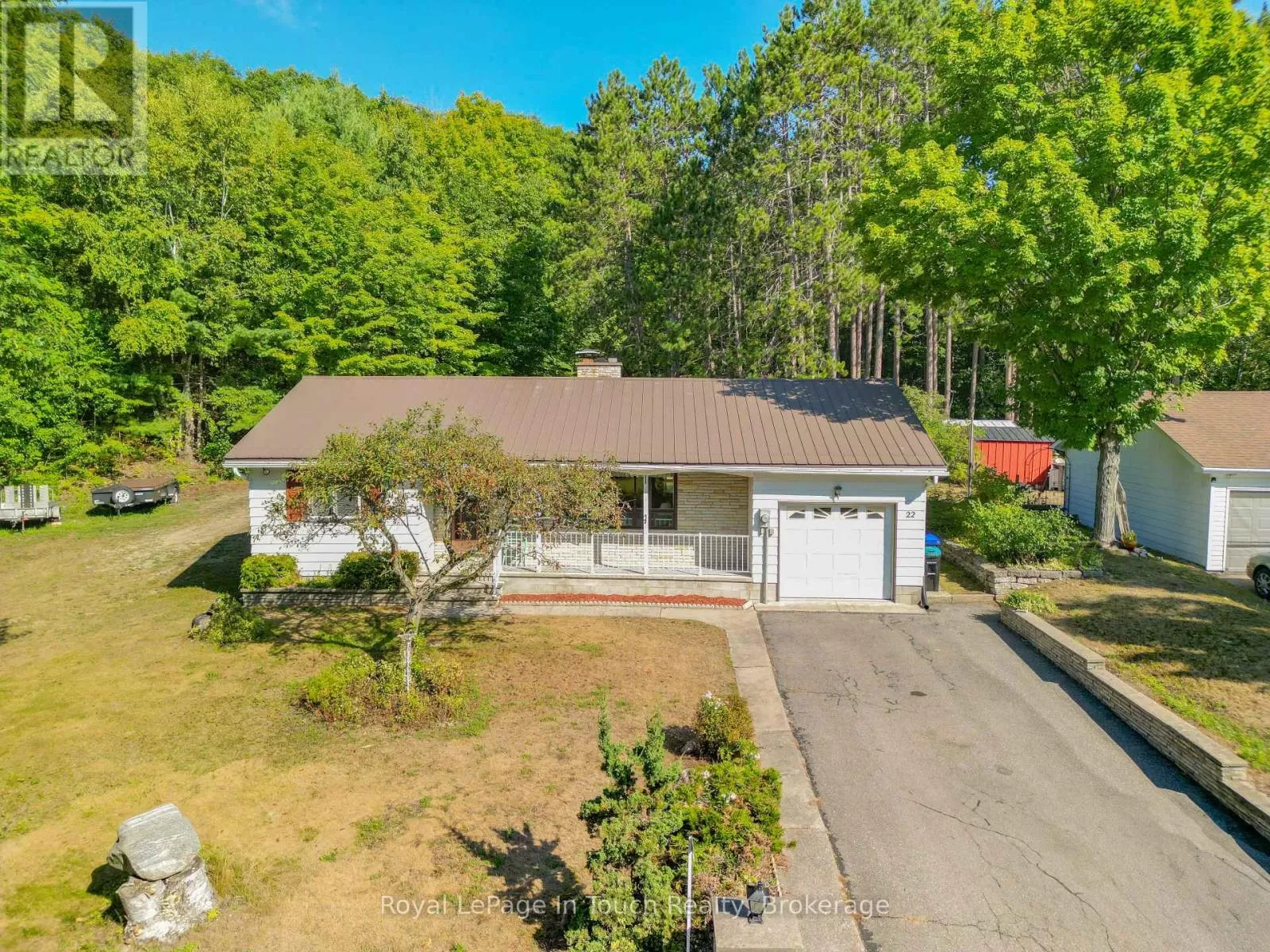 Cross Streets: Champlain road and Glendale. ** Directions: Champlain road to Glendale. "Welcome to 22 Glendale Road, Tiny Township. Escape to your own private retreat on 10 acres of hardwood forest, where the trails invite you to explore by foot, ATV or snowmoblie. This serene property is just steps from the sparkling Georgian Bay and minutes from the charming town of Penetanguishene, offering the perfect blend of rural tranquility and convenient access to local amenities. Inside, discover a welcoming 3-bedroom home designed for comfortable living and easy entertaining. The home is complemented by two spacious outbuildings, providing ample space for storage, workshops, or hobbies. A highlight of the property is your very own fishing pond, offering a peaceful spot to unwind and enjoy nature at its best. (id:27476)