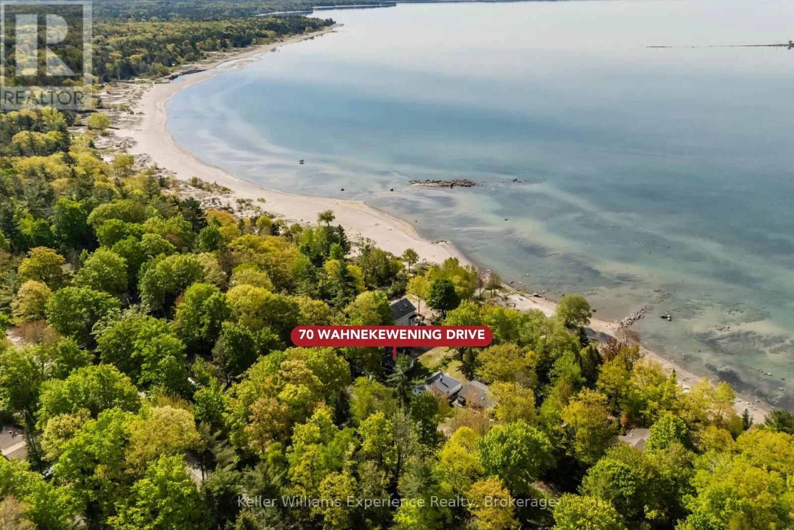 Cross Streets: Concession rd 13 west. ** Directions: Hwy 93 to to Balm Beach Rd, R on County Rd 6N, Lon Concession 13W, R on Wahnekewening Dr. Rare South-Facing Waterfront Gem on Iconic Wahnekewening Beach. Welcome to a once-in-a-lifetime opportunity to cherish a piece of Georgian Bay's shoreline. Nestled on the exclusive and highly sought-after Wahnekewening Beach, this south-facing waterfront property offers 50 feet of pristine, sandy frontage with an exceptionally deep lot an ideal canvas for lakeside living. Positioned to capture both breathtaking sunrises and unforgettable sunsets, the southern exposure is among the most desirable orientations on the bay, offering all-day sunlight and warm, golden light filtering through every room. Whether you're sipping coffee at dawn or enjoying a twilight bonfire, this home invites you to embrace natures rhythm. Originally built in the 1940s and lovingly held in the same family for generations, this property is steeped in history. Like many on this stretch of beach, its part of an if you know, you know legacy rarely available and always treasured. Homes here are often passed down, not sold making this a truly rare find. The existing home features a solid poured concrete foundation, a newer well for reliable water supply, and a cozy gas fireplace to warm cool evenings. Whether you choose to refurbish the current structure or build your dream beach house, the possibilities are endless. This is your chance to create a private family retreat or year-round paradise in one of the region's most tightly held communities. Tucked away near the end of a quiet dead-end road, privacy and tranquility are naturally built into the landscape. Let the gentle waves be your soundtrack, the sand your backyard, and the views your ever-changing artwork. (id:27476)