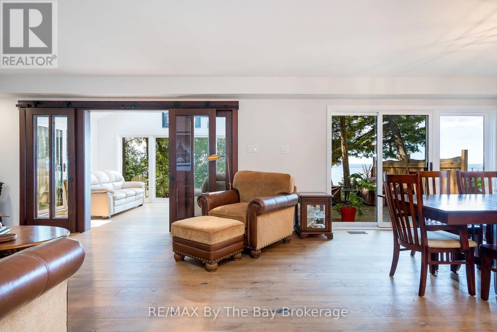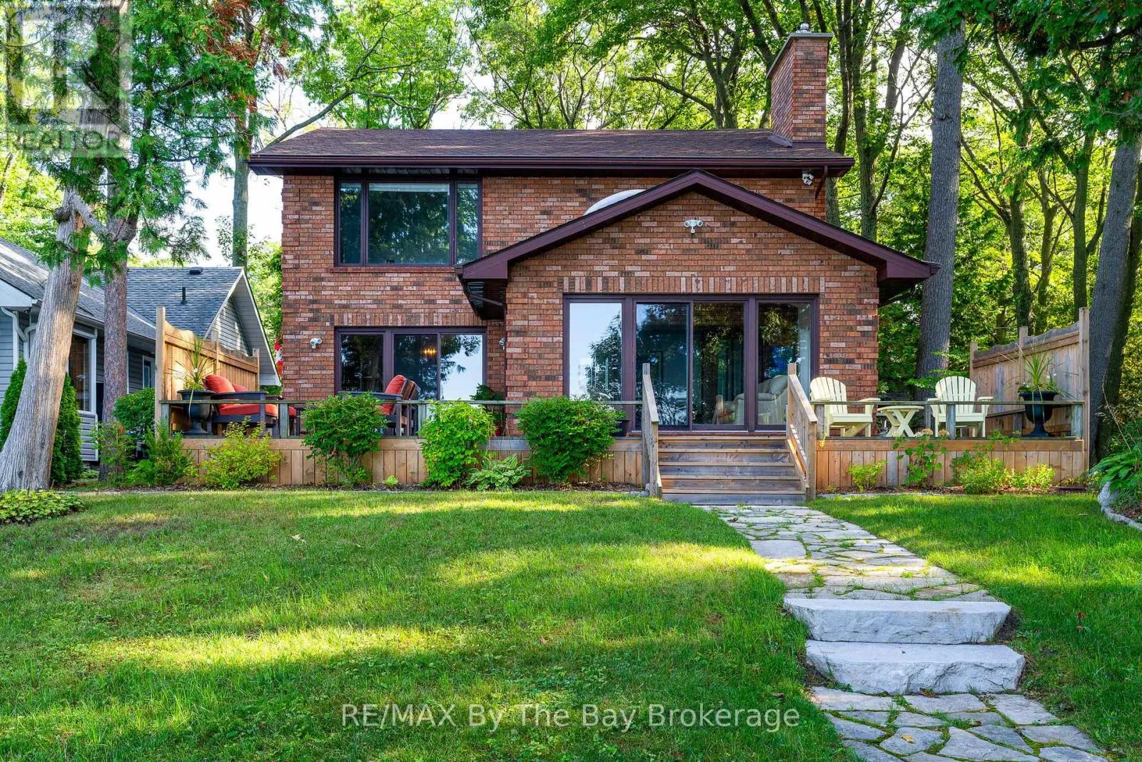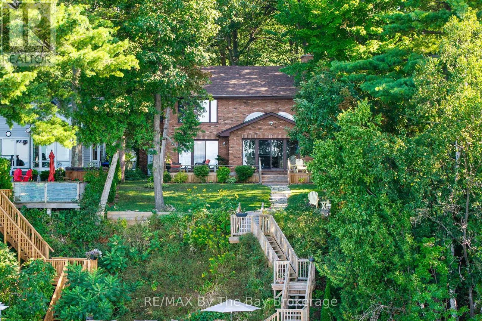 Cross Streets: Tiny Beaches Rd South & Spruce Street. ** Directions: Tiny Beaches Road South to Willow Drive. Perched majestically on the stunning shores of Georgian Bay this unique 4+ bedroom custom built All Brick home is calling your name. The charming rocky rustic landscape of this special lifestyle property returns the beauty with muskoka-like crystal clear waters, panoramic views across the bay to Blue Mountain and breathtaking sunsets that will mesmerize you from the moment you visit. The cascading multiple decking with direct water access makes this home different than all others and takes you to a playful place of boating, swimming or outdoor entertaining with friends and family meanwhile as you transcend to inside the home it equally matches with its 3,400 sq ft of luxury modern living. The well-designed open concept main floor includes many quality features such as wide-plank oak flooring throughout, main floor bedroom, new upgraded bathroom, expansive panoramic windows from every angle and a stunning chefs kitchen with beautiful custom cabinetry, quartz counter tops, large eat up island for entertaining and an impressive Wolfe range with 4 burners and griddle. Enjoy the dining and living room space with gorgeous views of the blue waters of Georgian Bay along with the bright 4 season sunroom. The quality continues to the second floor with the large primary suite with large windows overlooking the bay with a stunning upgraded 4pc spa-like bath with heated floors and large walk in closet. Additional guest bedrooms and unique space for office/den or art studio. Fully finished lower level adds extra living space for so many options including workshop, gym area and family room. Additional highlights include oversized 2 car garage with inside entry, new garden shed and professionally landscaped grounds. Whether it be year-round living or a dream vacation home this property blends modern luxury with natural beauty and is still within close proximity to all amenities of both Wasaga Beach and Tiny Township. (id:27476)