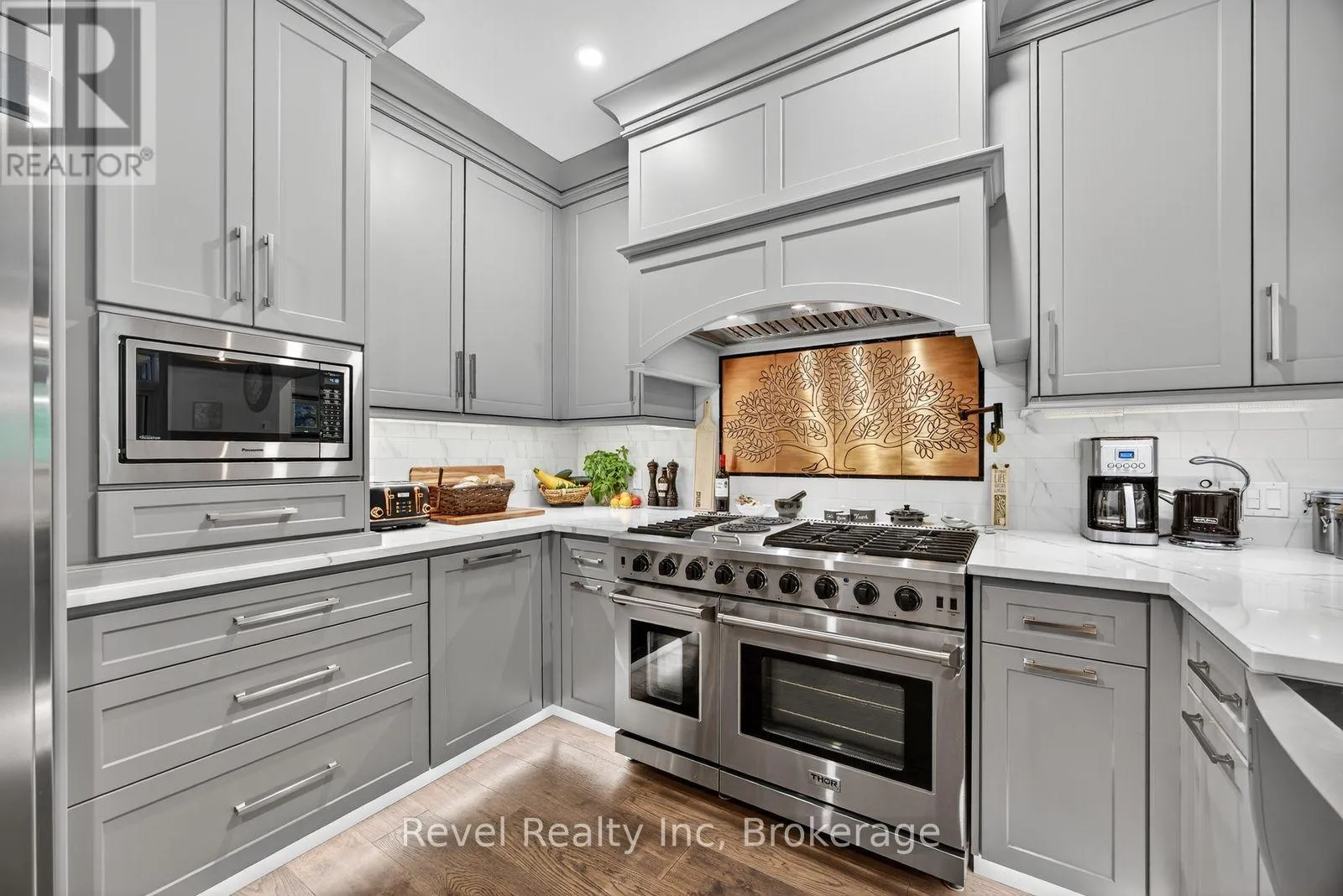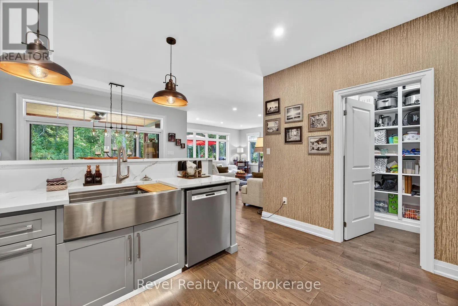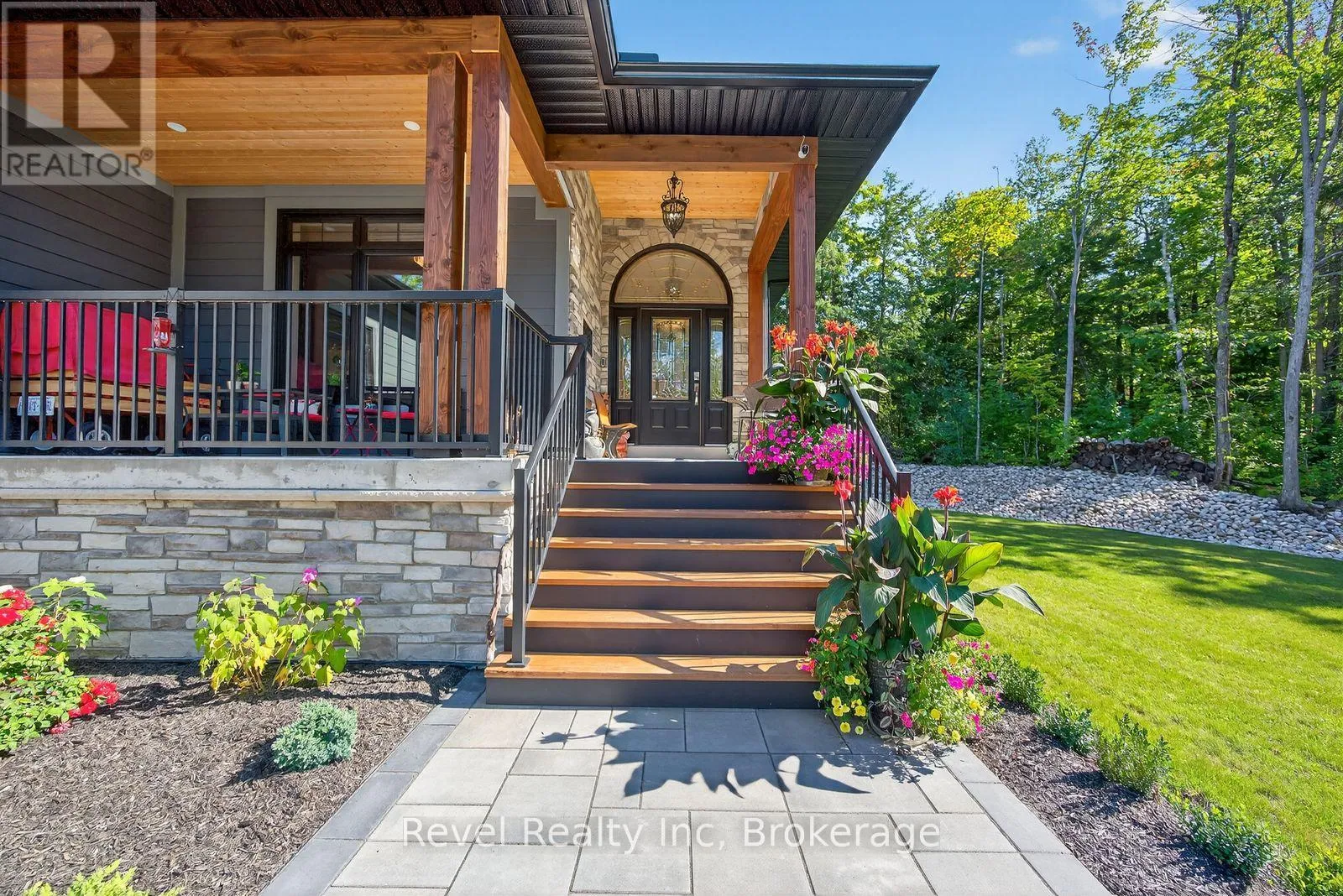 Cross Streets: Chemin du Loup / Silverbirch. ** Directions: County Road 6 to Chemin du Loup to Silverbirch. Luxury Living in Exclusive Thunder Beach! Imagine waking up beneath the serene Nipissing Ridge on 1.7 acres of landscaped privacy, with turquoise waters of Georgian Bay just steps away. This nearly new executive bungalow is a rare opportunity to call one of Georgian Bays most prestigious communities home. Every detail of this residence speaks to quality and craftsmanship. Built with ICF foundation and French drains for lasting comfort and energy efficiency, it also showcases rich hardwood floors, custom cabinetry, and spa-inspired bathrooms. The covered porch welcomes you into an airy, open-concept design where a chefs kitchen, featuring a Thor stove, pot filler, walk-in pantry, and multimedia bar, seamlessly connects to the dining area and covered deck. Every window frames tranquil views of trees, never neighbors. The primary suite offers a walk-in closet and a serene ensuite with an oversized glass shower equipped with multiple showerheads for your private spa retreat. Two additional bedrooms and a second full bath complete the main level. The finished lower level extends the lifestyle: radiant in-floor heating, a custom bar, built-in media surround, and oversized windows create a sophisticated entertaining space. Two more bedrooms, a full bathroom, and a walk-up to the heated garage ensure versatility perfect for an in-law suite. Beyond the home, the Thunder Beach lifestyle awaits. Ownership here means more than just a property its belonging to a community. Enjoy access to tennis courts, a private golf club, and a vibrant social scene that has defined this enclave for generations. And as the day closes, watch the horizon light up with sunsets that paint the sky in breathtaking shades of pink and gold. This is not just a home. It is an invitation to live exceptionally where luxury, lifestyle, and Georgian Bays natural beauty come together in perfect harmony. (id:27476)