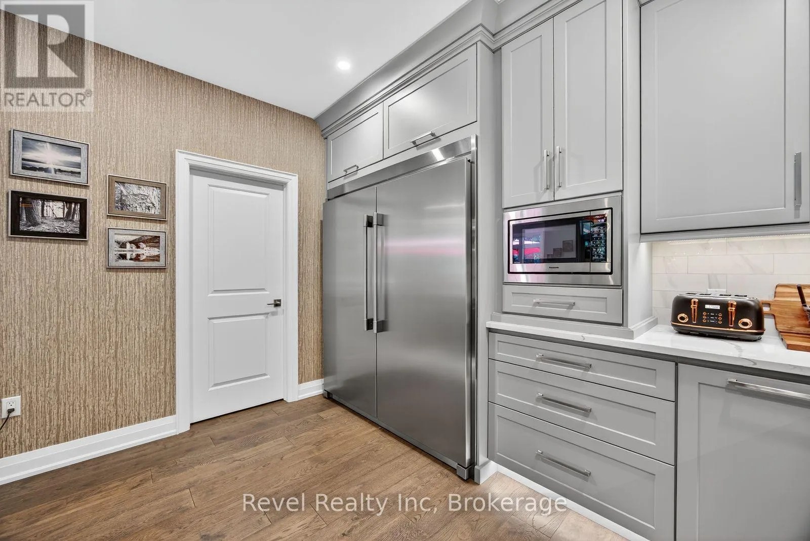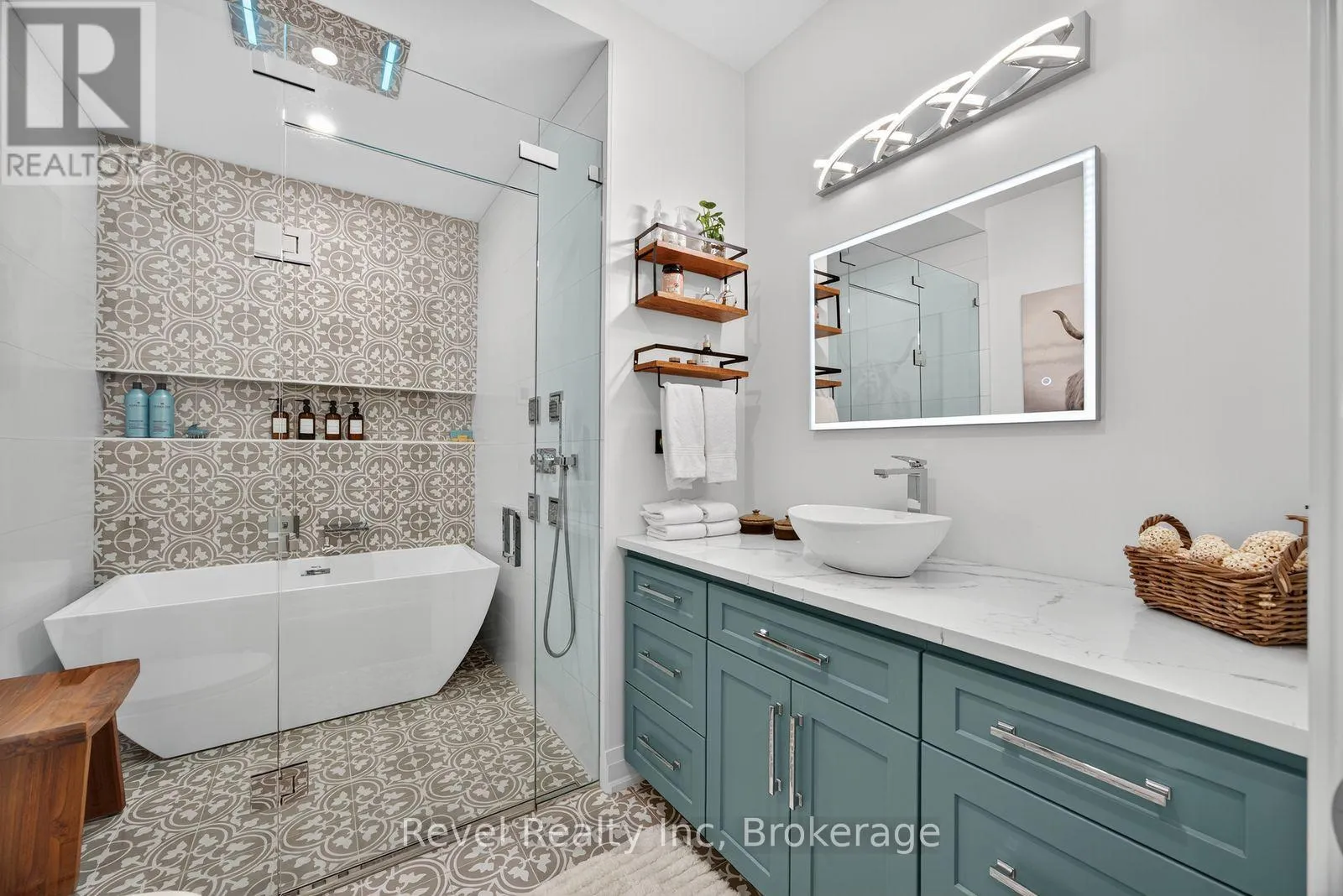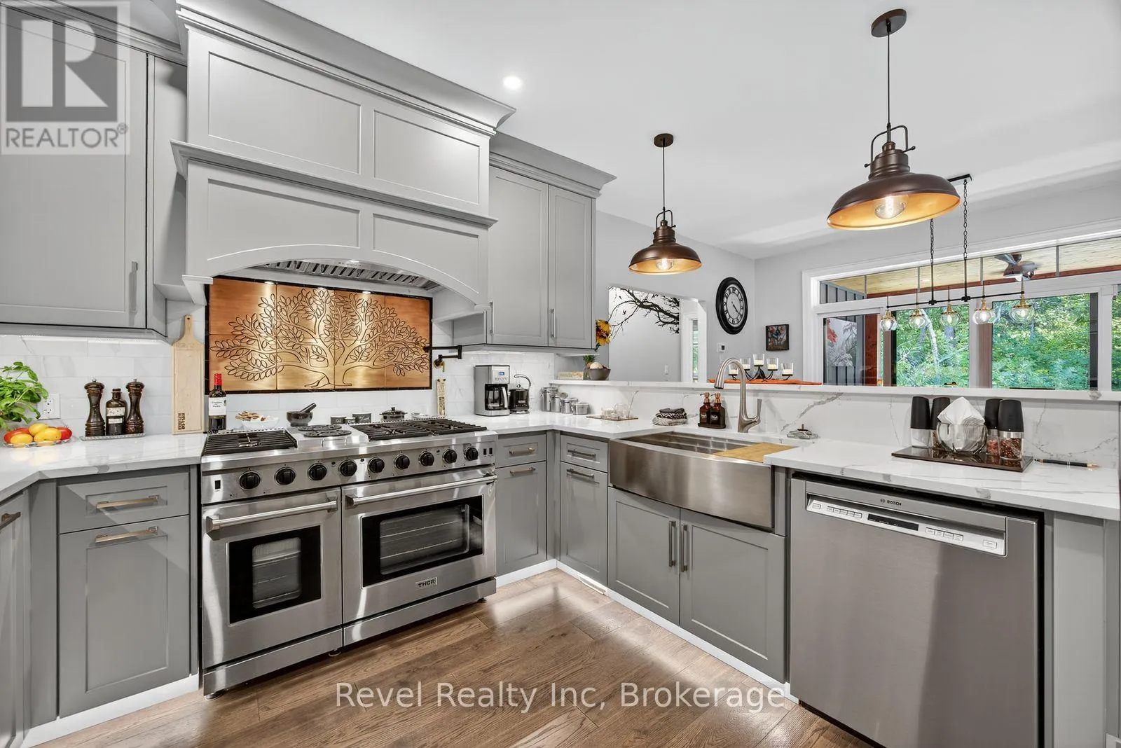 Cross Streets: Chemin du Loup / Silverbirch. ** Directions: County Road 6 to Chemin du Loup to Silverbirch. Luxury Living in Exclusive Thunder Beach! Imagine waking up beneath the serene Nipissing Ridge on 1.7 acres of landscaped privacy, with turquoise waters of Georgian Bay just steps away. This nearly new executive bungalow is a rare opportunity to call one of Georgian Bays most prestigious communities home. Every detail of this residence speaks to quality and craftsmanship. Built with ICF foundation and French drains for lasting comfort and energy efficiency, it also showcases rich hardwood floors, custom cabinetry, and spa-inspired bathrooms. The covered porch welcomes you into an airy, open-concept design where a chefs kitchen, featuring a Thor stove, pot filler, walk-in pantry, and multimedia bar, seamlessly connects to the dining area and covered deck. Every window frames tranquil views of trees, never neighbors. The primary suite offers a walk-in closet and a serene ensuite with an oversized glass shower equipped with multiple showerheads for your private spa retreat. Two additional bedrooms and a second full bath complete the main level. The finished lower level extends the lifestyle: radiant in-floor heating, a custom bar, built-in media surround, and oversized windows create a sophisticated entertaining space. Two more bedrooms, a full bathroom, and a walk-up to the heated garage ensure versatility perfect for an in-law suite. Beyond the home, the Thunder Beach lifestyle awaits. Ownership here means more than just a property its belonging to a community. Enjoy access to tennis courts, a private golf club, and a vibrant social scene that has defined this enclave for generations. And as the day closes, watch the horizon light up with sunsets that paint the sky in breathtaking shades of pink and gold. This is not just a home. It is an invitation to live exceptionally where luxury, lifestyle, and Georgian Bays natural beauty come together in perfect harmony. (id:27476)