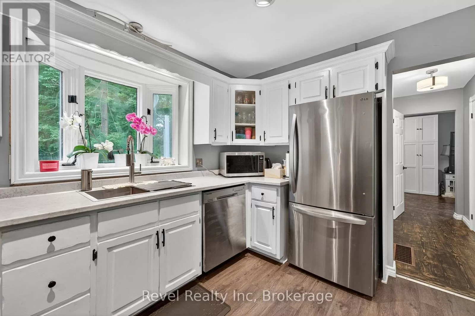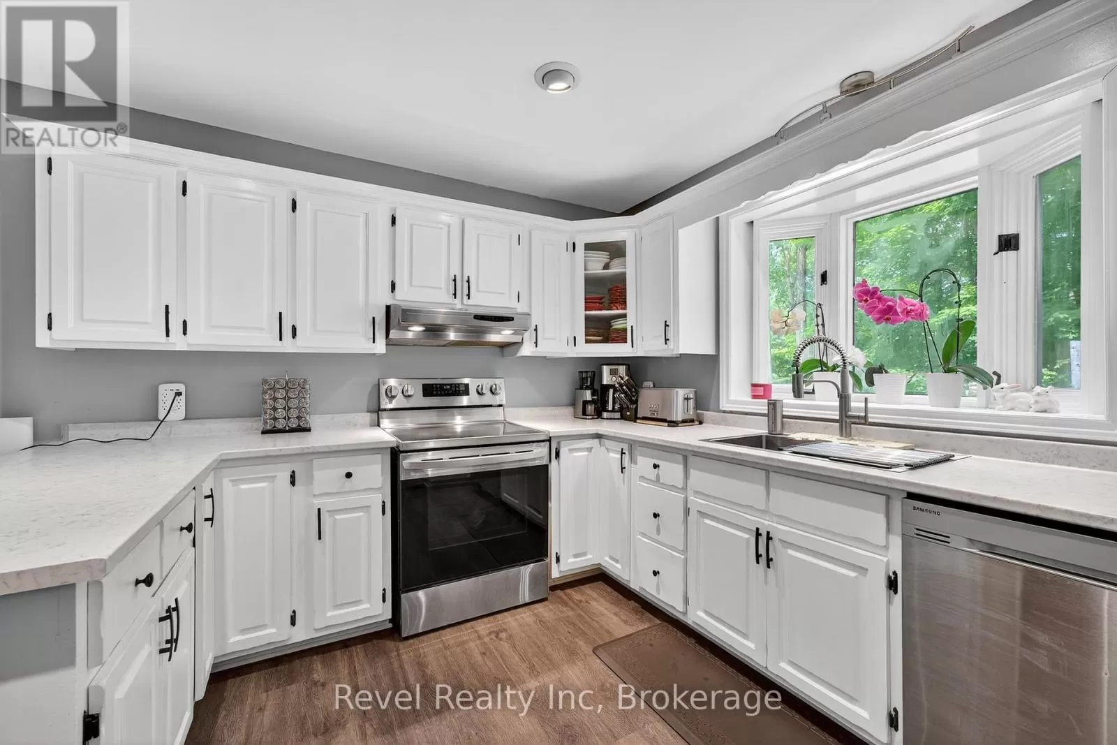 Cross Streets: TBRN & Bayside. ** Directions: Conc 18 W to TBRN to Bayside. Beachside Bliss and Timeless Comfort! Enjoy sun-soaked days, peaceful evenings, and that finally home feeling in this charming two-storey retreat. Boasting 4 bedrooms and 3 bathrooms, the home is nestled on a tranquil, tree-lined lot bursting with perennials and backs directly onto one of Georgian Highlands private, member-only beaches. Just steps from the water, it offers rare privacy with unparalleled access. Start your mornings on the covered front porch with a quiet coffee, or unwind on the back deck during summer evenings. Inside, modern comforts abound with forced-air gas heating, central air, and Bell Fibe high-speed internet perfect for remote work or relaxing in style, any time of year. Whether you're seeking a full-time residence or a weekend escape, this home makes it effortless to slow down, soak in the serenity, and savor life by the bay. (id:27476)