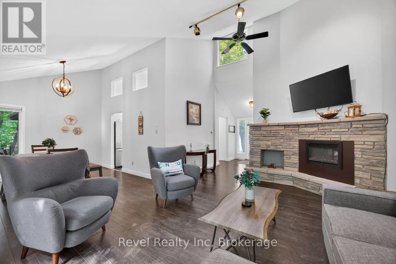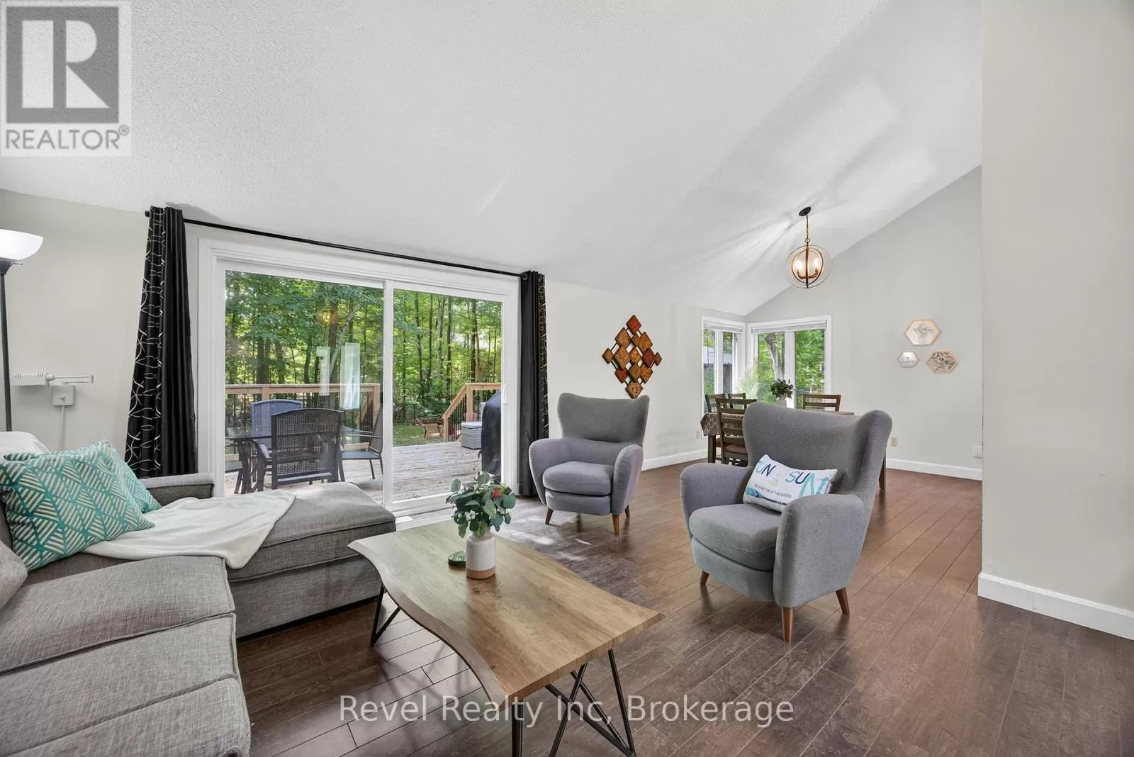 Lafontaine Road West to left on TBRN to Forest Circle Imagine starting your mornings with a stroll to the sandy shores of Georgian Bay and ending your evenings under the stars in your private hot tub. This 3-bed, 3-bath ranch bungalow (Viceroy style) is more than a home its a lifestyle. Just 90 minutes from the GTA, tucked into the beauty of Tiny Township, its the perfect balance of modern comfort and cottage-country magic.Inside, soaring cathedral ceilings and walls of windows invite natural light and forest views into every corner. The open-concept design is ideal for entertaining, while the primary suite feels like its own retreat with a walk-in closet, spa-like ensuite, and sunroom walkout. Over the years, the owners have poured love into this home with updates like new windows, doors, roof, skylights, furnace, A/C, flooring, and a brand-new deck (2023).Step outside and youre surrounded by peace and privacy. The fully fenced yard backs onto greenbelt, perfect for fireside nights, morning coffees on the deck, or hosting friends with parking for up to 8 and a double garage, theres room for everyone. Add in golf, boating, skiing, and snowmobile trails just minutes away, and youve found your four-season getaway on Georgian Bay.This isnt just a house. Its your next adventure. (id:27476)
