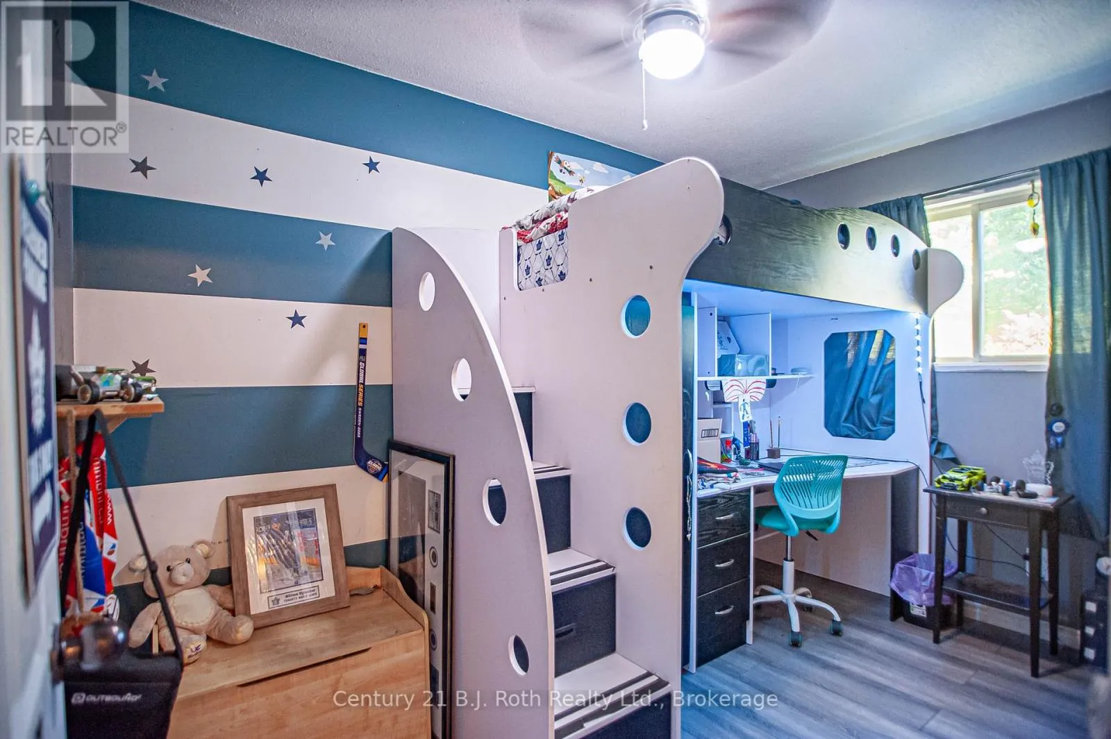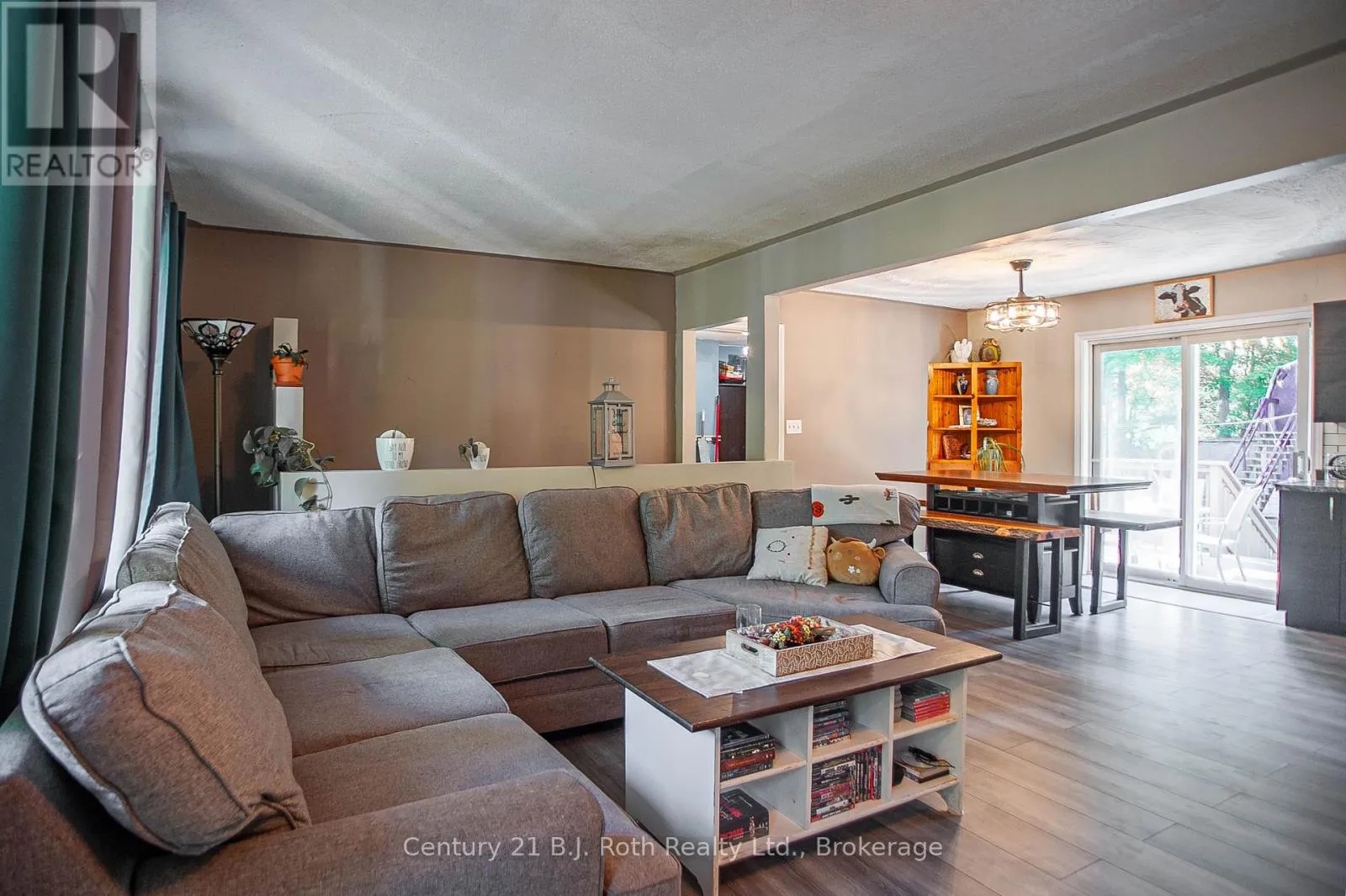 Cross Streets: Conc 17 E & Holland Dr. ** Directions: Conc 17 E to Holland to Mundy Ave. This charming 3 + 2 bedroom raised bungalow offers the perfect balance of comfort, functionality, and outdoor living. Nestled among the trees on a private lot, this home is ideal for families, nature lovers, and those seeking a peaceful escape. Step inside to find a bright and spacious layout featuring new flooring throughout the upper level. The lower level provides additional bedrooms and living space, making it perfect for guests, a growing family, or a home office setup. The property boasts a drive-through garage and a private gate leading to the backyard, plus a bonus drive shed at the back of the yard for extra storage or hobbies. Enjoy outdoor living at its best with an oversized deck, above-ground pool, vegetable gardens, and a cozy firepit area all surrounded by the tranquility of mature trees. As a bonus, this property includes access to beautiful Farlain Lake, just a short walk away. Whether you're looking to swim, paddle, or simply unwind by the water, you'll love having the lake at your fingertips. (id:27476)