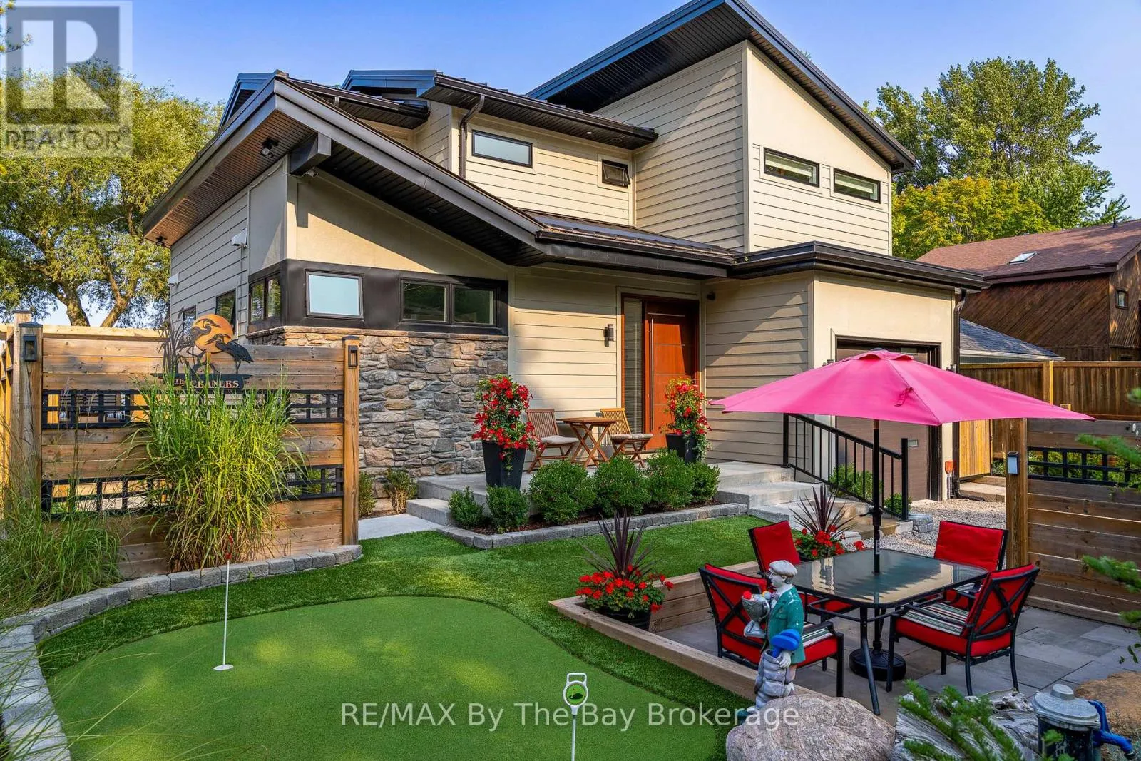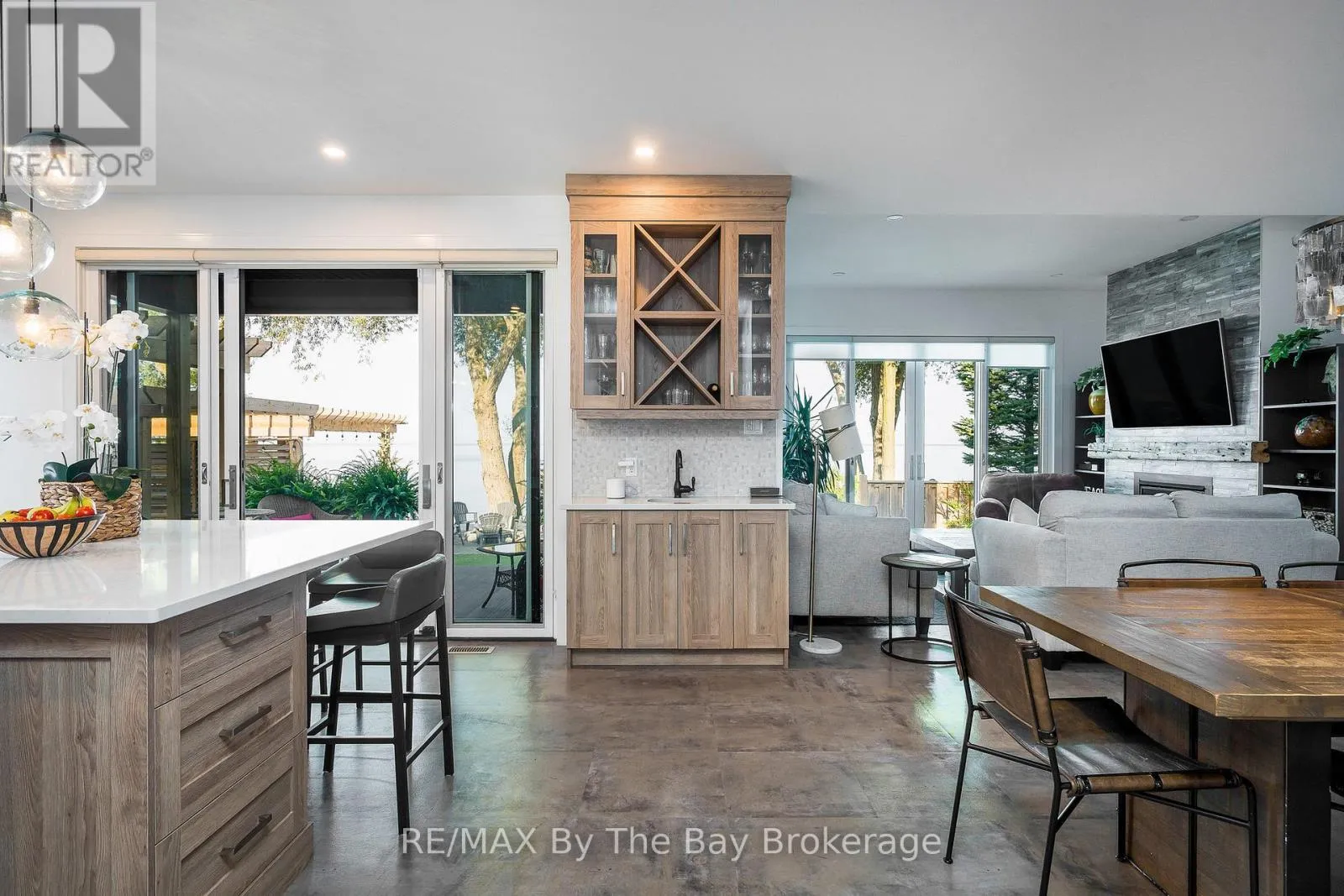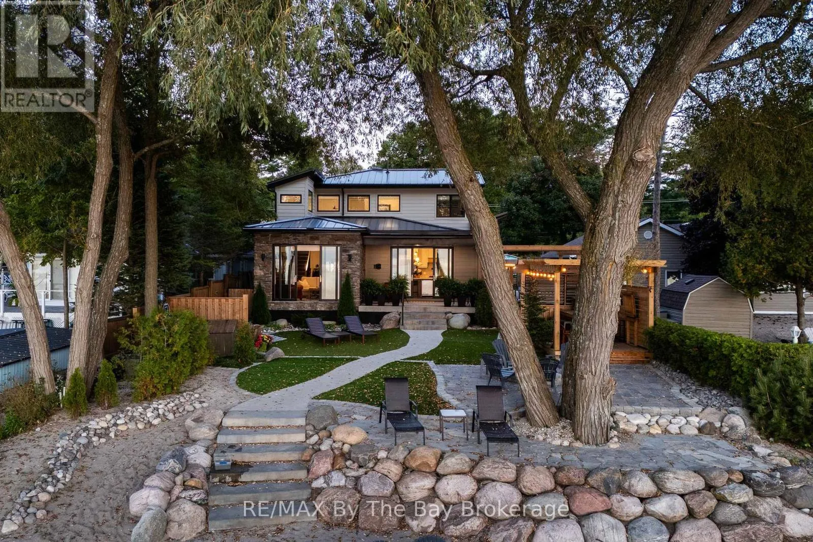 Cross Streets: Tiny Beaches Rd S and Tripp Lane. ** Directions: River Road East follow along the road turns into Tiny Beaches Road South. Absolutely stunning newer built custom beachfront home offering the ultimate in coastal living with spectacular sunsets on the exclusive and pristine sandy shores of Woodland Beach in beautiful Georgian Bay. This opportunity does not come onto the market very often and is a very rare opportunity to own this 3 bedroom 3 bath home that has been professionally landscaped to perfection and has been thoughtfully designed to create the ideal beach house retreat. From the moment you step inside you will appreciate an elegantly appointed interior featuring an open-concept living space that captures breathtaking views through expansive top quality panoramic windows from the thoughtfully designed living, kitchen and dining areas. Whether you're enjoying morning coffee or hosting guests at sunset, the natural beauty of the surroundings is always on display. The gourmet custom kitchen features handcrafted solid wood kitchen cabinets and large island complimented by quartz countertops and accent lighting. A collection of Samsung appliances, including a Smart Fridge with built-in screen and gas range which adds both function and high-tech flair. Beautiful main floor primary master suite with spa like ensuite bath, large walk in closet will add both elegance and convenience. Guest bedrooms on the 2nd floor with Jack and Jill bathroom and loft sitting area. Every detail has been considered in this professionally built custom home including main floor laundry, additional powder room and garage inside entry from brushed nickel door handles and upgraded faucets to the carefully planned outdoor spaces designed for gathering, relaxing, or simply enjoying the serenity of beachfront living. This is more than a home - its a lifestyle, blending design, comfort, and natural beauty in one extraordinary property that is conveniently located close to all the amenities of Wasaga Beach, Midland and Penetanguishene. Perfect for outdoor entertaining, relaxing in a luxurious waterfront setting. (id:27476)