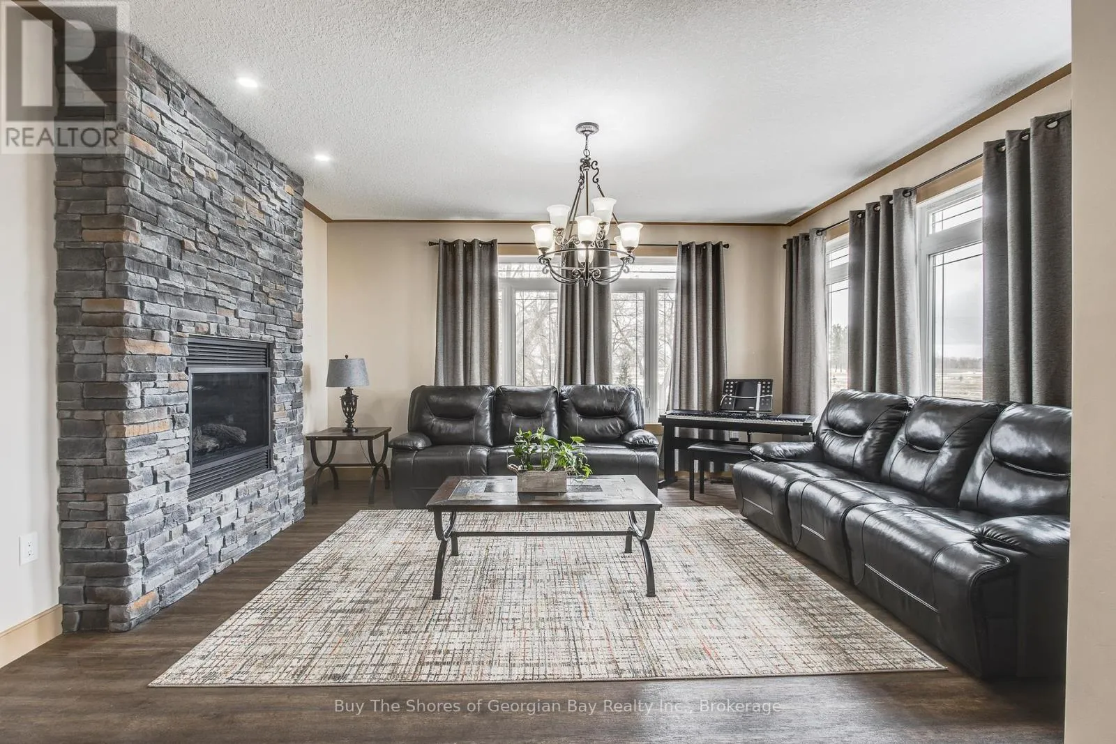 Cross Streets: Concession 4E and Dawson. ** Directions: County Road 6 to Concession 6E, right on Dawson to #399. Nestled on 7.5 sprawling acres of pristine land, this stunning home is perfect for those seeking a peaceful retreat from the hustle and bustle of everyday life. The foyer leads to a spacious living area featuring a magnificent double-sided fireplace with its stunning stone surround & mantel, adding a touch of rustic elegance. On one side, you'll find a cozy living room perfect for relaxing evenings, while the other side opens into a dining area perfect for casual family meals or hosting guests. The heart of the home features a gourmet kitchen adorned with custom cabinetry & sleek granite countertops, providing ample space for meal preparation. The spacious walk-in pantry is an organizer's delight, offering generous space to store provisions & kitchen essentials while keeping everything conveniently within reach. The home is thoughtfully designed & features wide hallways, high ceilings & large windows to invite natural light to flood the rooms and highlight the picturesque views of the surrounding landscape. Each of the six bedrooms is generously proportioned, with the primary suite offering a spa-like ensuite bathroom complete with a tub, walk-in shower, & dual vanities, as well as a spacious walk-in closet. The additional bedrooms are versatile & ideal for accommodating guests, creating a home office, or indulging in hobbies. Step outside onto the covered back deck, overlooking a serene backyard, this inviting space is ideal for morning coffee, dine in harmony with nature, or simply relaxing and taking in the beauty of the surroundings or enjoying the sauna and hot tub - perfect for unwinding after a long day. There's a large, detached shop & chicken coop. The tranquil setting is enhanced with a gentle river as the northern boundary. Whether you dream of hosting gatherings on the lush grounds or simply reveling in the serenity of your surroundings, this home is a rare gem that blends modern comfort with nature's beauty. A truly idyllic escape! (total 4,640 sq ft) (id:27476)