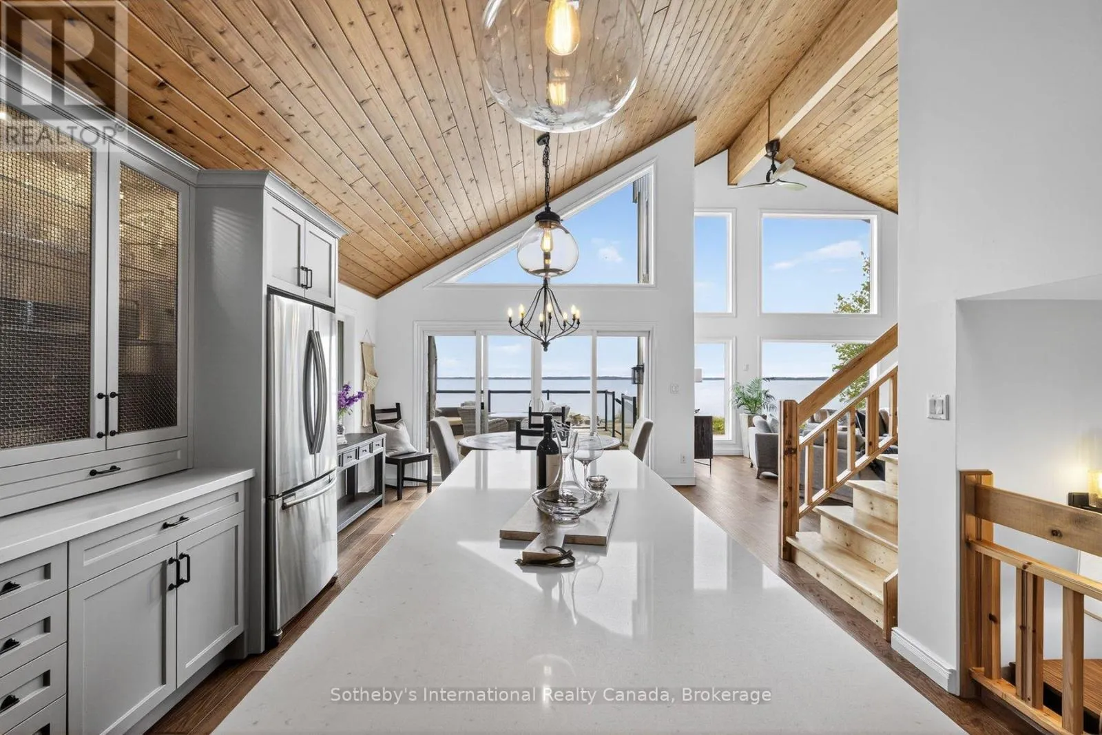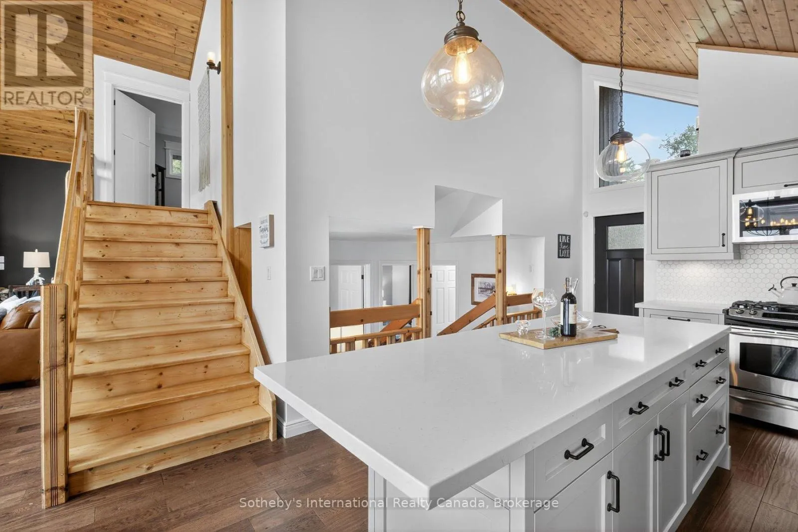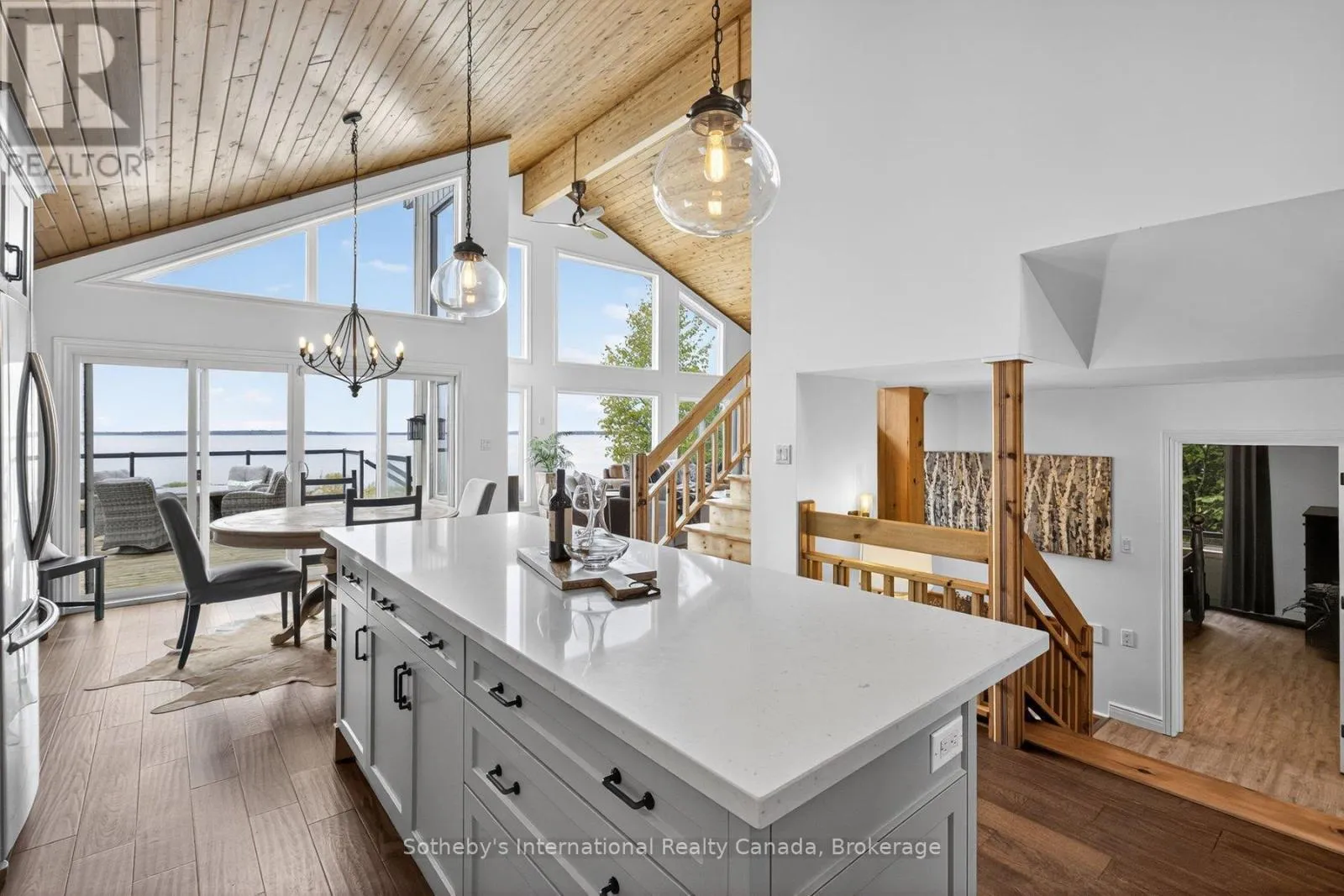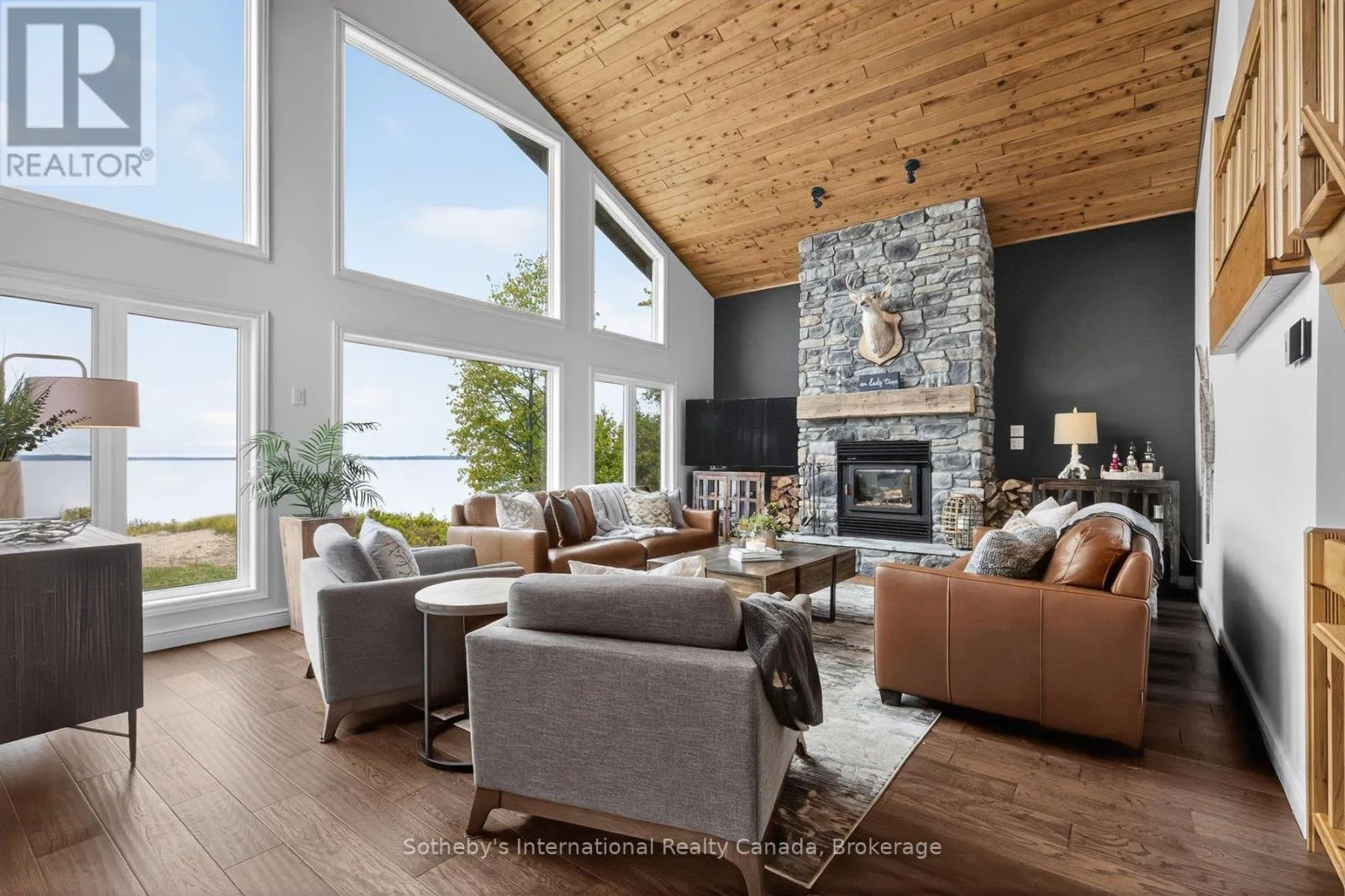 Cross Streets: Robert & Champlain. ** Directions: ON-93 N to Midland/Penetanguishene, left Robert St W, Champlain to SOP. From the first light of dawn painting the bay in soft pinks to fiery sunsets stretching across the horizon, 1773 Champlain Rd offers a front-row seat to the exquisite beauty of Georgian Bay. With a stretch of natural shoreline, it delivers a true beach house lifestyle, the kind of property where the water shimmers at your doorstep, inviting barefoot days & memorable nights. This 3-bed, 2-bath beach house strikes a harmony between warmth & sophistication. A stone path leads to the front door, where the open-concept main floor unfolds with soaring cedar ceilings & engineered hardwood underfoot. Custom millwork by Interior Works Inc. defines the home, with a bespoke kitchen & beautifully finished bathrooms. Anchored by a generous quartz island & farmhouse sink. It flows into the dining area, perfect for dinners that linger long into the evening. Sliding doors open to the deck, where alfresco meals are enjoyed with panoramic lake views. Floor-to-ceiling windows draw the Bay into the heart of the home, while a Napoleon wood-burning fireplace adds warmth & intimacy. Upstairs, the primary suite is a private sanctuary. A freestanding clawfoot tub creates a sense of enduring romance. A custom walk-in closet blends function with elegance. At the same time, the spa-inspired ensuite is elevated with a generous double vanity, heated floors, a heated towel rack, & a glass curbless walk-in shower. Two additional beds & a stylish 3-pc bath create a welcoming retreat for family & guests. A main-floor laundry adds convenience, while the oversized detached garage (1344 sq ft) provides ample storage & endless potential in the loft above. The unfinished basement offers space for future customization. Completely updated inside and out. Windows & doors(2017), Tankless HTW(2024), Metal Roof(2019), Kitchen(2018), Baths(2025), Engineered hardwood floors(2025), Generac Generator(2025), Irrigation System(2019), Water Softener(2023), A/C & Furnance(2023). (id:27476)