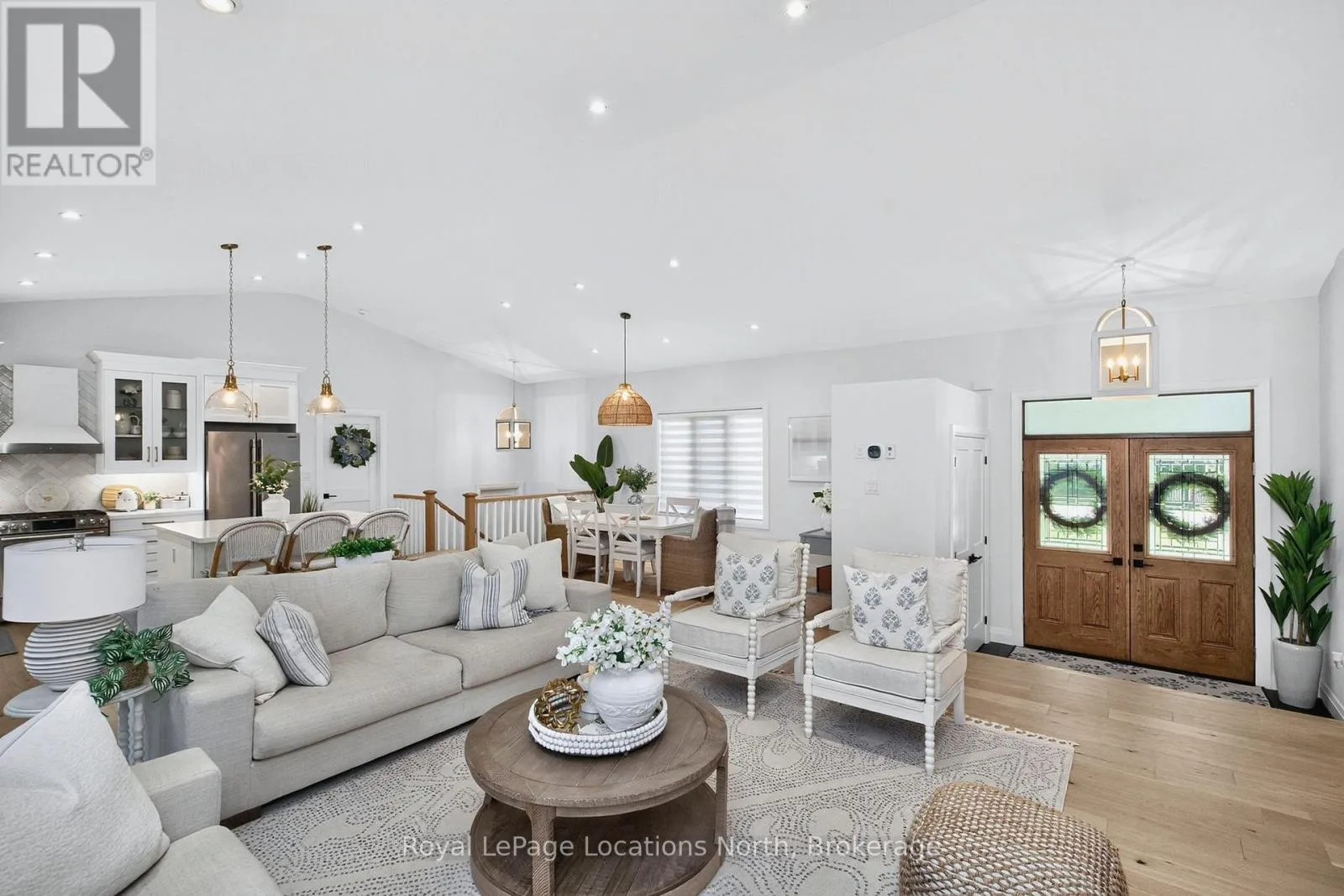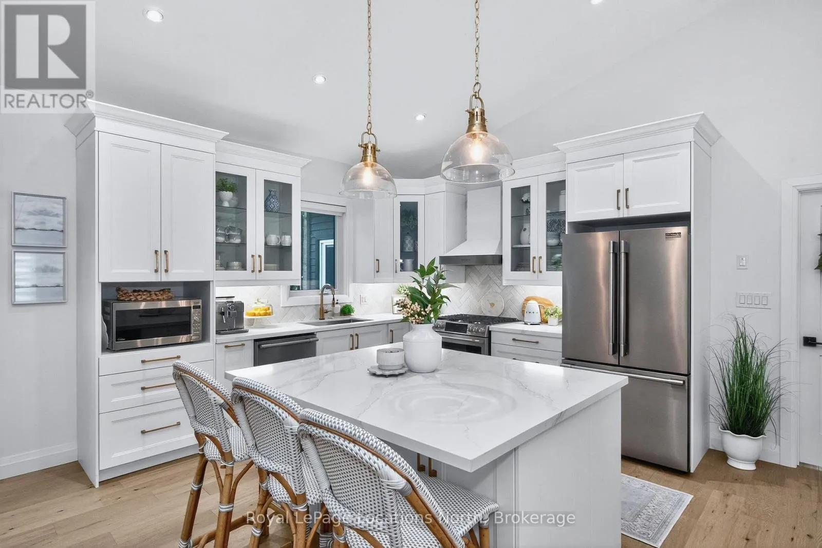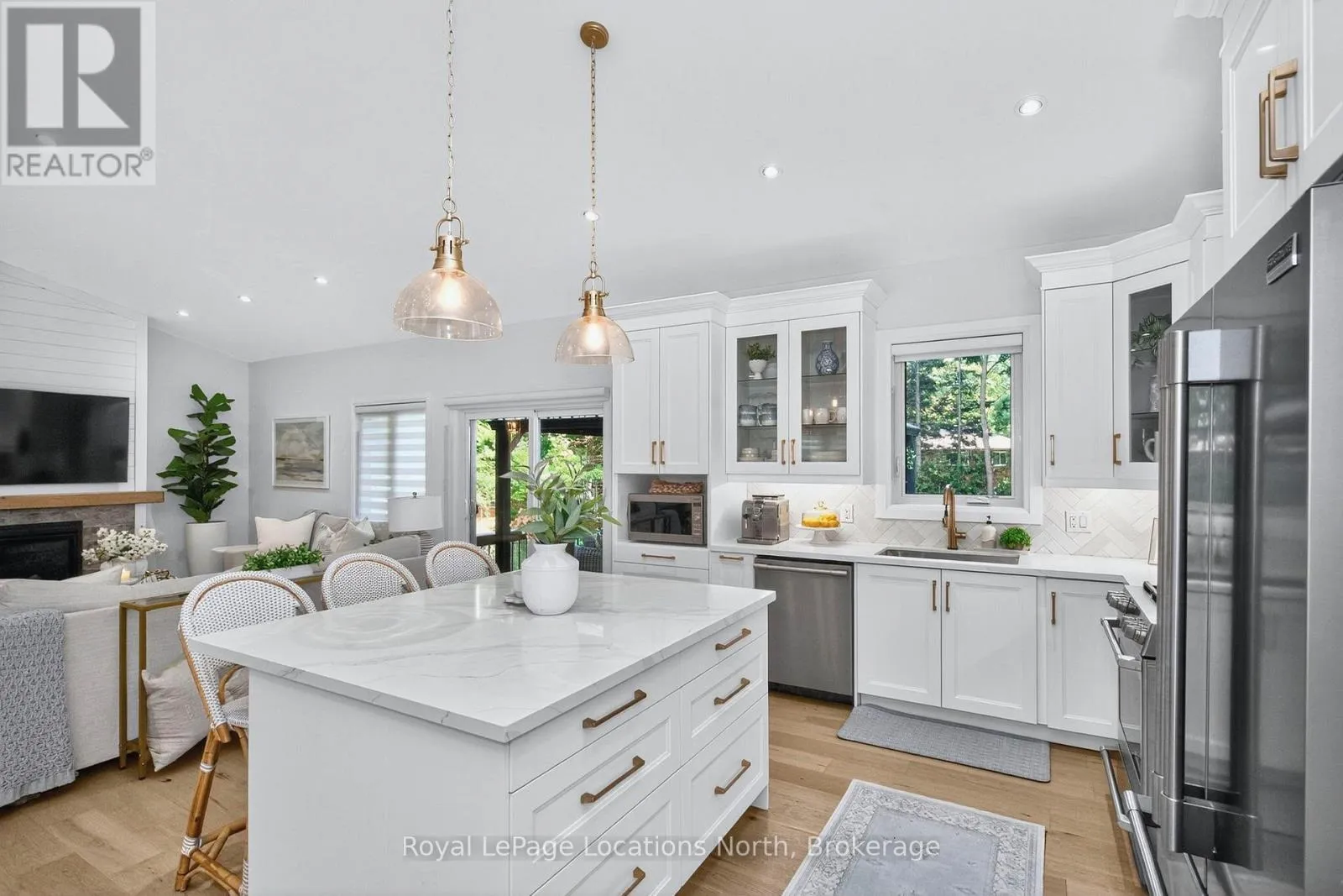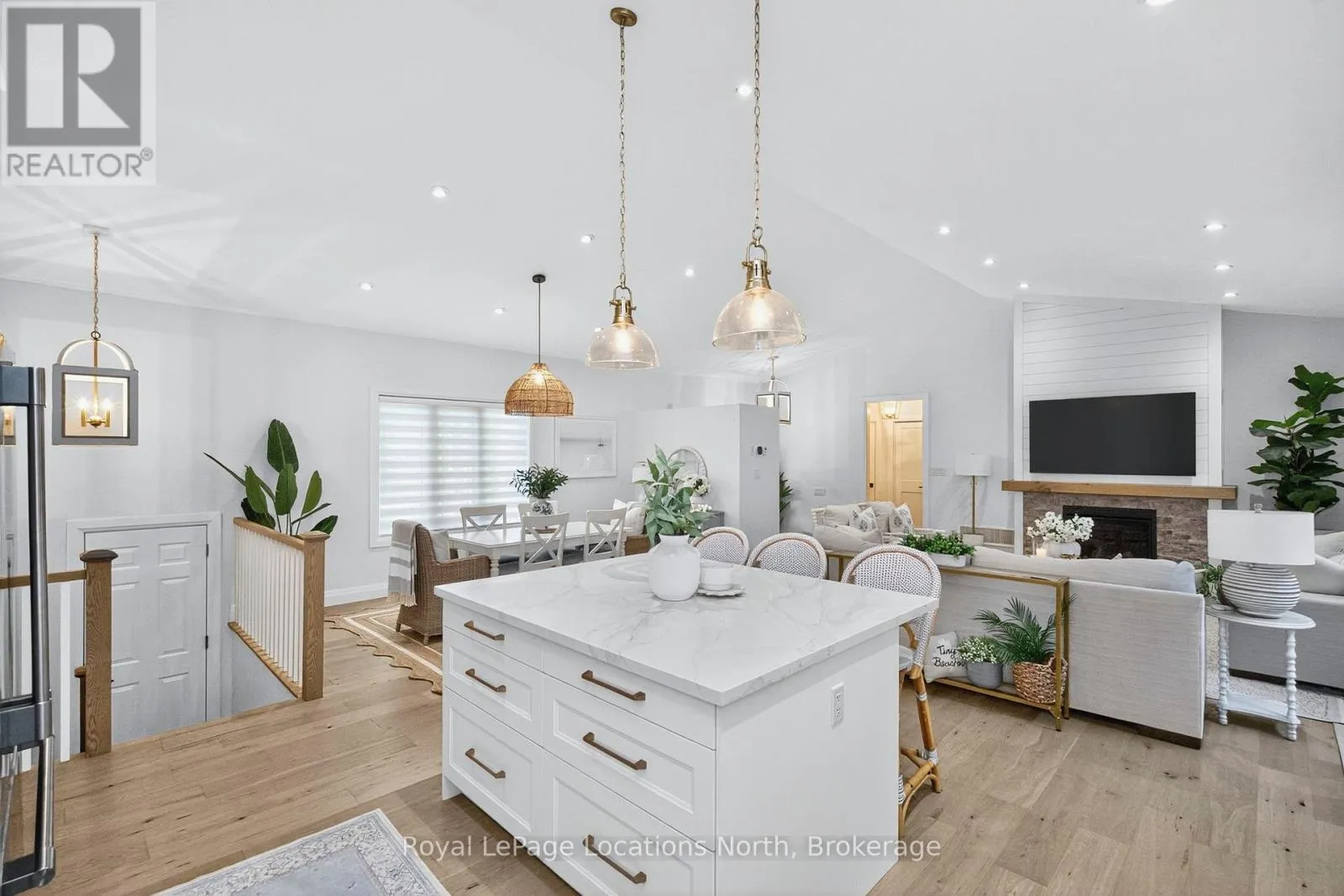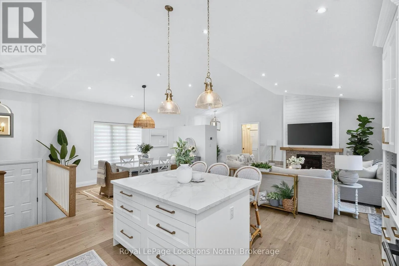 Cross Streets: Rue Jules Leger. ** Directions: Tiny Beaches Rd N to Rue Jules Leger to Pinecone. Welcome to Pinecone Ave, a quiet picturesque street in Tiny- where refined living meets the relaxed pace of life by Georgian Bay. This exceptional bungalow offers the perfect combination of modern craftsmanship, timeless style & practical design, making it an ideal choice for those seeking either a full-time residence or a peaceful retreat just minutes from the water. From the moment you step inside, you'll notice the attention to detail & quality finishes that set this home apart. Wide plank engineered hardwood floors extend across the open-concept main living space, creating a sense of warmth & continuity. At the heart of the home is a custom-designed kitchen featuring sleek quartz countertops, an oversized island with abundant storage & thoughtful design elements that make both everyday cooking & entertaining effortless. The kitchen seamlessly flows into the dining/living areas, where tall windows welcome natural light & a dramatic floor-to-ceiling fireplace serves as the inviting focal point of the room. Step outside to your tranquil backyard. The spacious deck is complemented by a large metal gazebo, offering the perfect spot for summer gatherings. The 3-car garage provides plenty of room for all your toys, while the full-height unfinished basement offers endless potential to design the space you've always imagined. & of course it's ICF construction. This property is more than just a house, it's a lifestyle. Located minutes from sandy beaches, scenic trails & peaceful parks, you'll have endless opportunities to enjoy the outdoors. Imagine days spent swimming, kayaking, or paddleboarding on the Bay, followed by evenings gathered around the fireplace or relaxing on the deck under the stars. With its seamless blend of modern comfort, low-maintenance living & proximity to everything that makes Tiny such a beloved community, this bungalow is a rare find. This coastal vibe bungalow is waiting for its next owner to enjoy all that Georgian Bay living has to offer!! (id:27476)