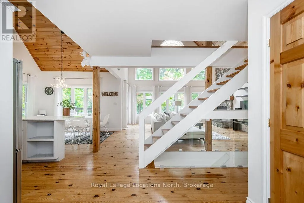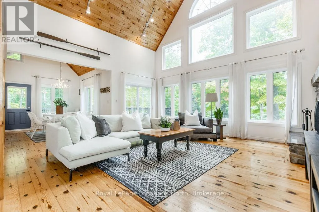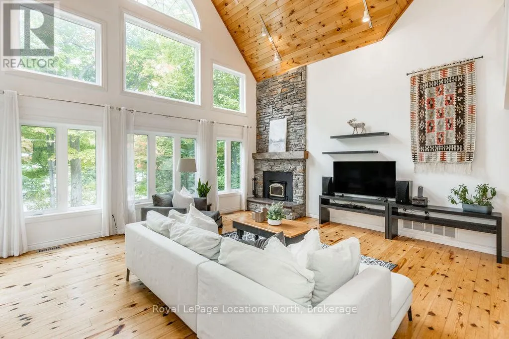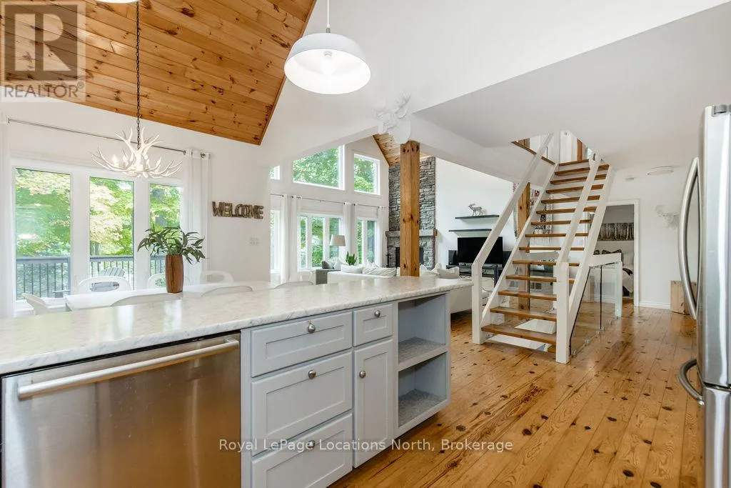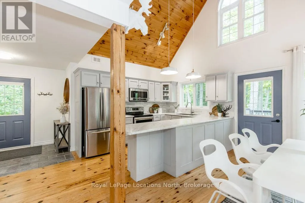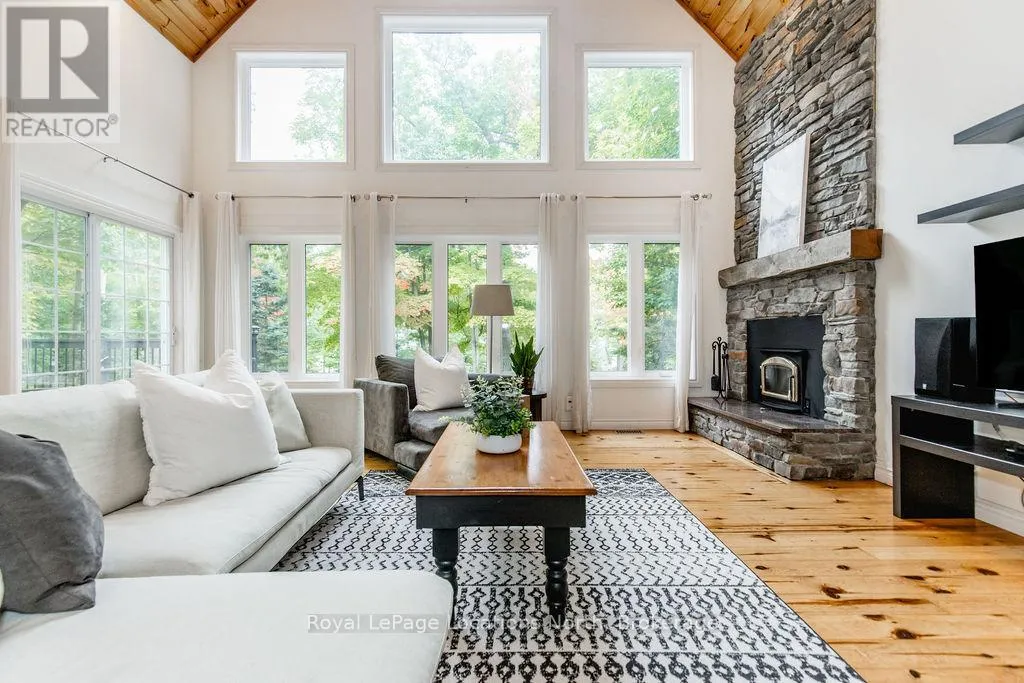 Cross Streets: Tiny Beaches Rd N & Conc 15 W. ** Directions: Tiny Beaches Rd N to Conc 15 W. Short term Rental licensed*** Investment Opportunity + Enjoy Cottage life- Best of both worlds with this impressive 3-bedroom (+ 2 additional offices/den), 3-full-bath waterview home just steps from the white sandy shores of Georgian Bay, offering panoramic views of the bay and the Blue Mountains with unforgettable sunsets from your deck. Set on a private, mature 100' tree-lined lot in the picturesque Township of Tiny, this property offers authentic cottage character with modern, turnkey details. The main living area soars with vaulted pine ceilings and rustic wood flooring, anchored by a dramatic floor-to-ceiling stone fireplace, the perfect focal point for family gatherings. An open-concept kitchen with stainless steel appliances flows effortlessly into a large dining room designed for big dinners and holiday memories. A main-floor primary bedroom with office and convenient main-level living make day-to-day life easy; the second-floor primary bedroom features vaulted ceilings and double closets for generous storage and your primary suite. The home also offers a walk-out lower level with a separate living space, private entrance and in-home laundry, ideal as an in-law suite or additional rental unit. Modern touches like glass railing on the stairs, EV charger and new decks complete the package. Licensed for Short term rentals, this 2,703+ total finished sq. ft. home is a rare combination of lifestyle, flexibility and income potential- bring the family, host guests, or try it before you buy. Reach out for financials for rental income. Comes fully furnished. Don't miss this rare opportunity. (id:27476)
