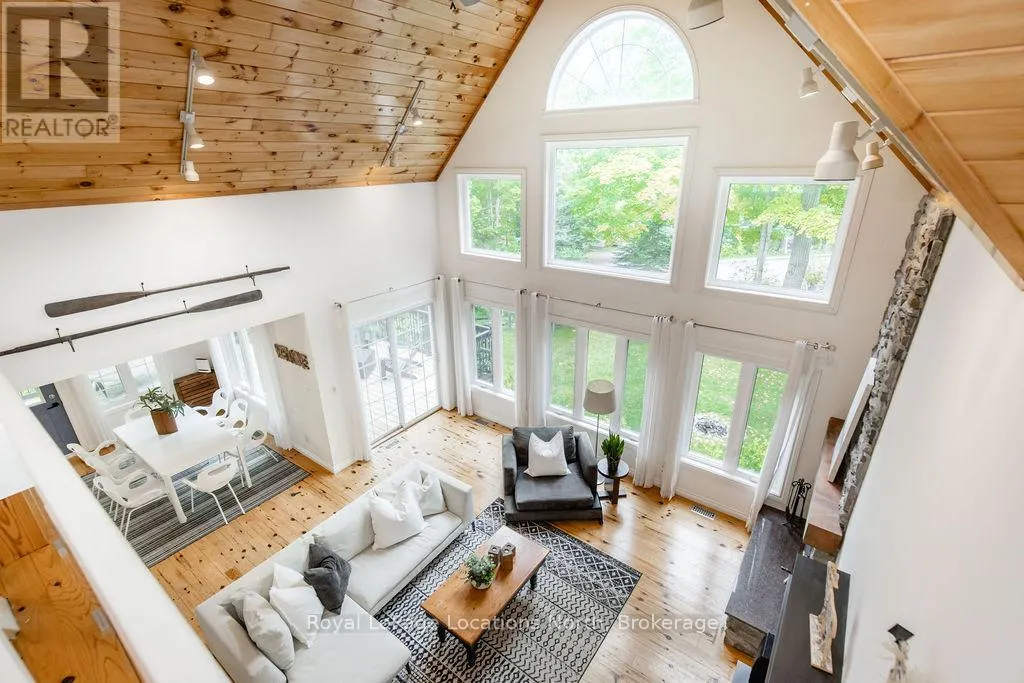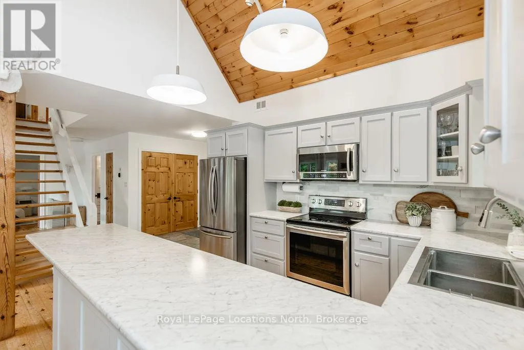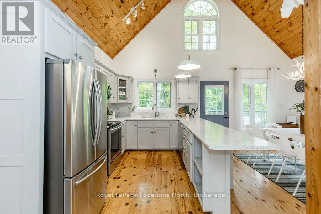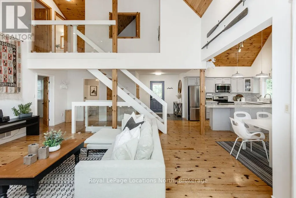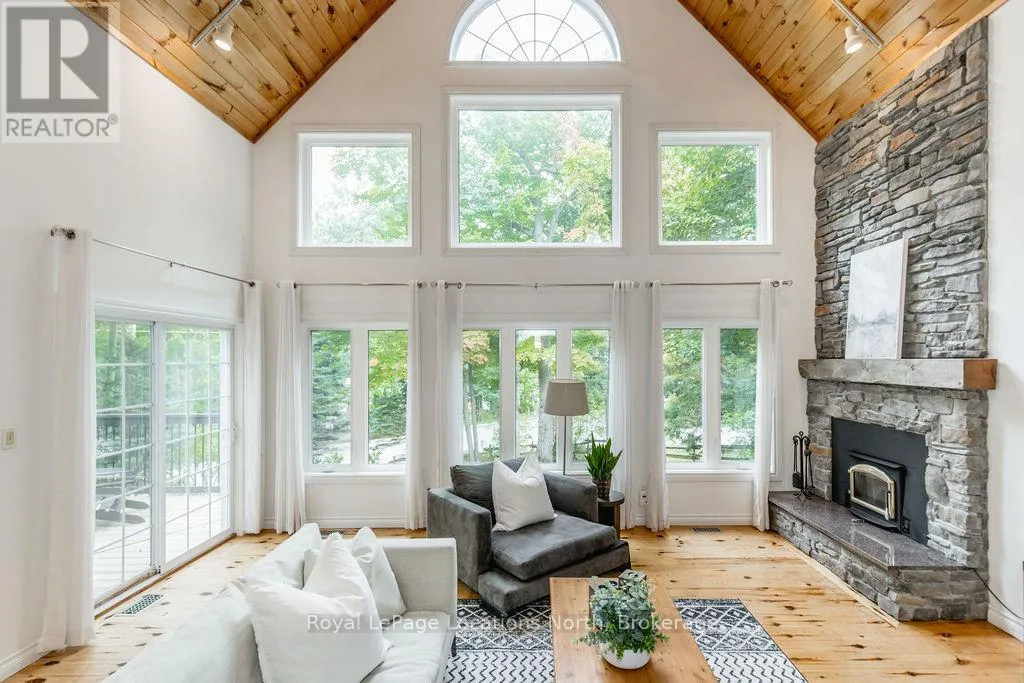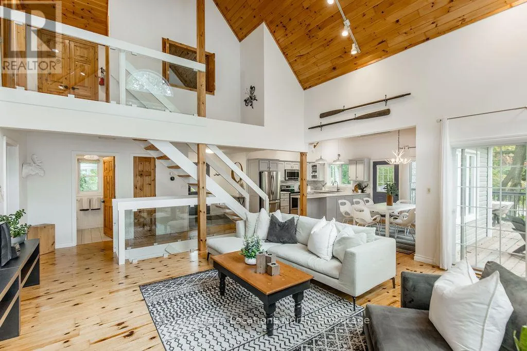 Cross Streets: Tiny Beaches Rd N & Conc 15 W. ** Directions: Tiny Beaches Rd N to Conc 15 W. Short term Rental licensed*** Investment Opportunity + Enjoy Cottage life- Best of both worlds with this impressive 3-bedroom (+ 2 additional offices/den), 3-full-bath waterview home just steps from the white sandy shores of Georgian Bay, offering panoramic views of the bay and the Blue Mountains with unforgettable sunsets from your deck. Set on a private, mature 100' tree-lined lot in the picturesque Township of Tiny, this property offers authentic cottage character with modern, turnkey details. The main living area soars with vaulted pine ceilings and rustic wood flooring, anchored by a dramatic floor-to-ceiling stone fireplace, the perfect focal point for family gatherings. An open-concept kitchen with stainless steel appliances flows effortlessly into a large dining room designed for big dinners and holiday memories. A main-floor primary bedroom with office and convenient main-level living make day-to-day life easy; the second-floor primary bedroom features vaulted ceilings and double closets for generous storage and your primary suite. The home also offers a walk-out lower level with a separate living space, private entrance and in-home laundry, ideal as an in-law suite or additional rental unit. Modern touches like glass railing on the stairs, EV charger and new decks complete the package. Licensed for Short term rentals, this 2,703+ total finished sq. ft. home is a rare combination of lifestyle, flexibility and income potential- bring the family, host guests, or try it before you buy. Reach out for financials for rental income. Comes fully furnished. Don't miss this rare opportunity. (id:27476)