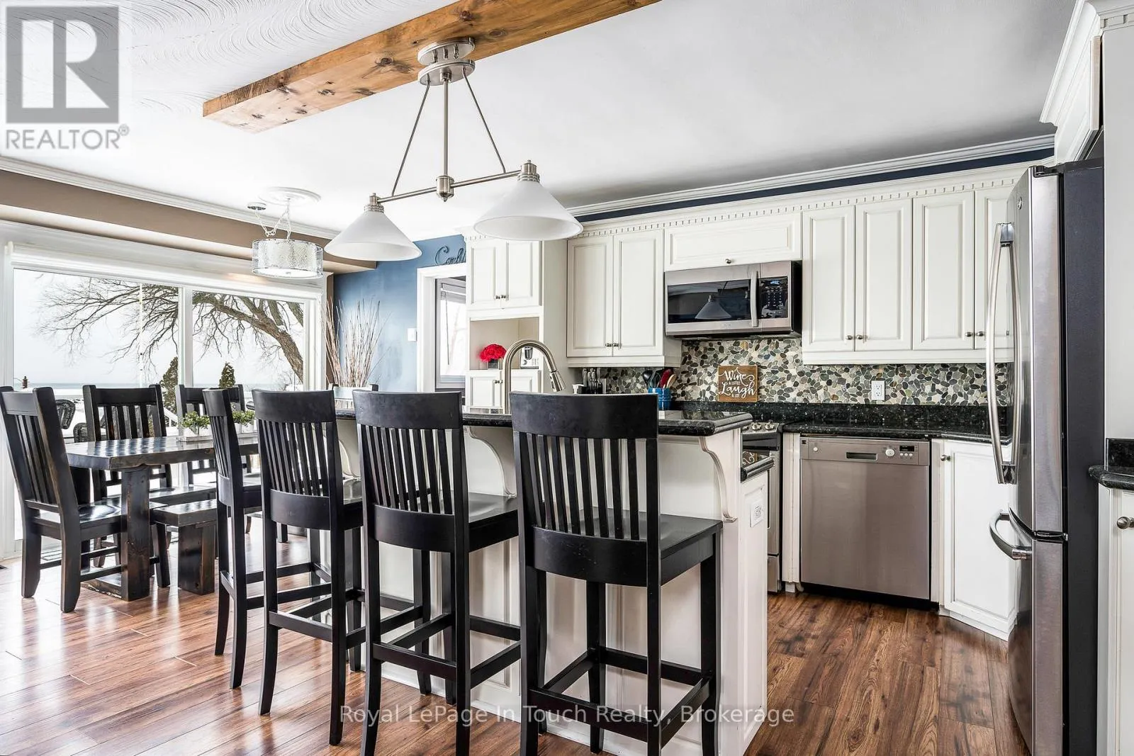 Cross Streets: Balm Beach Road West to Tiny Beaches Road South to #8. ** Directions: Balm Beach to Tiny Beaches Rd South to #8. Here is your unique opportunity to own a pristine waterfront on the highly desirable shores of Georgian Bay in Tiny Township. Enjoy the stunning views of the bay and the majestic westerly sunsets, while also overlooking the ski hills of Blue Mountain. This 5-bedroom, 3-bathroom bungalow includes a fully equipped and ready to move into in-law suite with walkout to a beautiful, manicured lot and steps to the sandy beach. Modern features, a beautiful upper deck, and lower patio makes this property perfect for outdoor living yet close to the conveniences of restaurants, stores, and a park, that are within walking distance. 84 ft Ambulatory Water's Edge and almost 300 ft deep lot with a beautiful view of Georgian Bay from most of the house. There is plenty of room for the weekend toys in the heated double car garage and storage building with this gem. Don't miss this great opportunity and amazing value, you won't be disappointed. (id:27476)