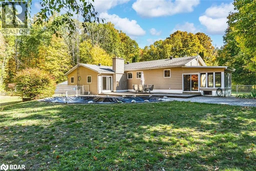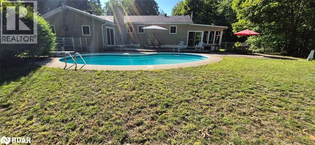 County Rd 27/County Rd 6 S/Concession Rd 5 W 34-ACRE COUNTRY RETREAT WITH AN INGROUND POOL, IN-LAW POTENTIAL & LIMITLESS POSSIBILITIES! Set on an incredible 34-acre property surrounded by towering trees and peaceful natural beauty, this sprawling bungalow offers true country living with endless room to roam, complete with manicured trails perfect for walking, biking, or snowmobiling. Embrace a lifestyle defined by nature and tranquillity, just minutes from Georgian Bayâs beautiful beaches, local parks, and a grocery store, with Wasaga Beach only 15 minutes down the road. The property makes an unforgettable first impression with a circular driveway offering parking for more than 20 vehicles, a detached double garage, multiple sheds, and plenty of space for a future shop. The expansive backyard features an inground pool surrounded by a generous patio, perfect for outdoor entertaining or quiet relaxation. Over 3,200 finished square feet, including more than 1,850 on the main level, provide an abundance of living space for families, multi-generational living, or those dreaming of a country retreat. The large kitchen features white cabinetry, built-in appliances, a centre island, and an open connection to the formal dining room, making it ideal for hosting gatherings. The bright living room overlooks the treed front yard, while the family room features a cozy wood fireplace and a walkout to the backyard. A separate sun-filled hot tub room with a fireplace offers an additional sliding door walkout leading to the pool and patio area. The finished basement extends the possibilities with in-law potential, complete with a second kitchen, living room, den, rec room, two bedrooms, and a full bathroom. Whether you envision a peaceful family haven, a multi-generational escape, or simply a property with room to grow, this exceptional #HomeToStay is filled with opportunity and ready for your personal touch to make it truly yours! (id:27476)